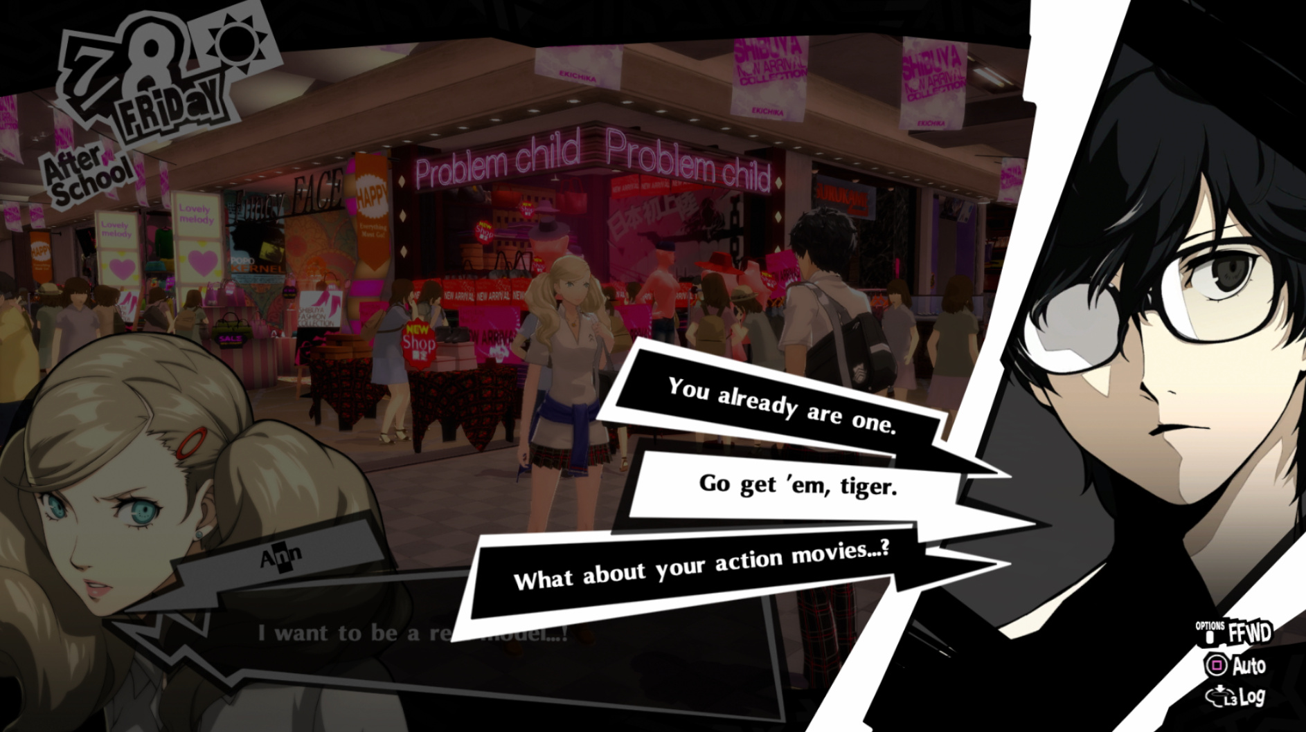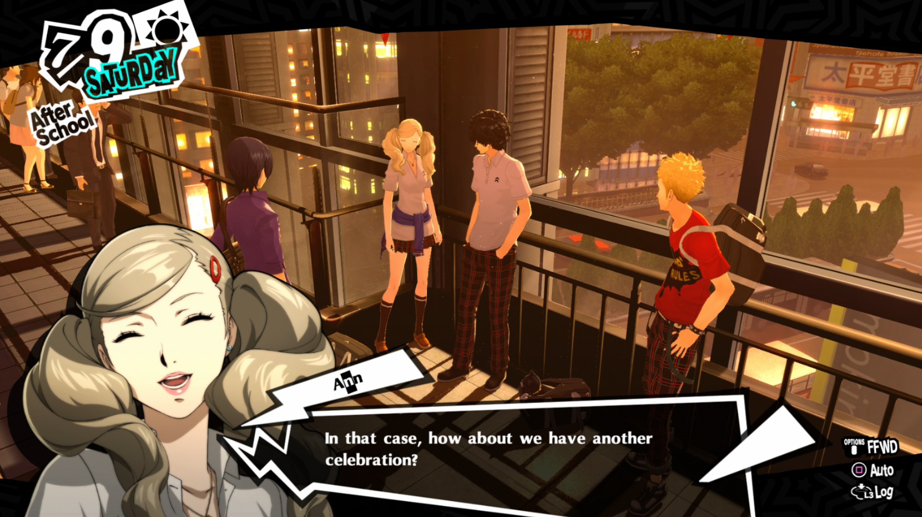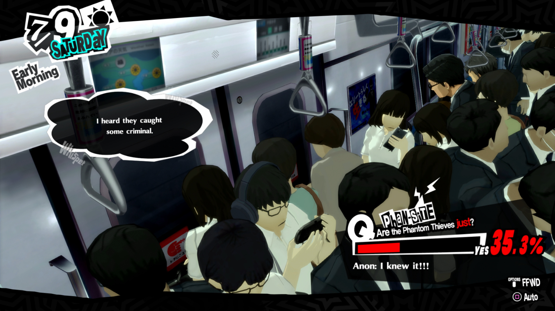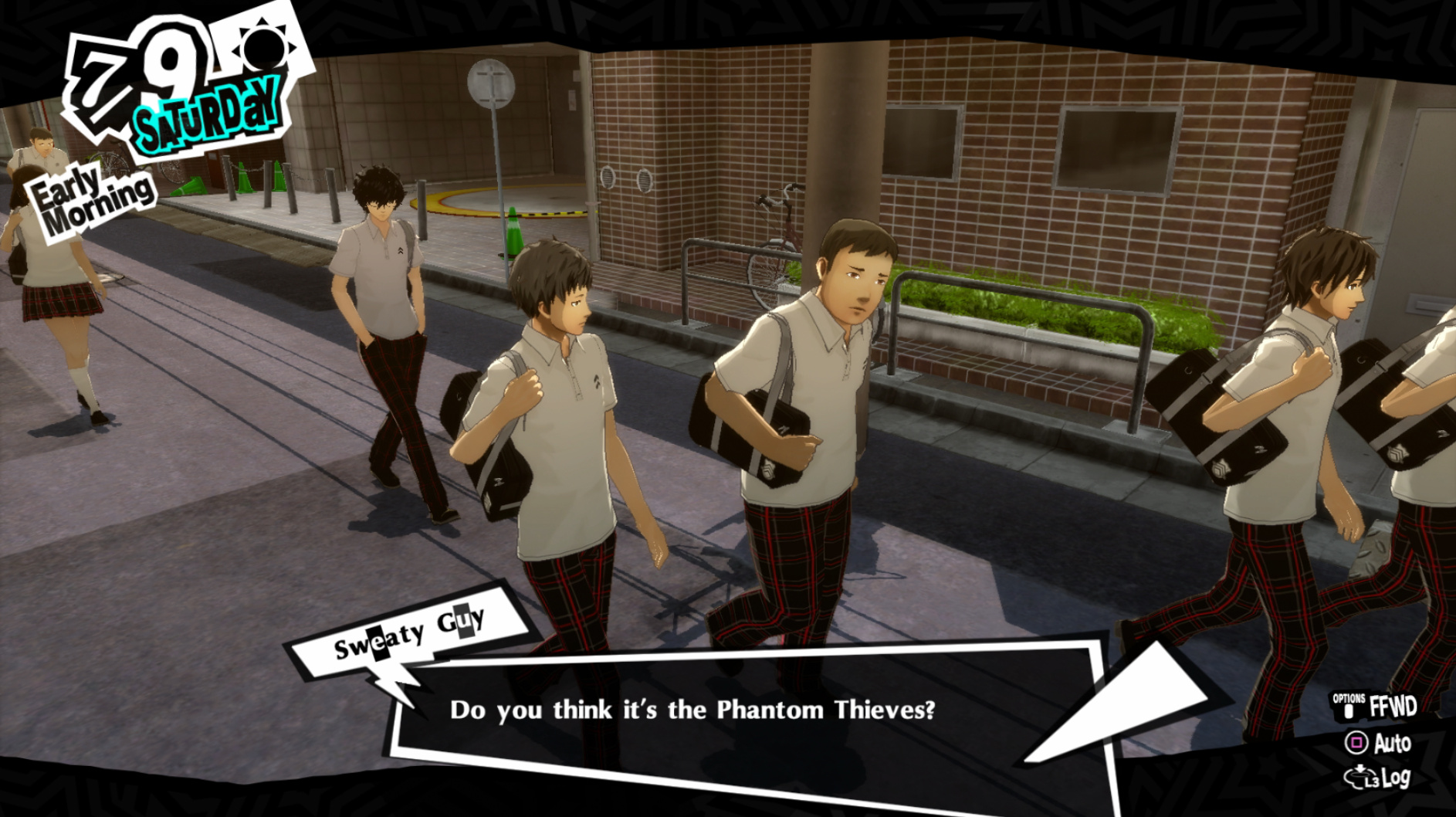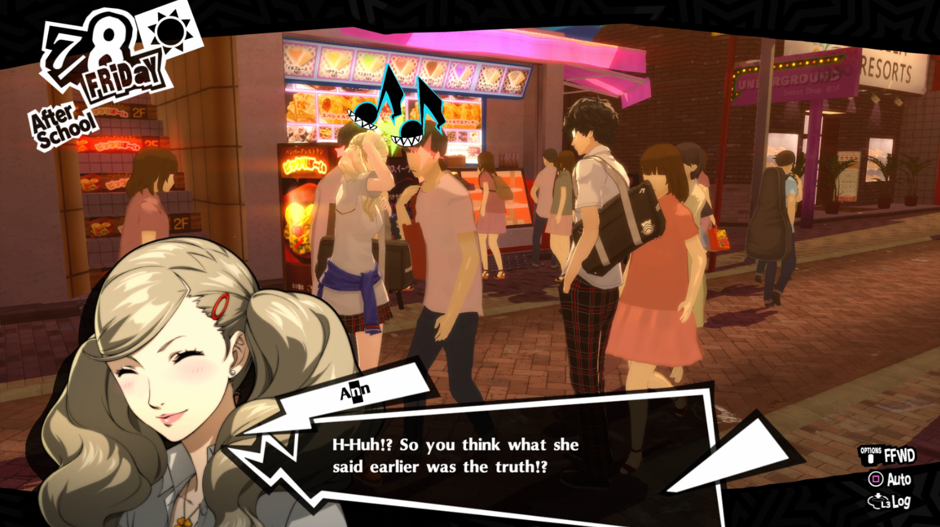 : Joker tries to figure out the best way to signal Ann to turn off speakerphone so he can tell them not to let her know he brings Morgana to his exams.