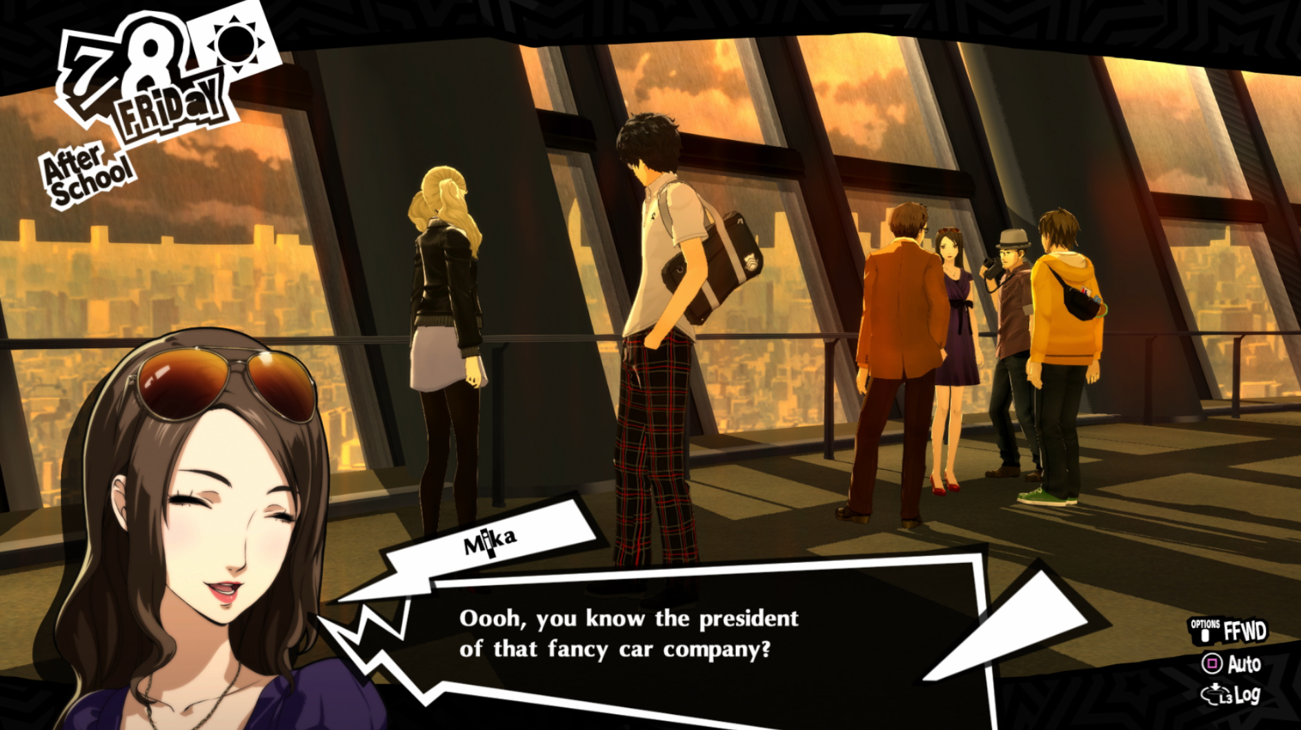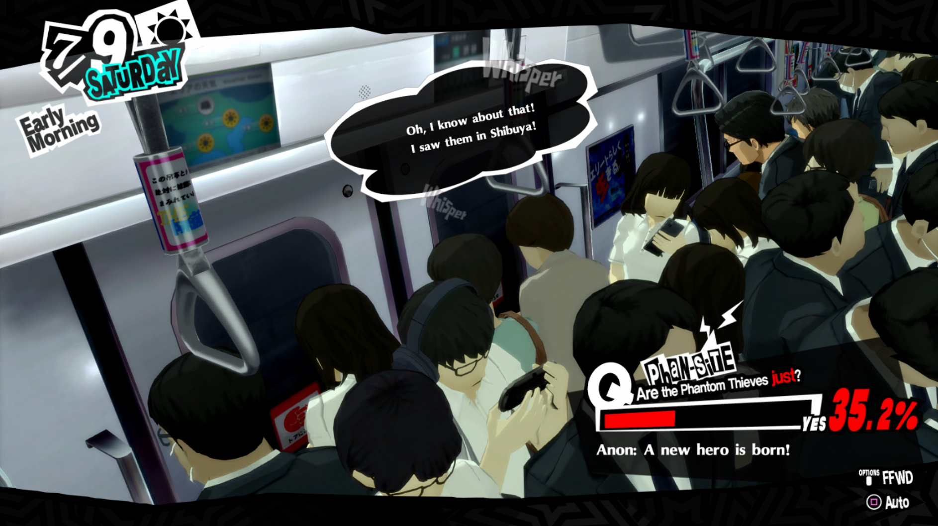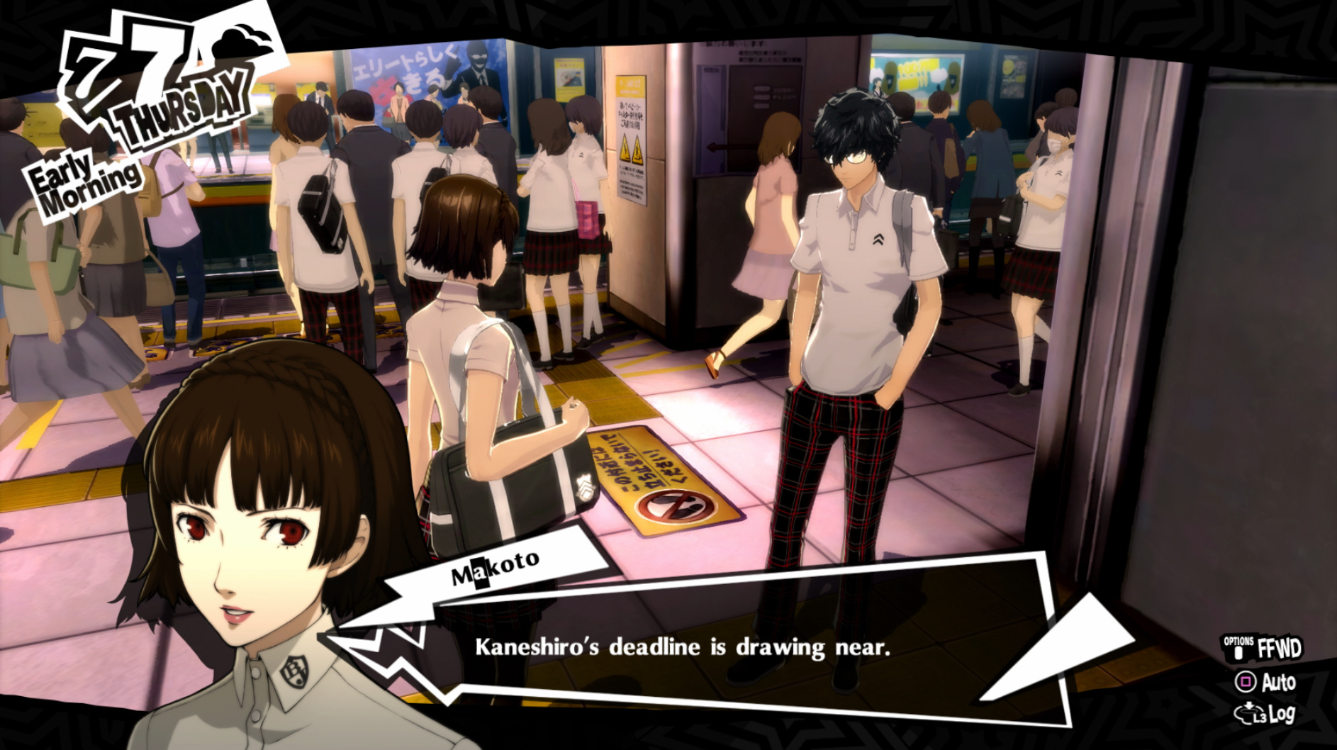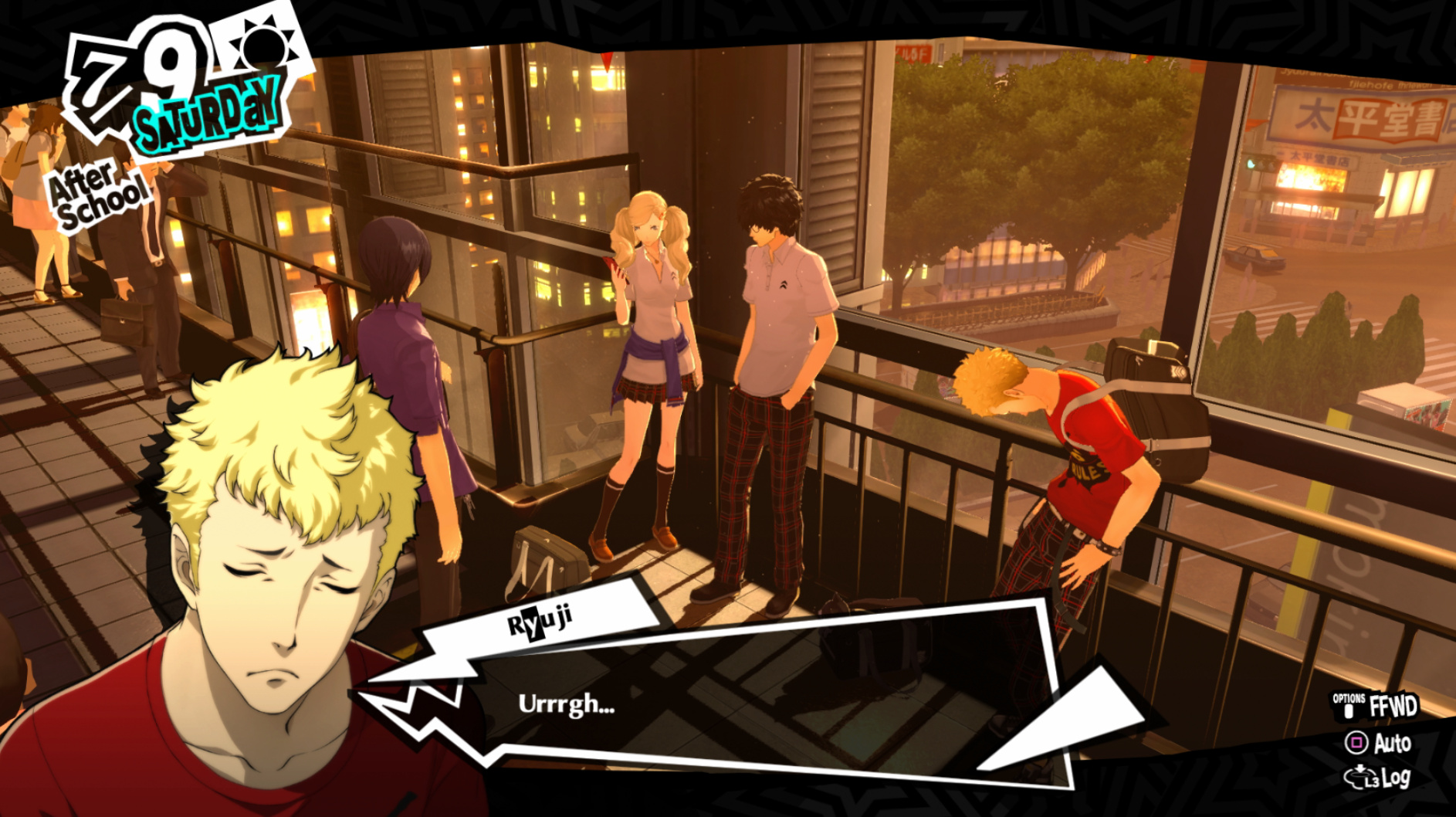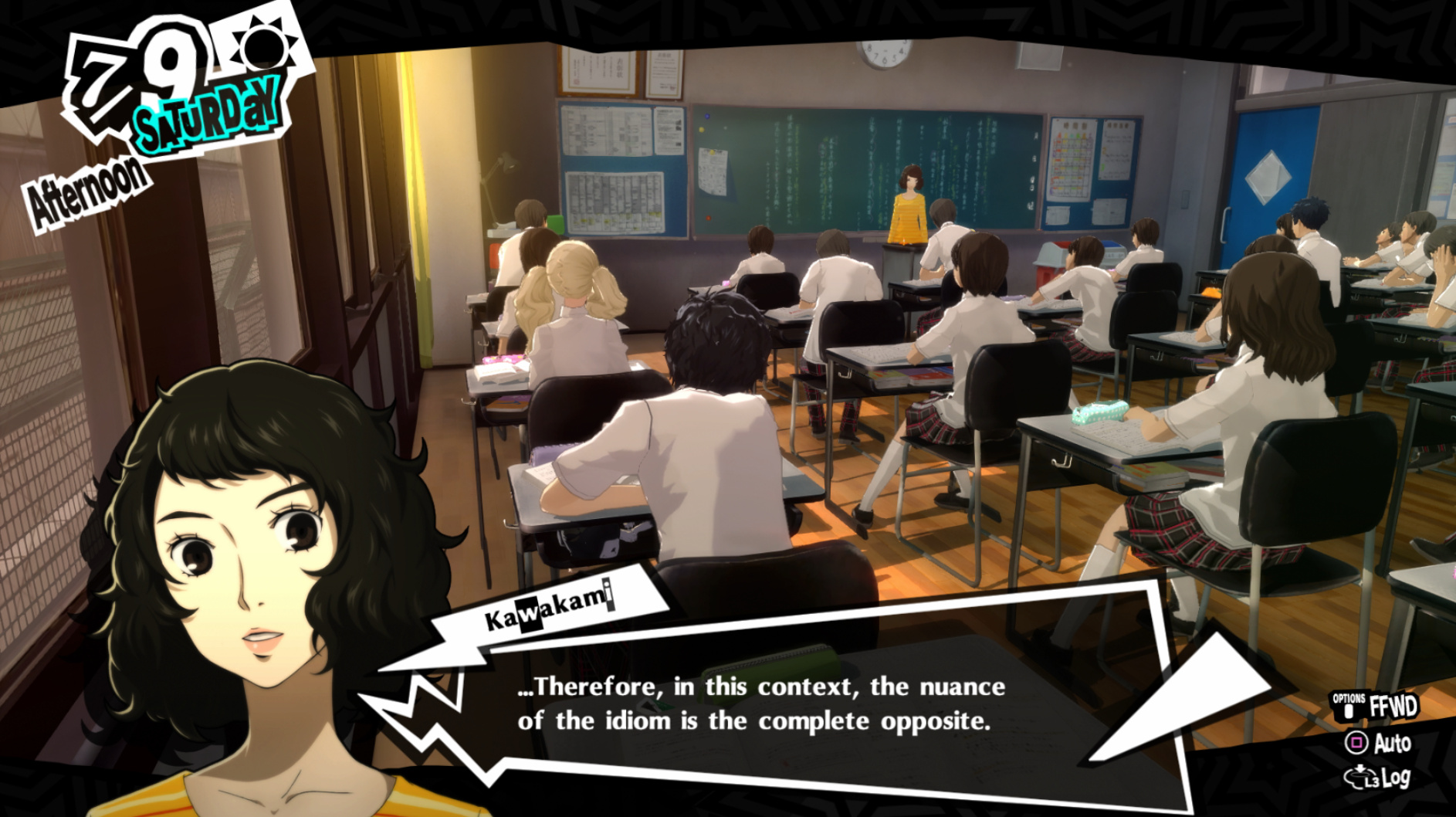 : Joker tries to figure out the best way to signal Ann to turn off speakerphone so he can tell them not to let her know he brings Morgana to his exams.