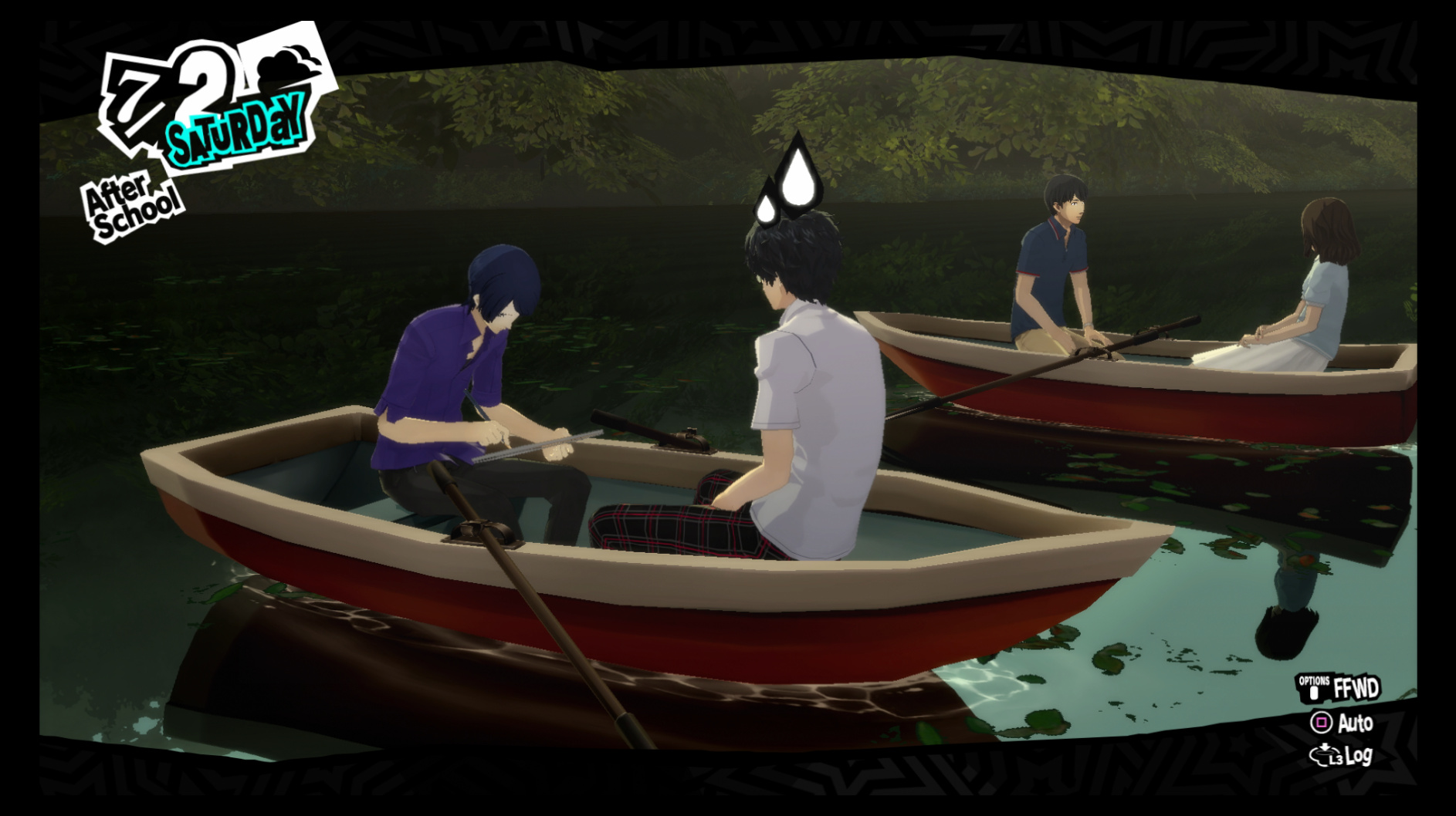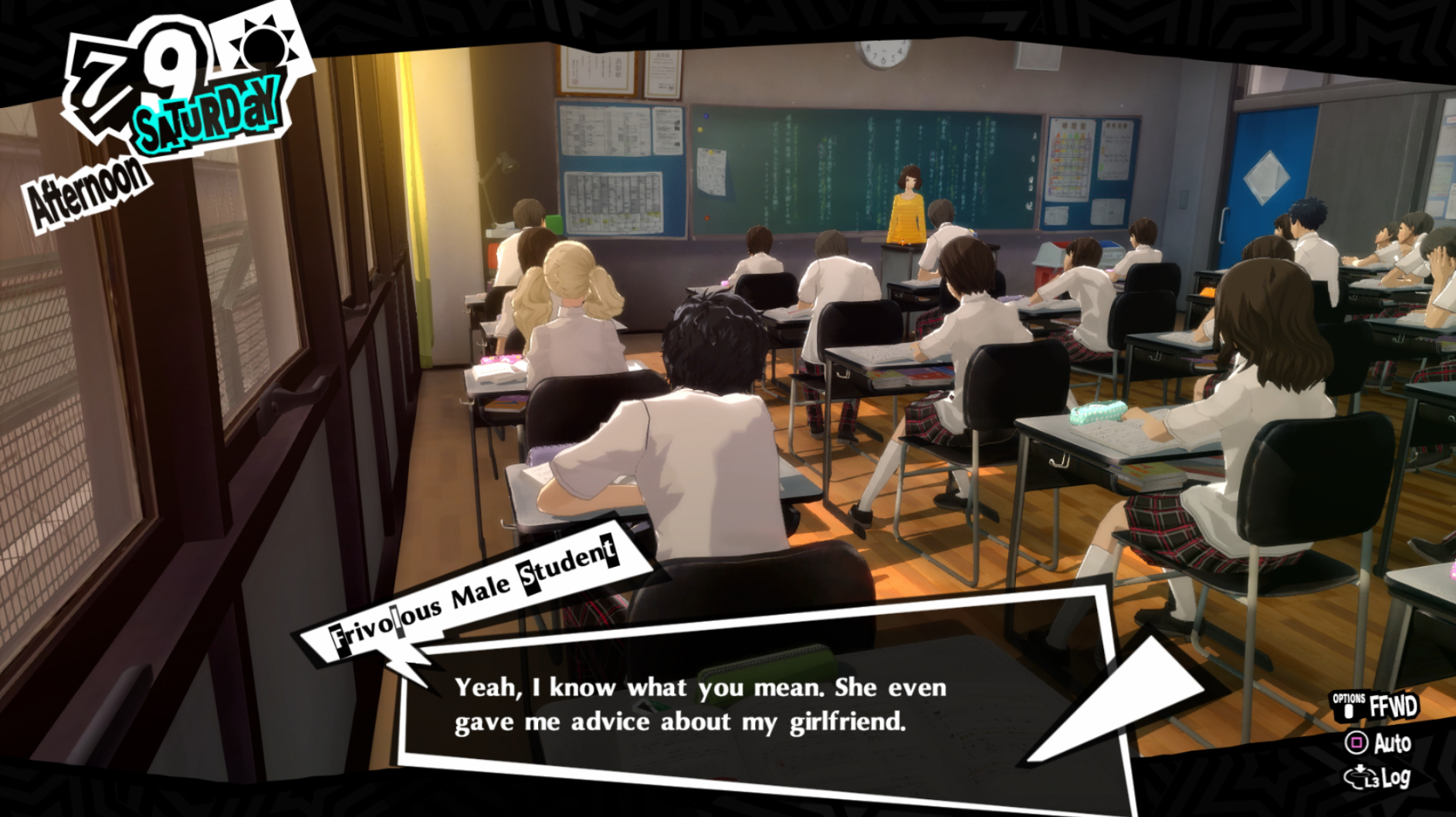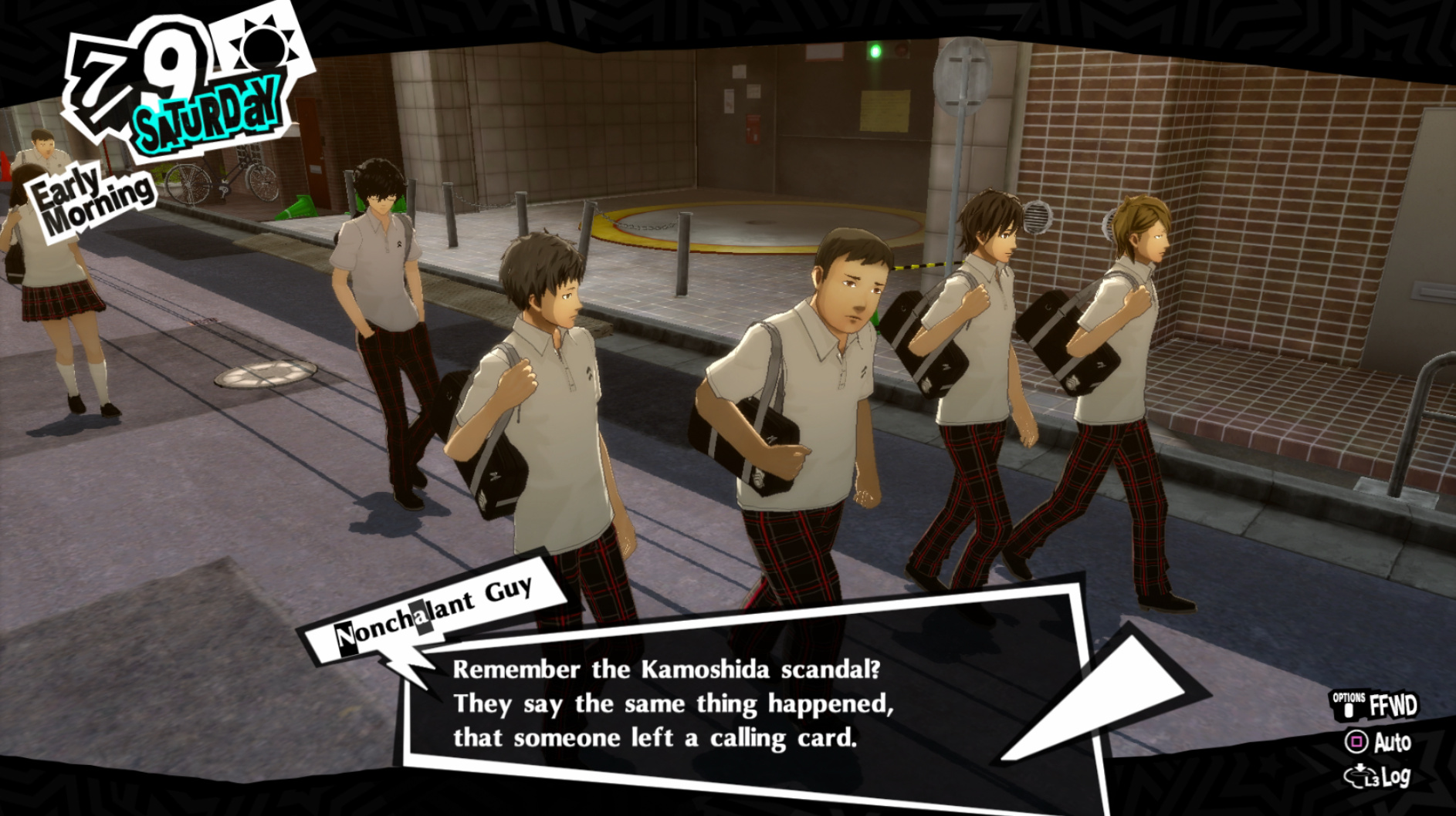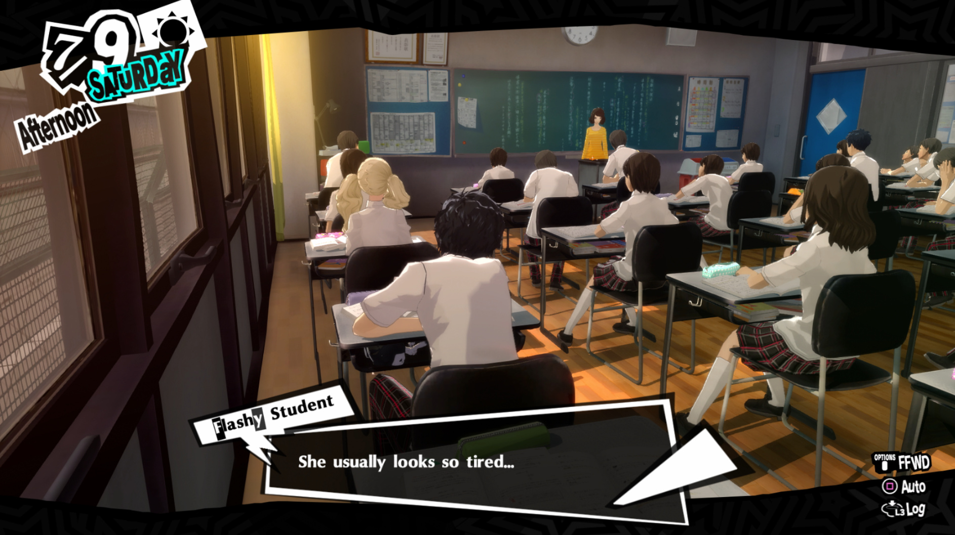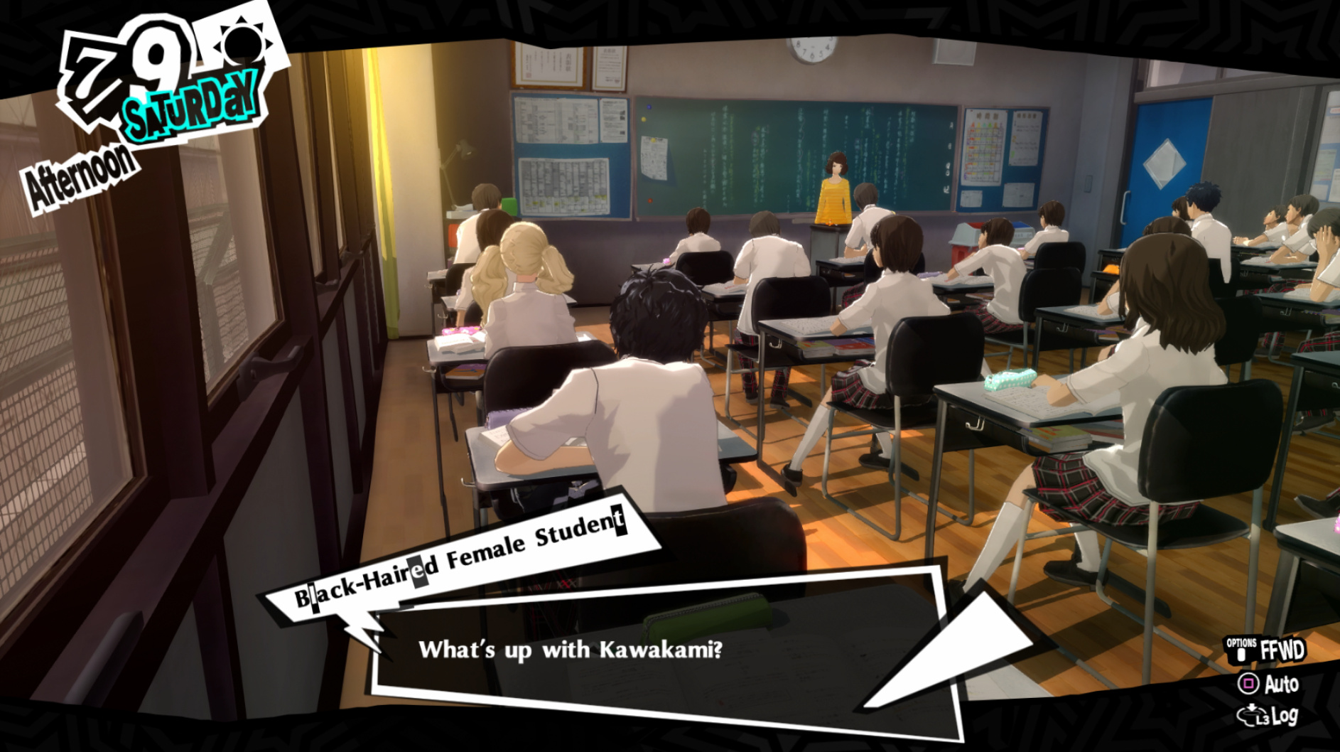 : Joker tries to figure out the best way to signal Ann to turn off speakerphone so he can tell them not to let her know he brings Morgana to his exams.