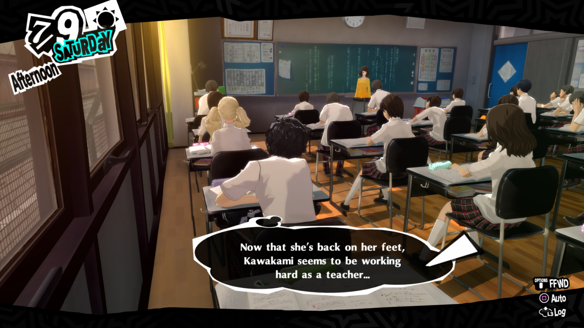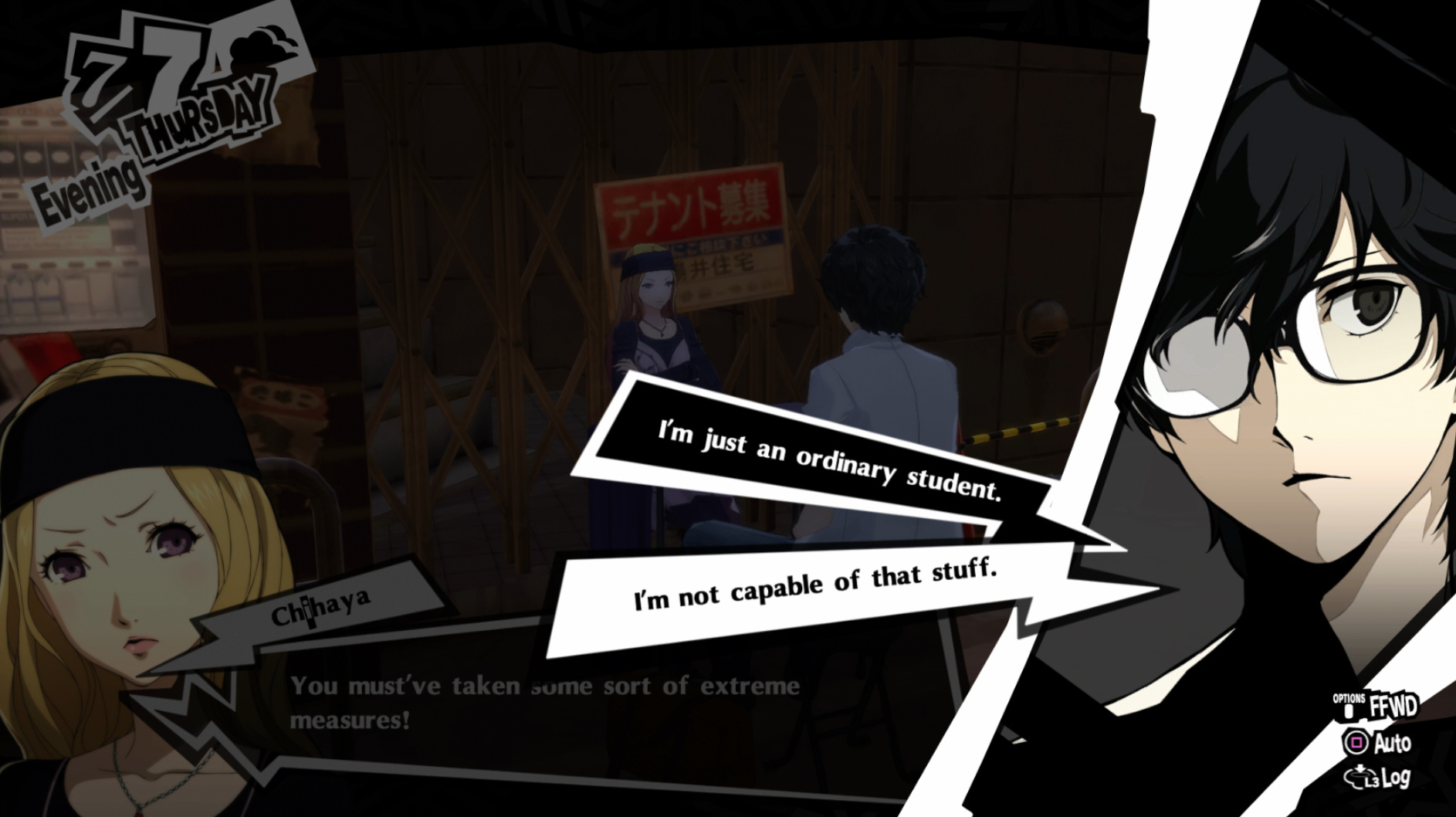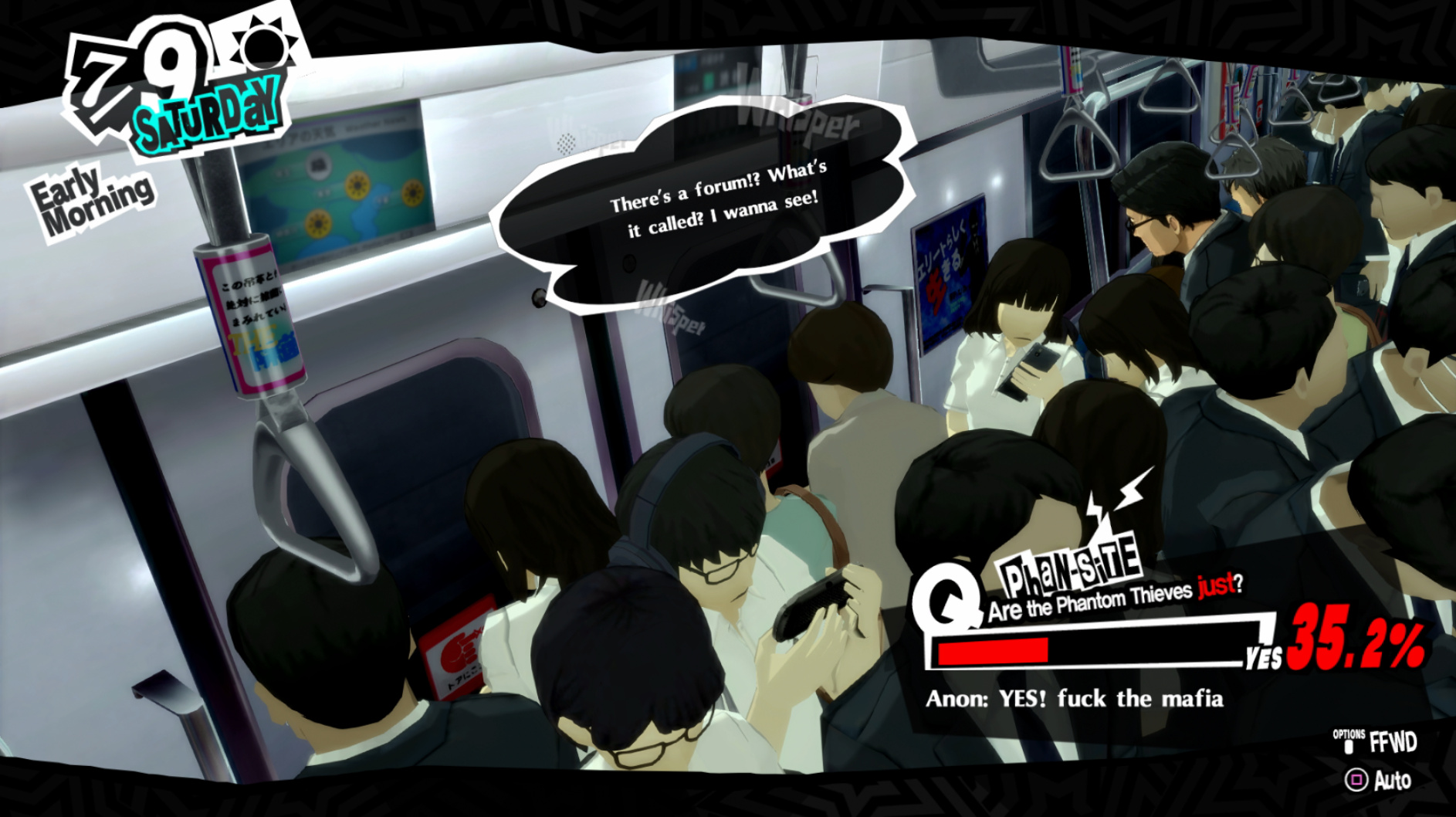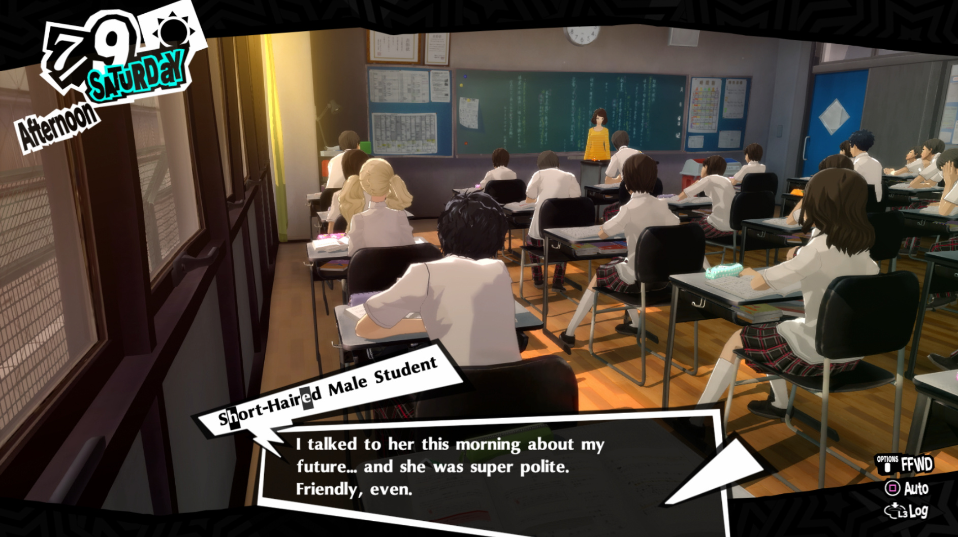 : Joker tries to figure out the best way to signal Ann to turn off speakerphone so he can tell them not to let her know he brings Morgana to his exams.