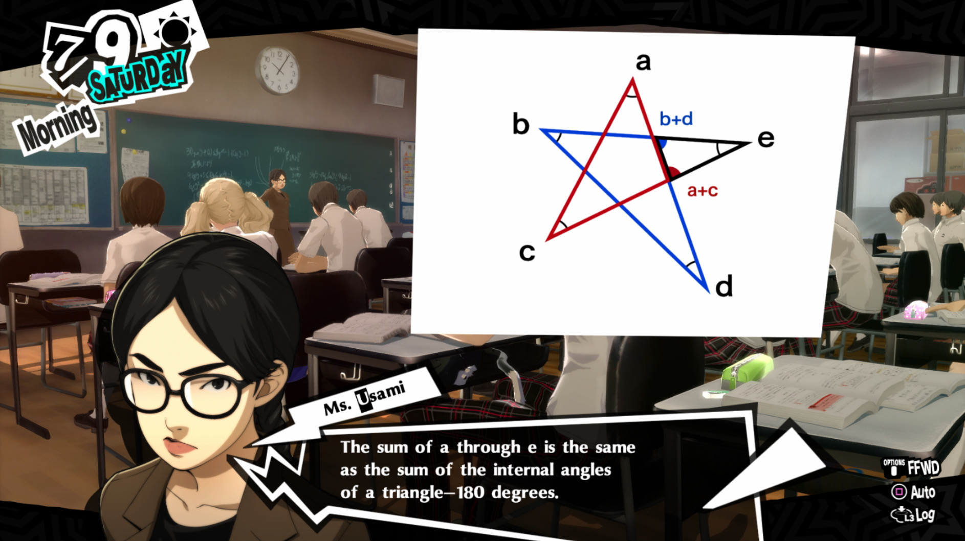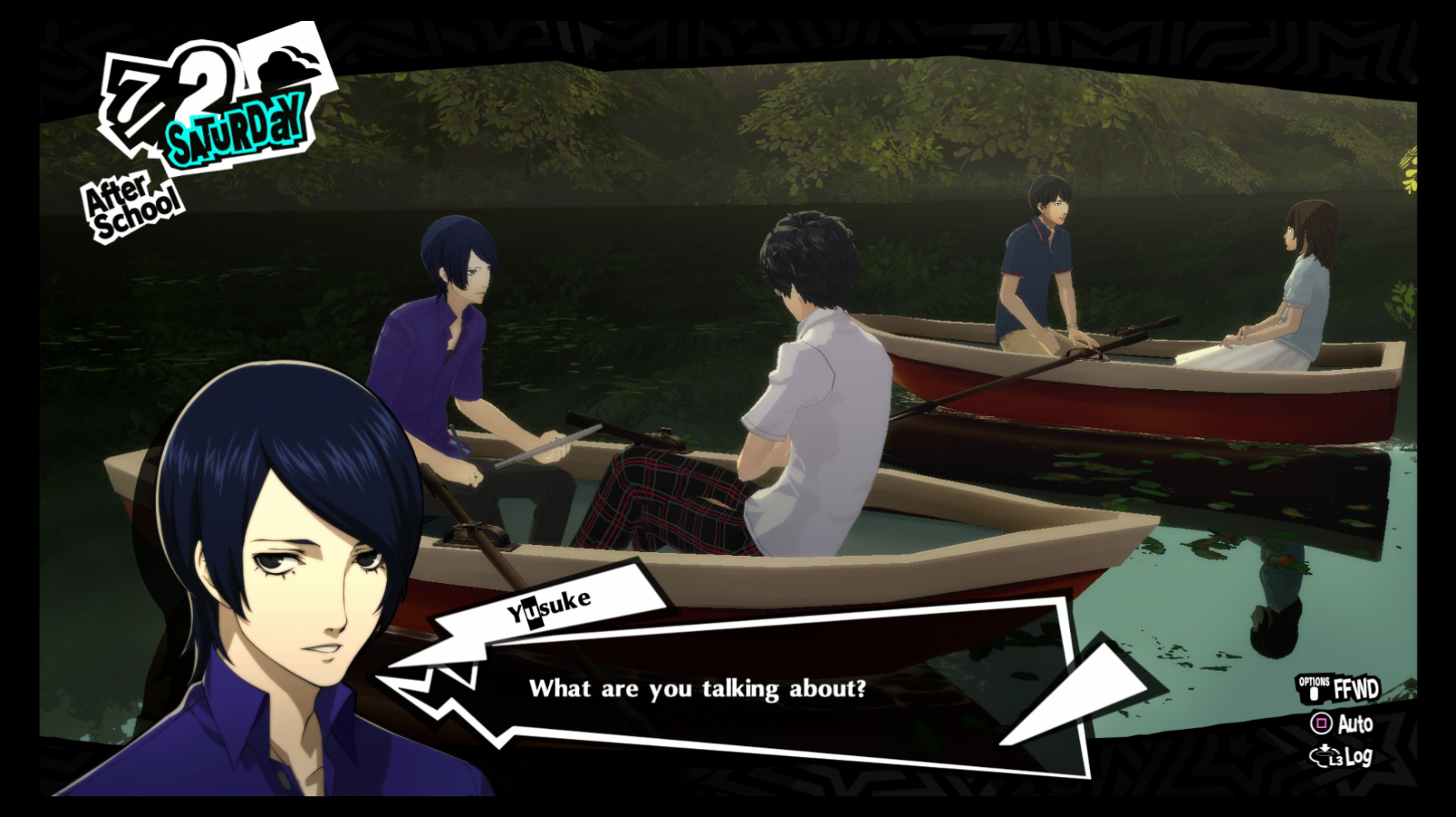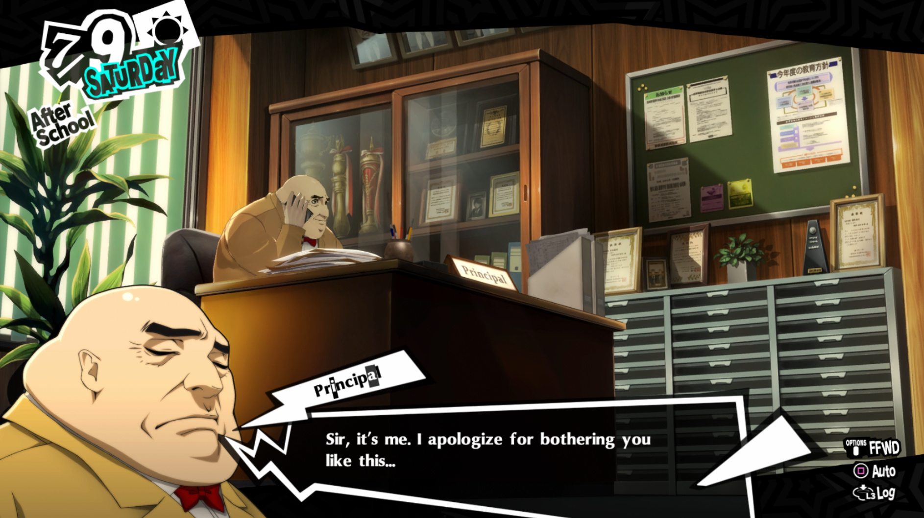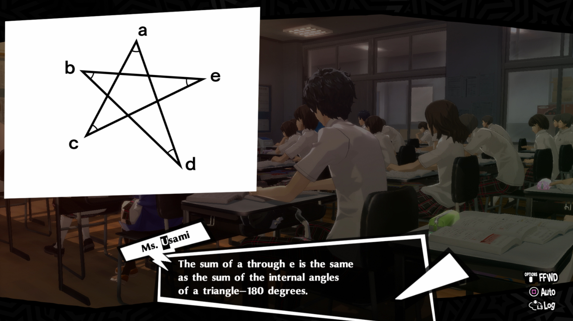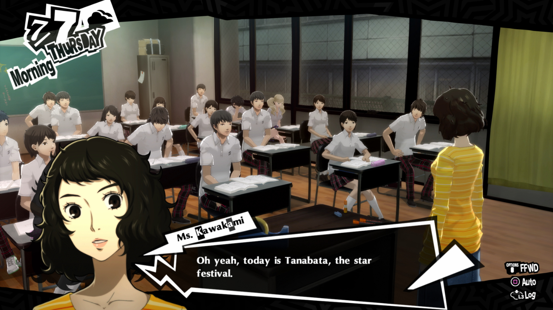 : Joker tries to figure out the best way to signal Ann to turn off speakerphone so he can tell them not to let her know he brings Morgana to his exams.
