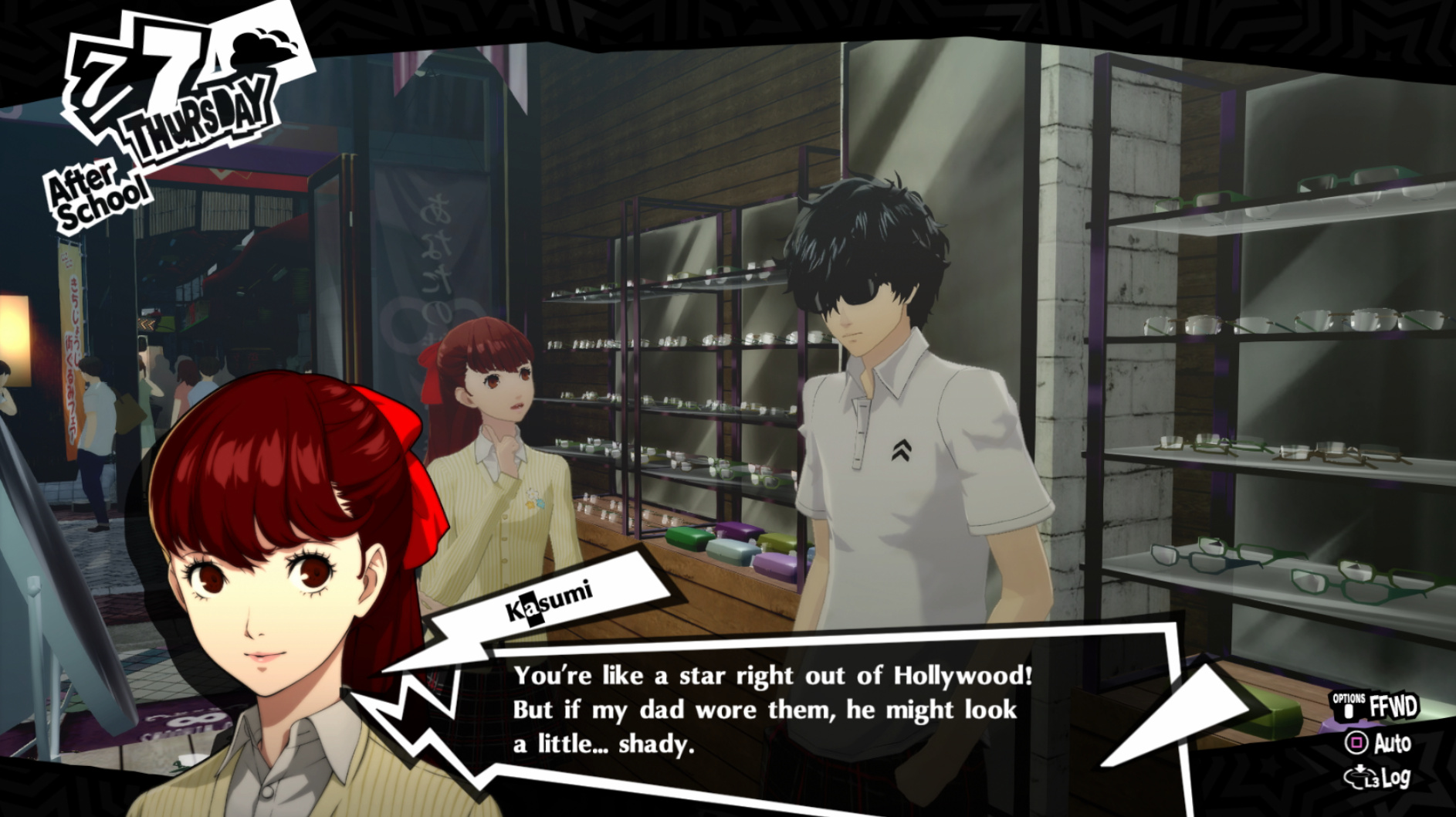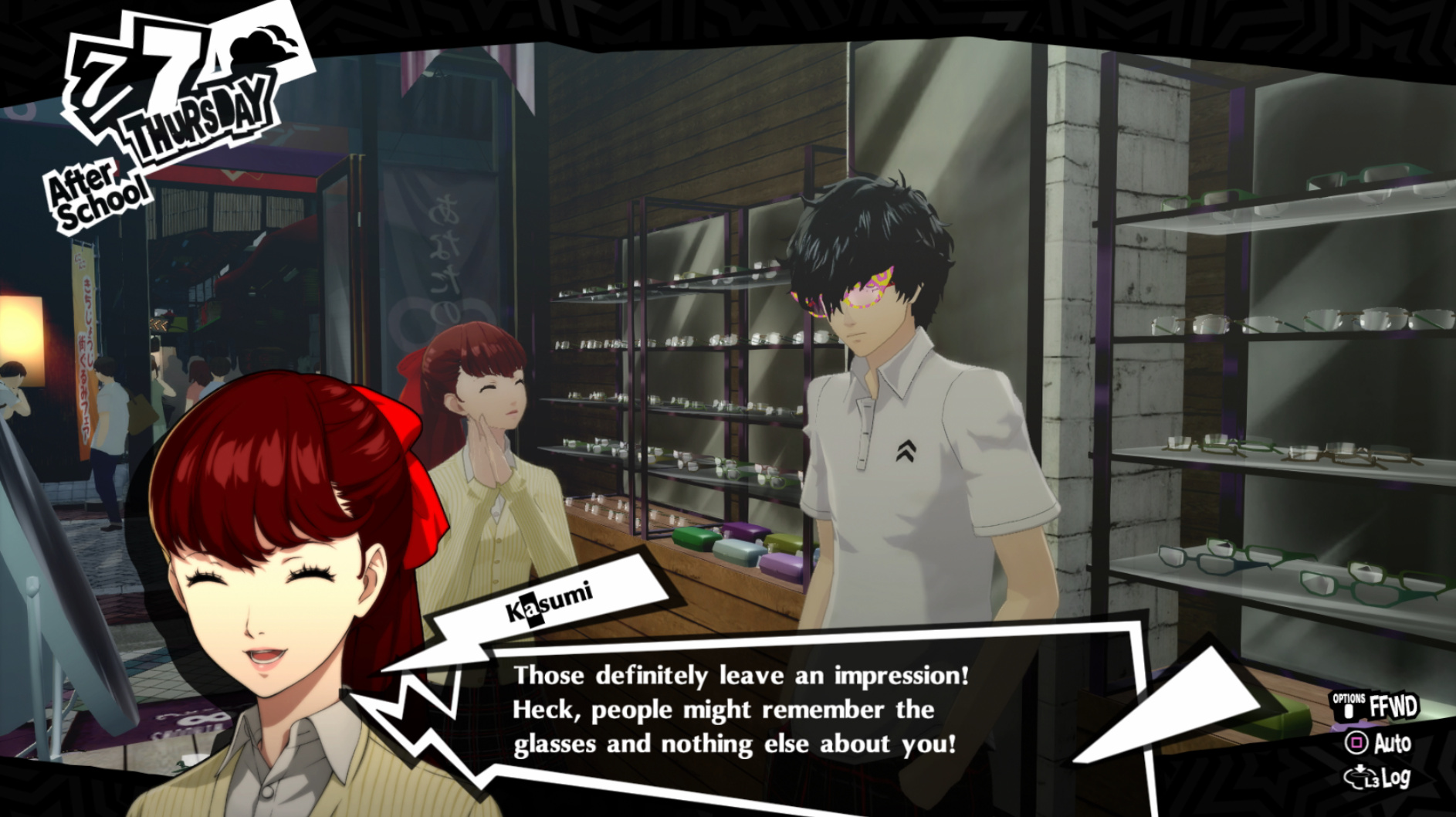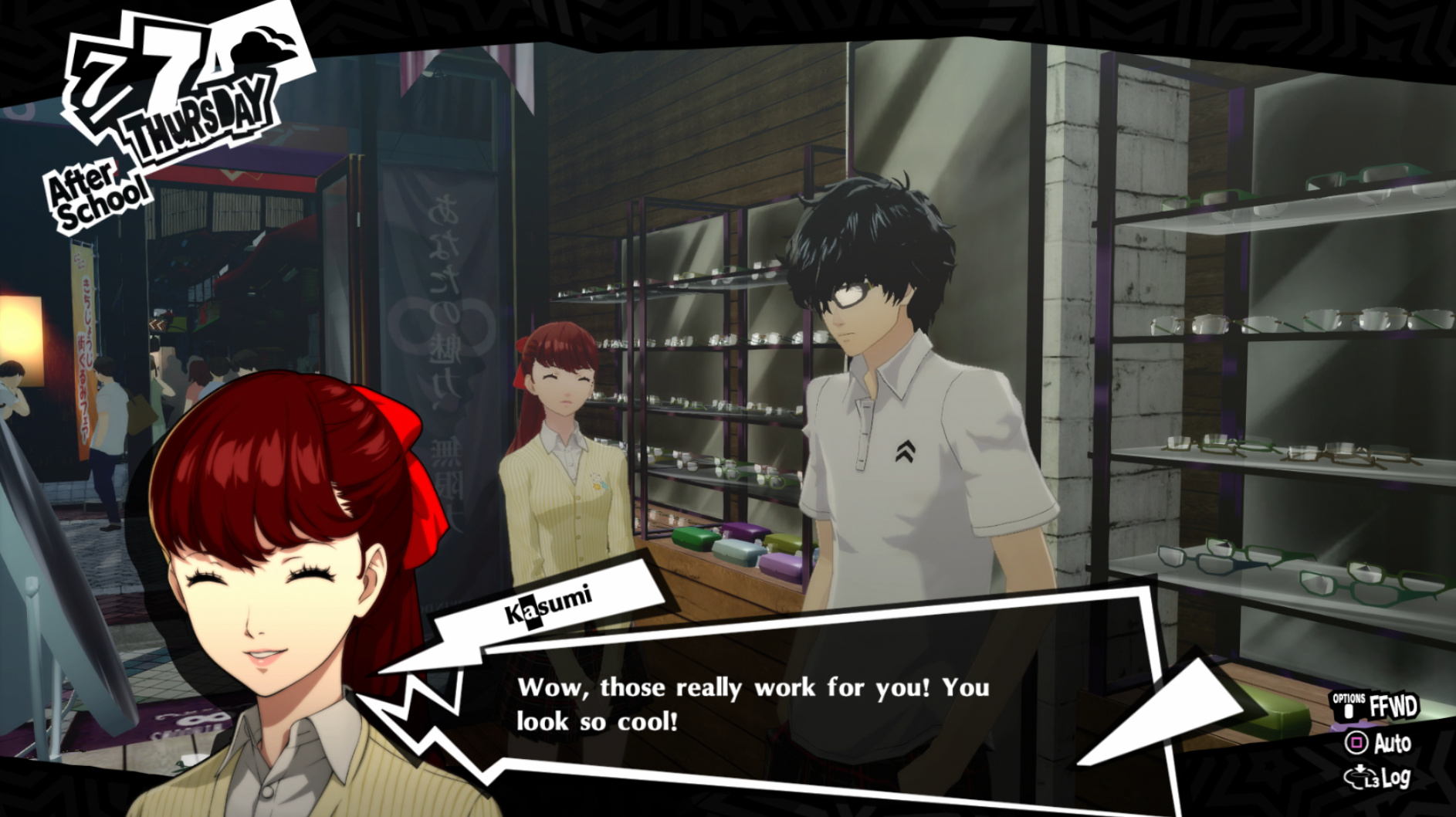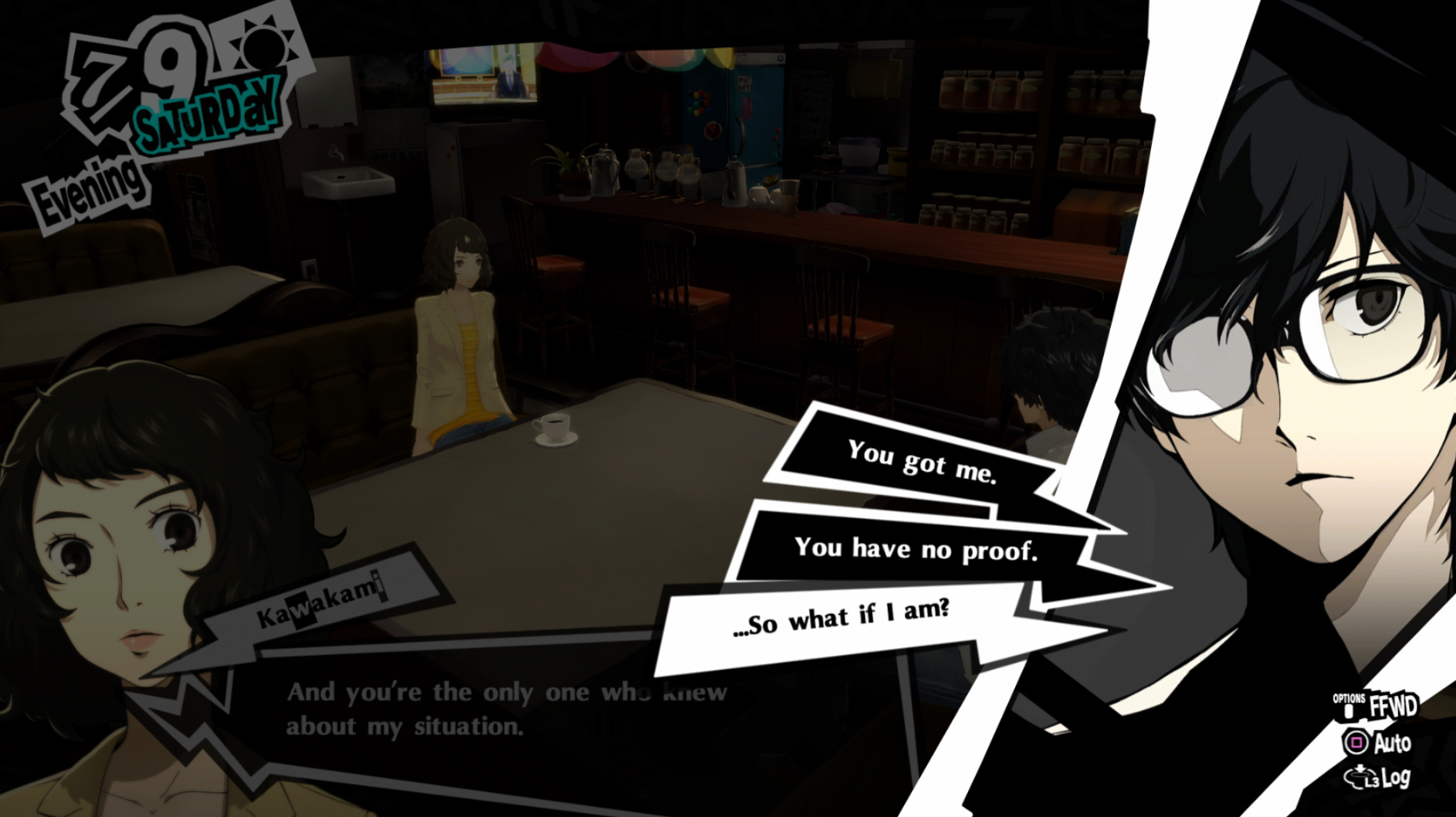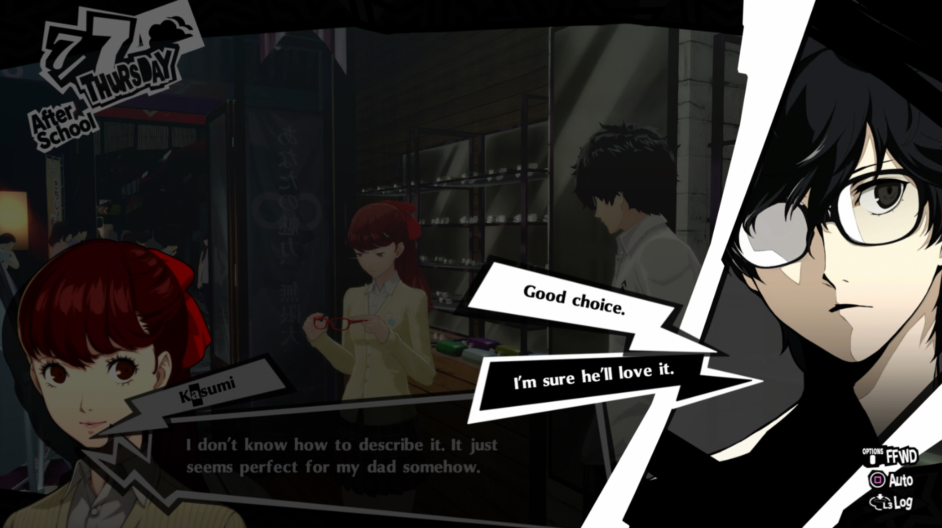 : I’m also reasonably certain that the green glasses on the rack behind Joker are Chie’s.