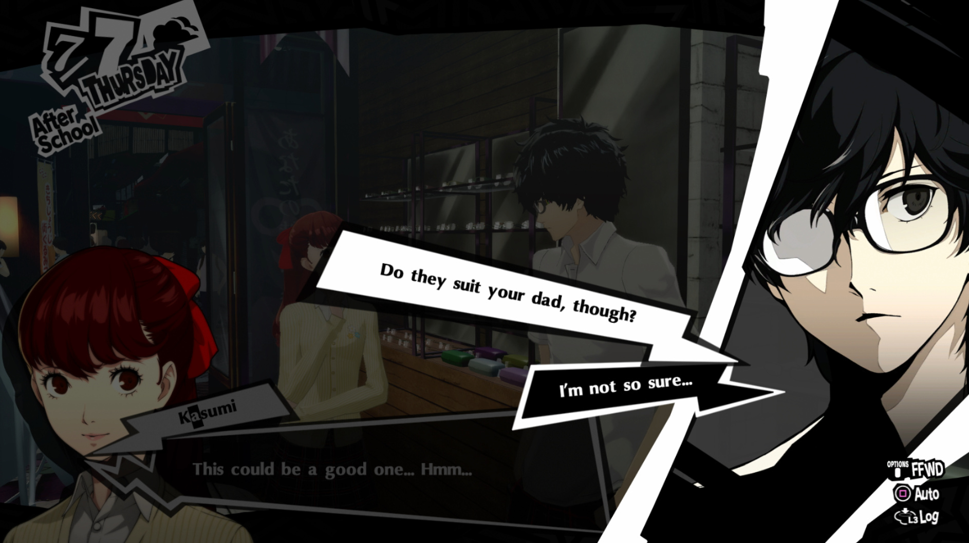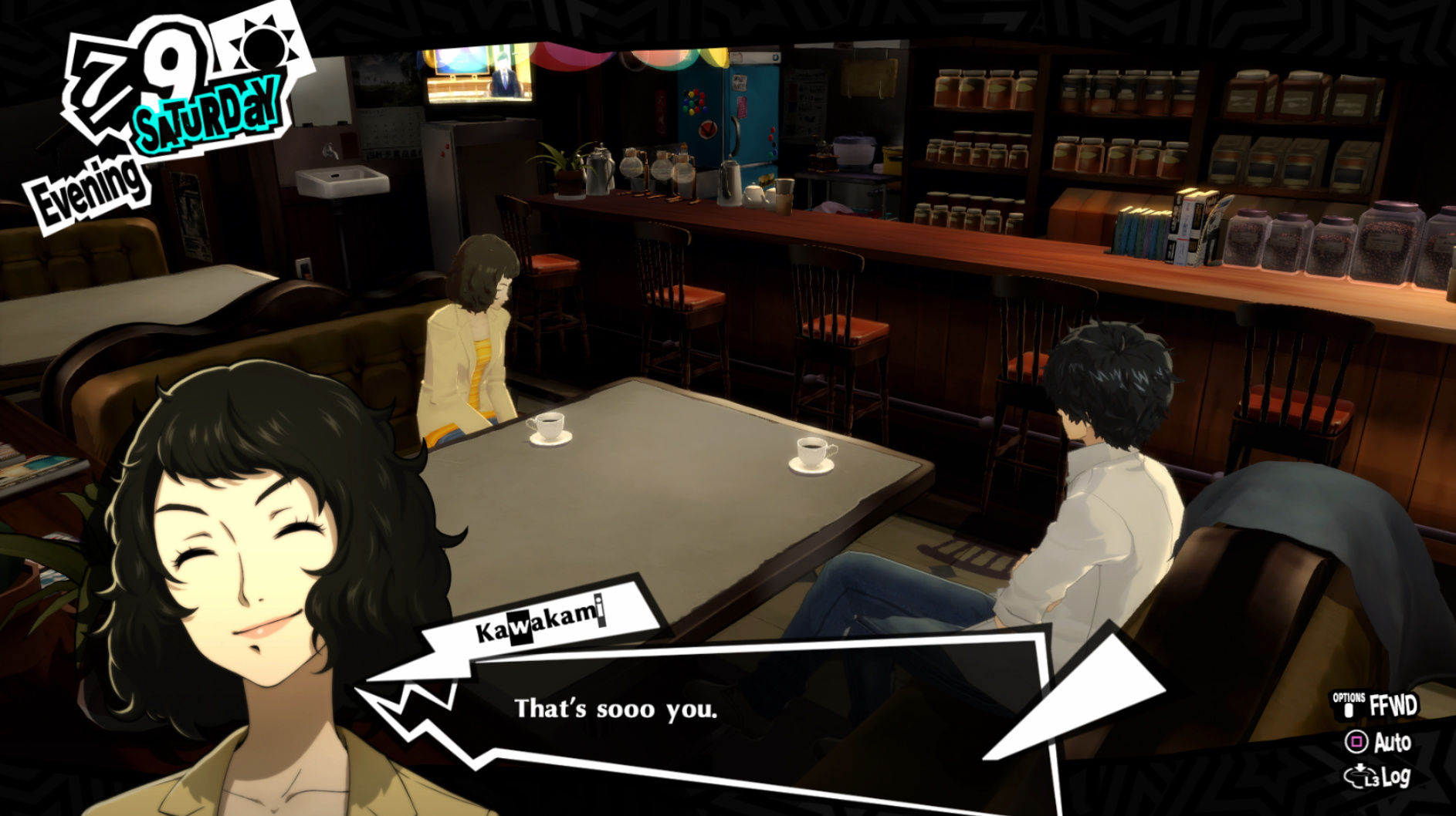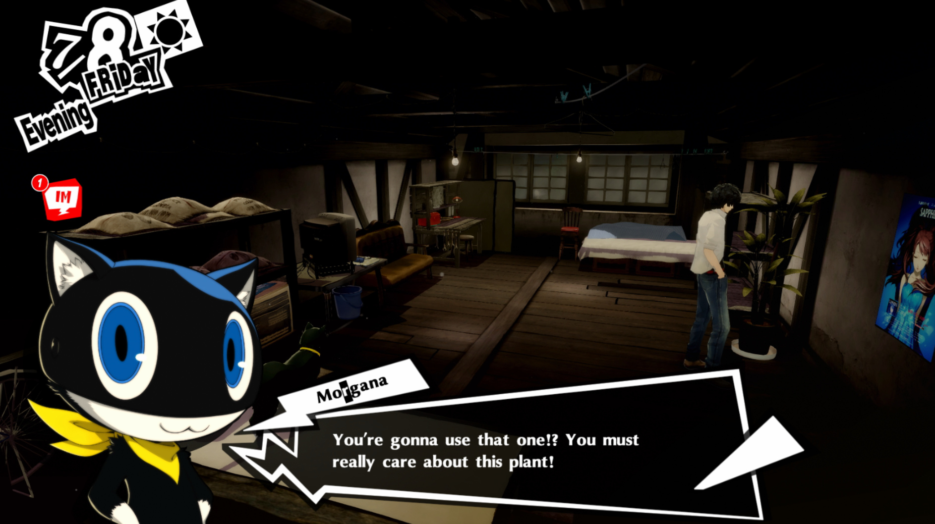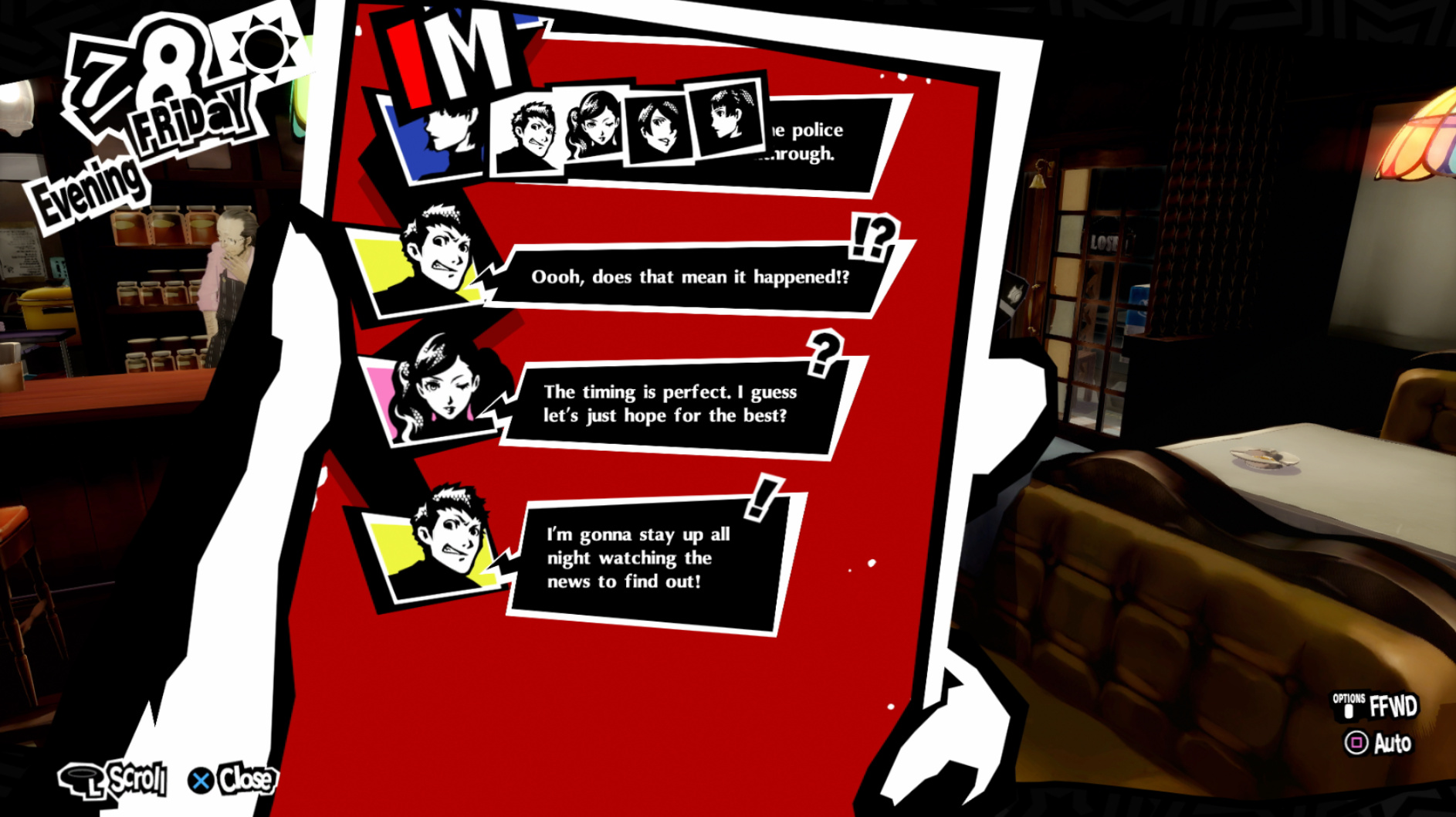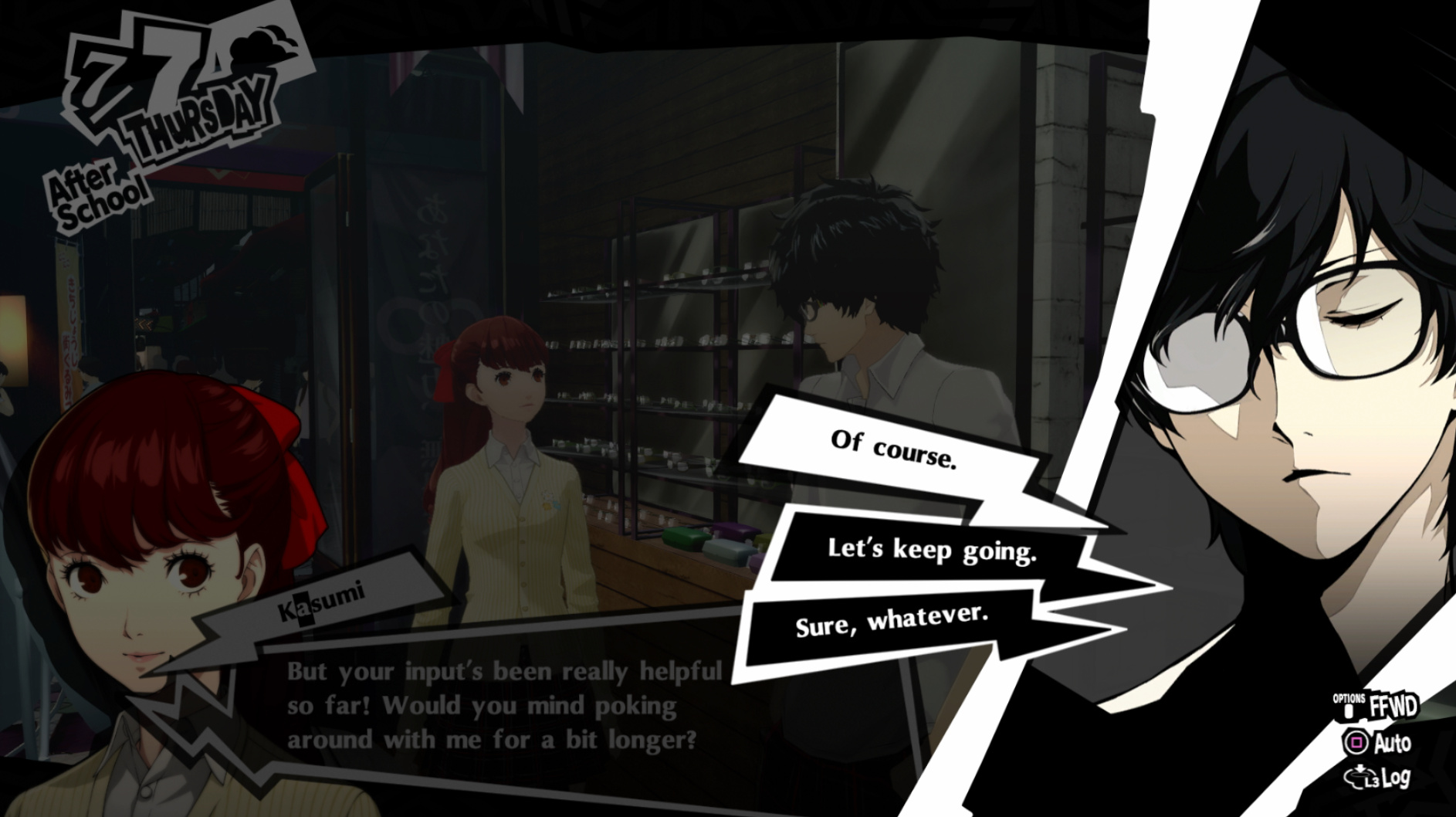 : I’m also reasonably certain that the green glasses on the rack behind Joker are Chie’s.