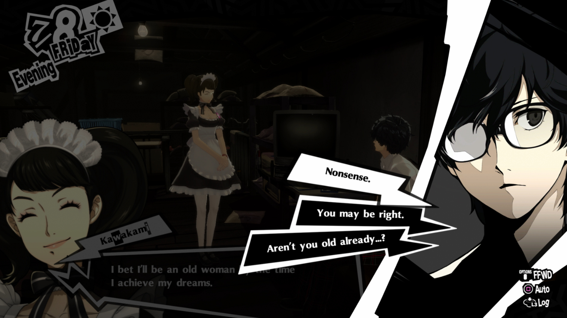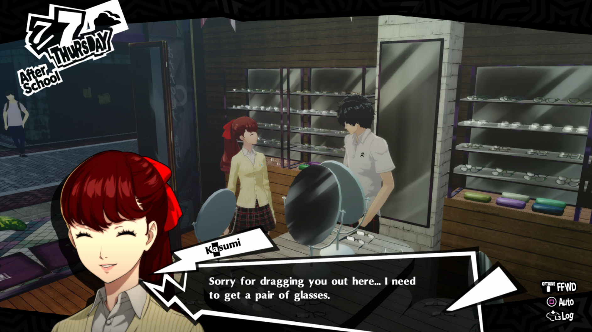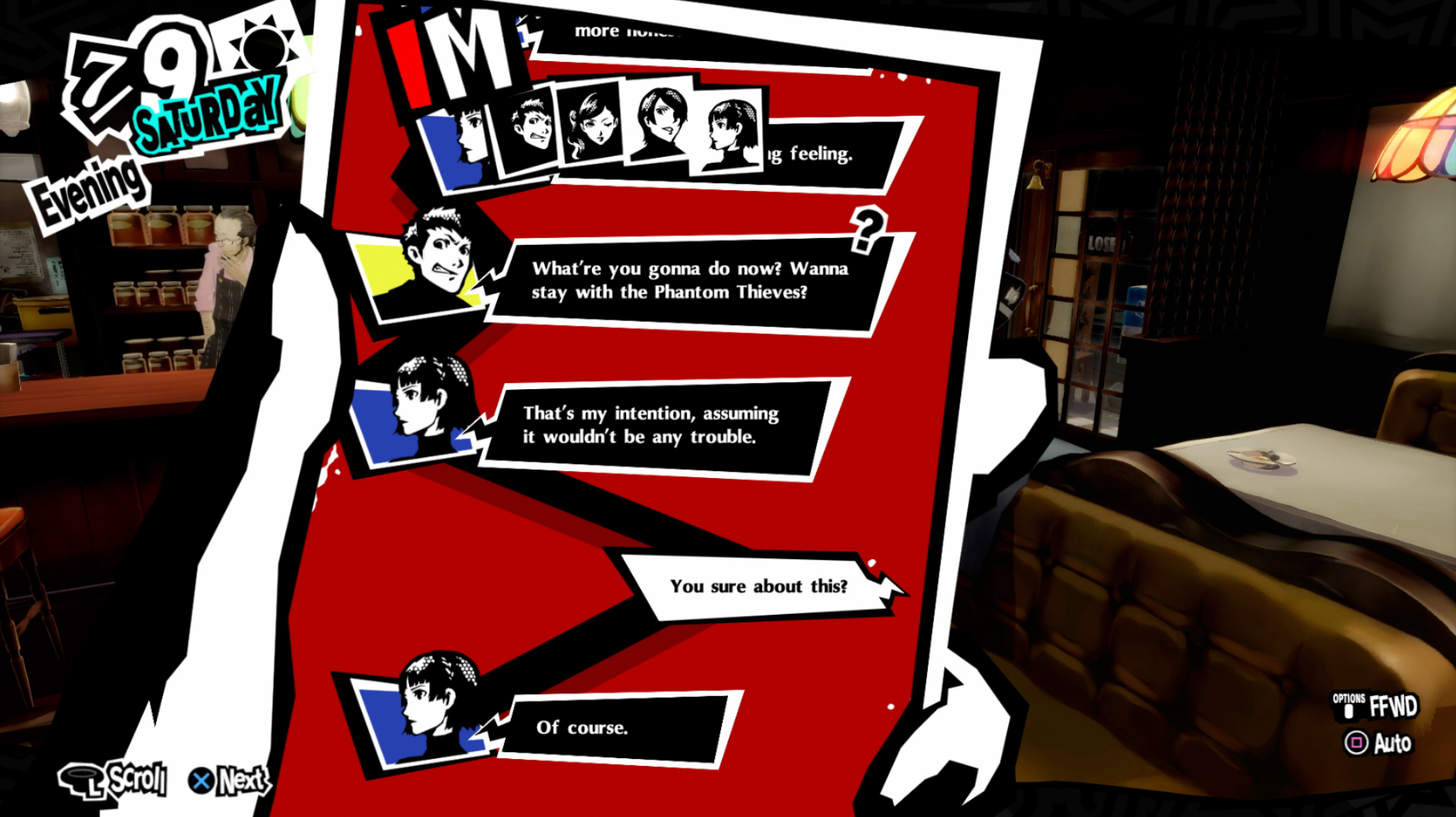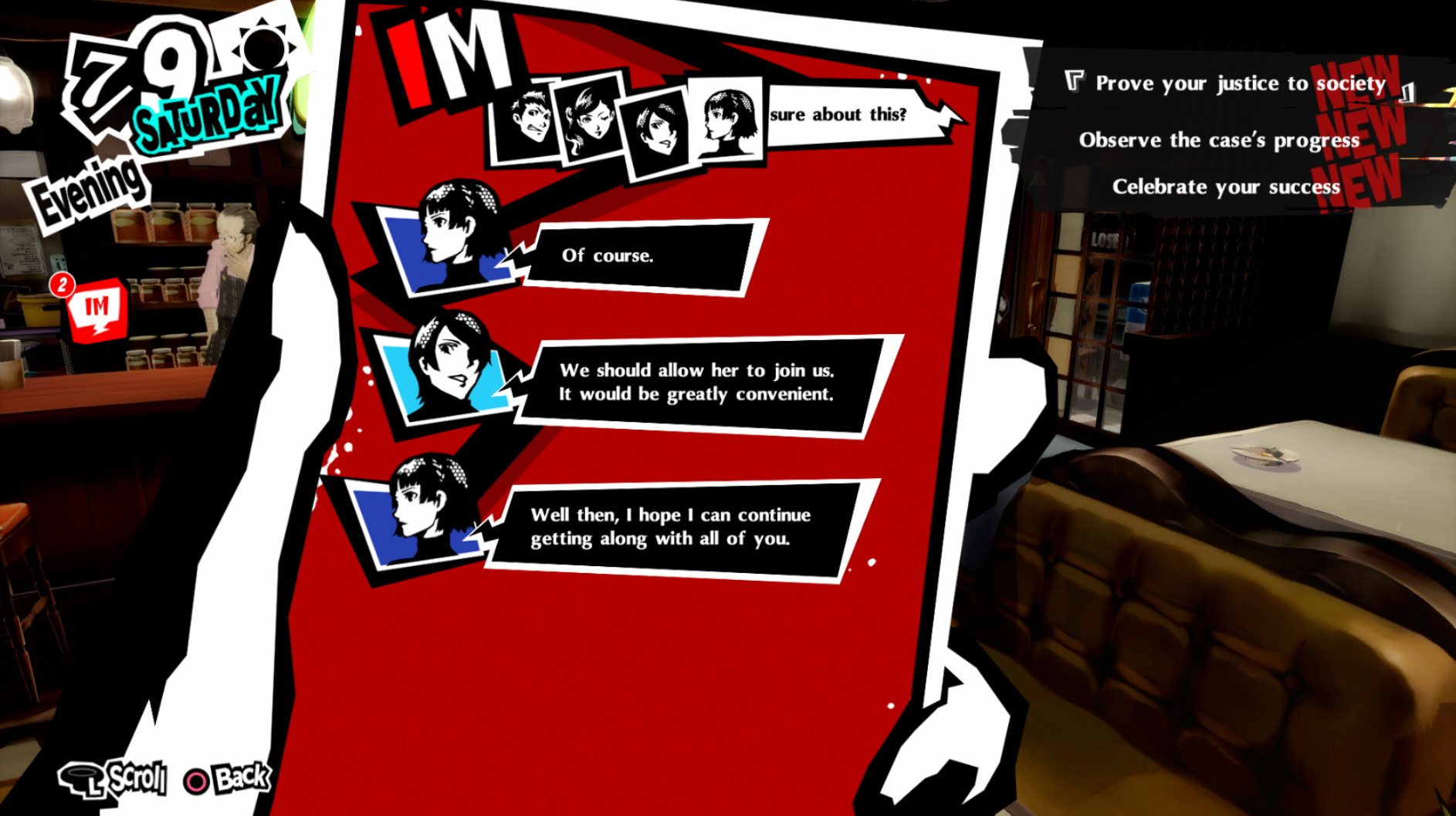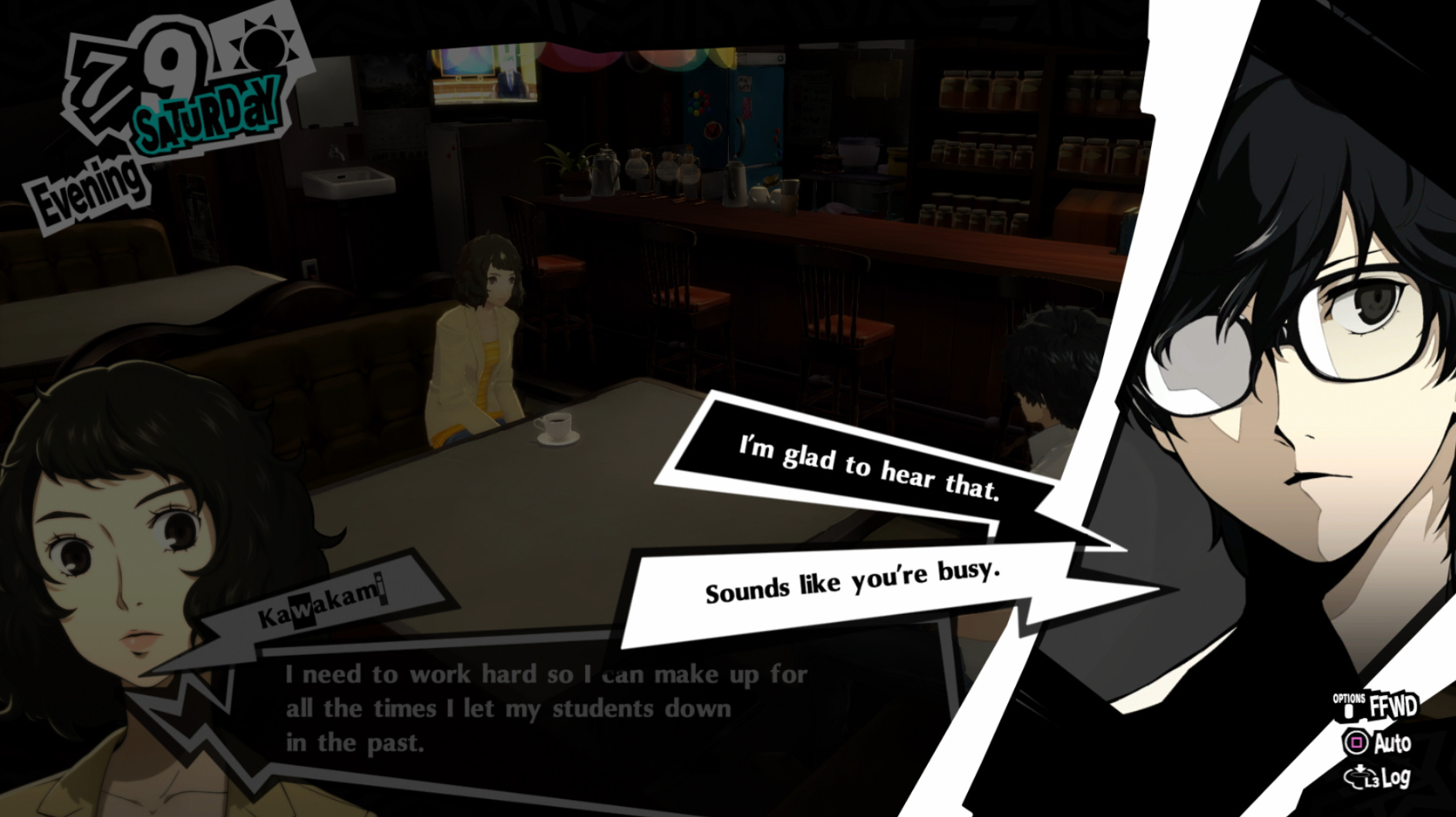 : I’m also reasonably certain that the green glasses on the rack behind Joker are Chie’s.