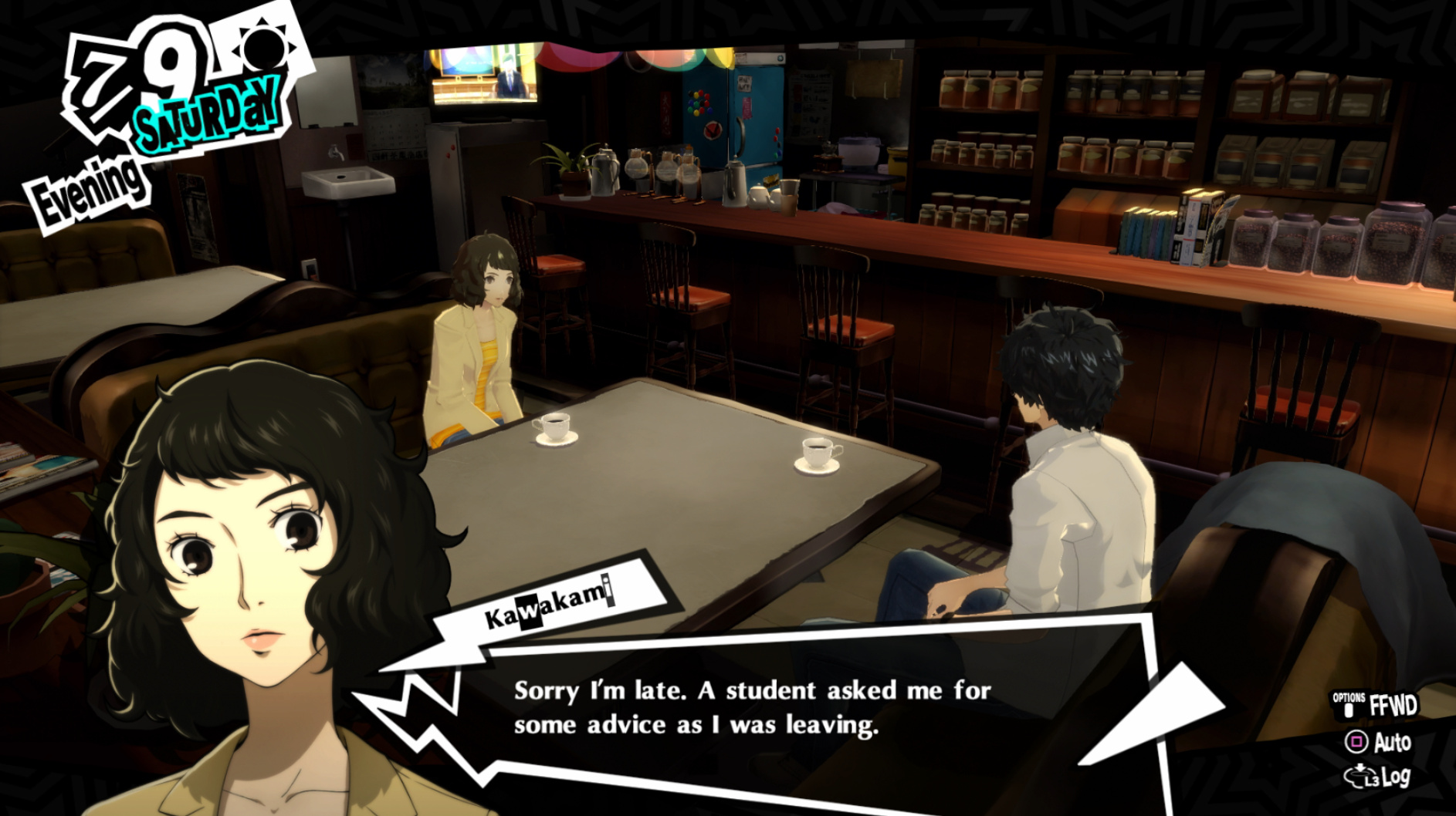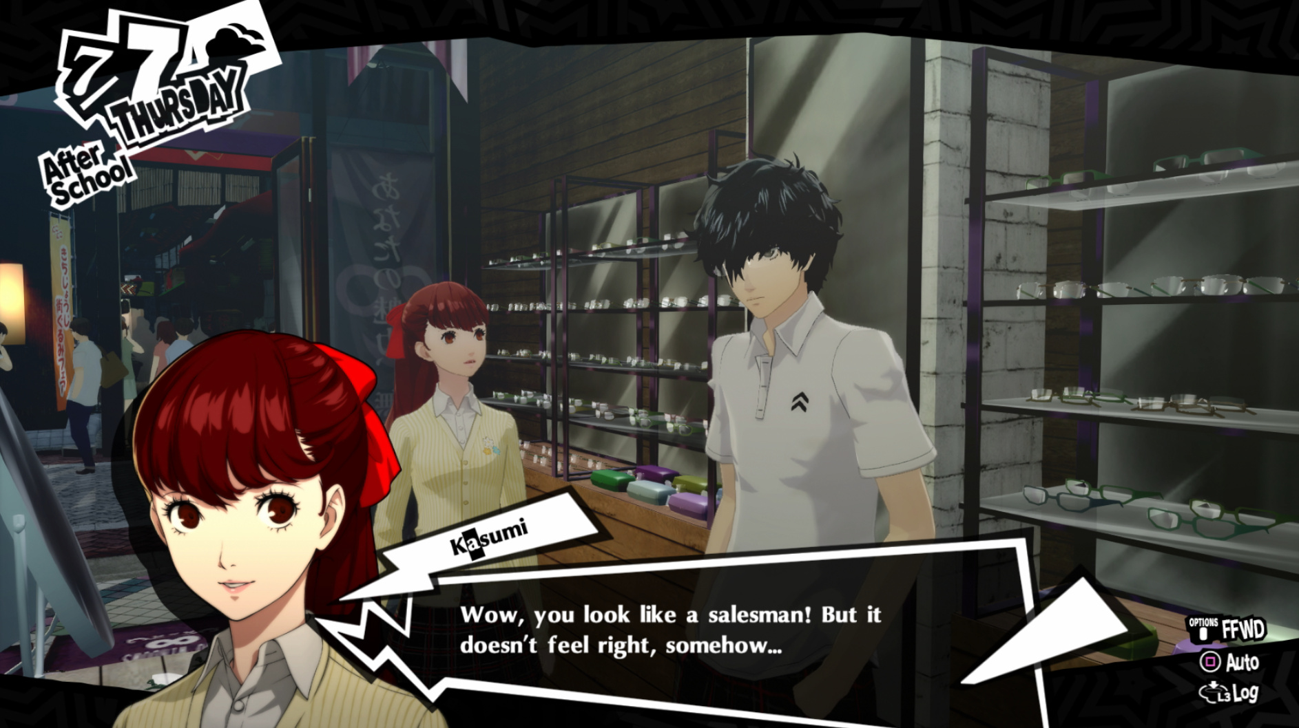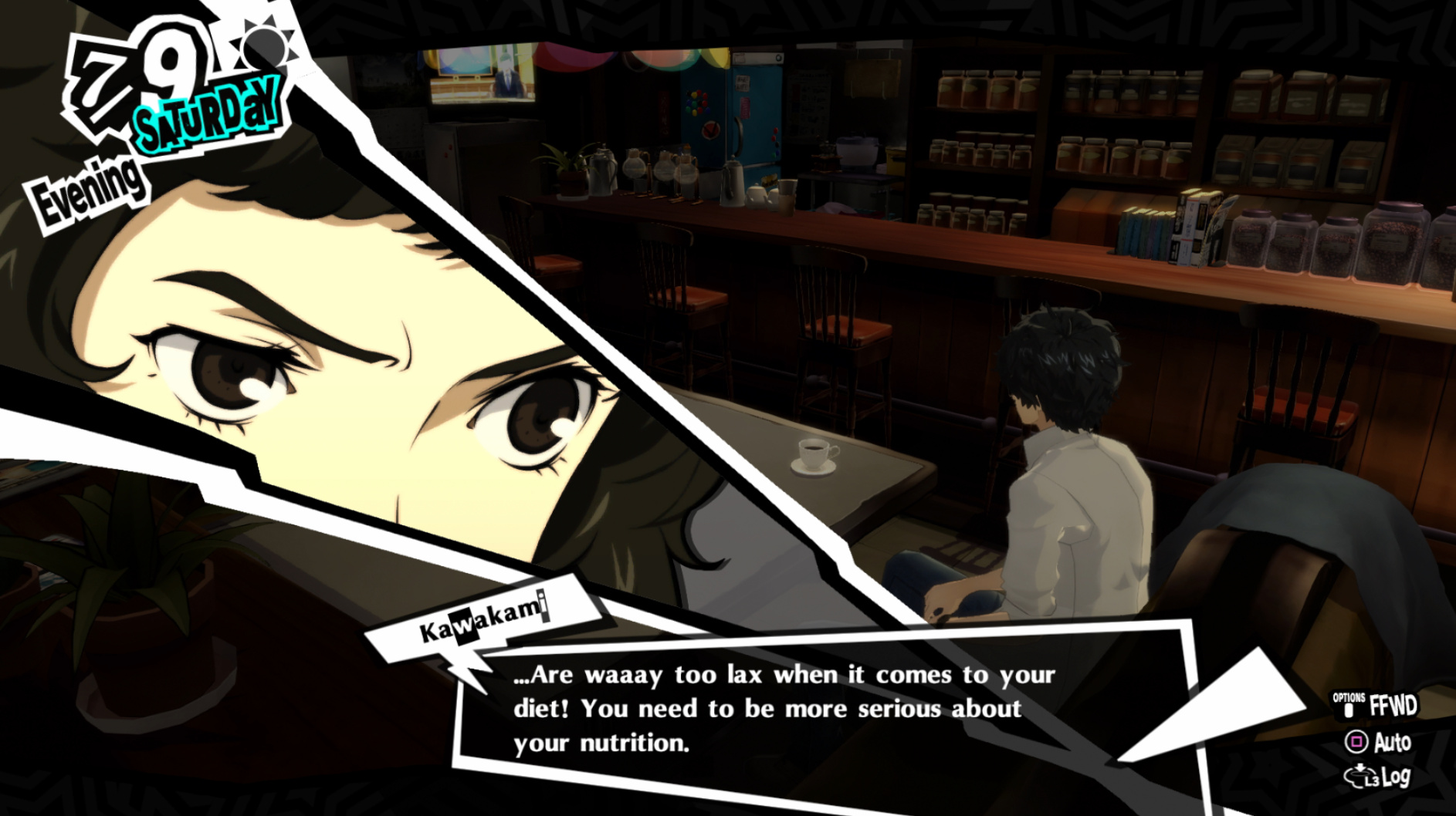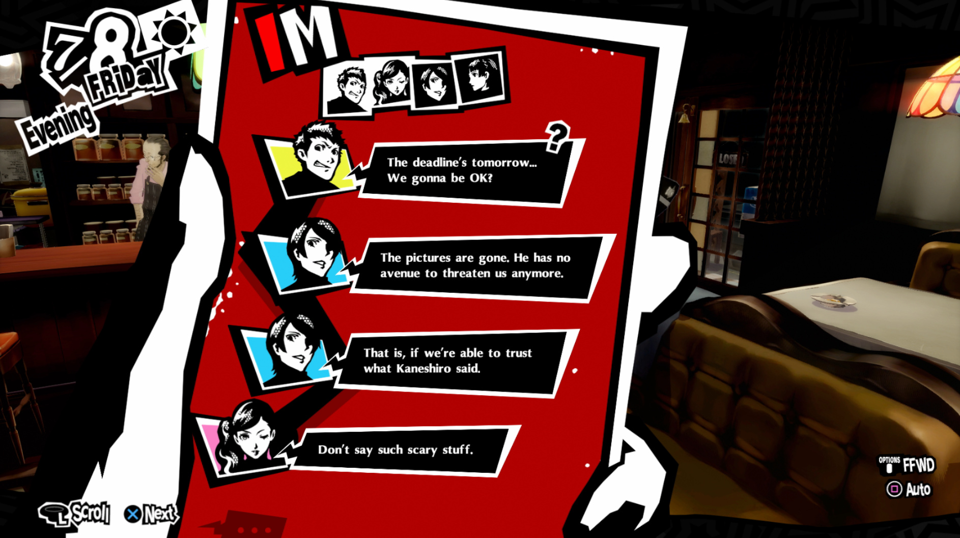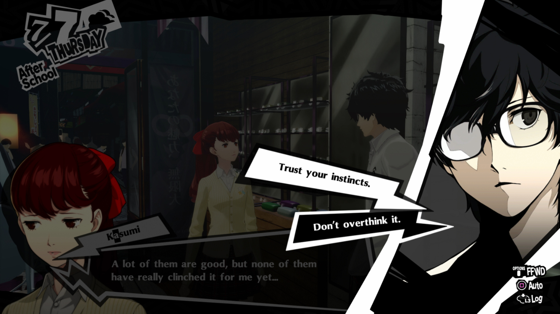 : I’m also reasonably certain that the green glasses on the rack behind Joker are Chie’s.