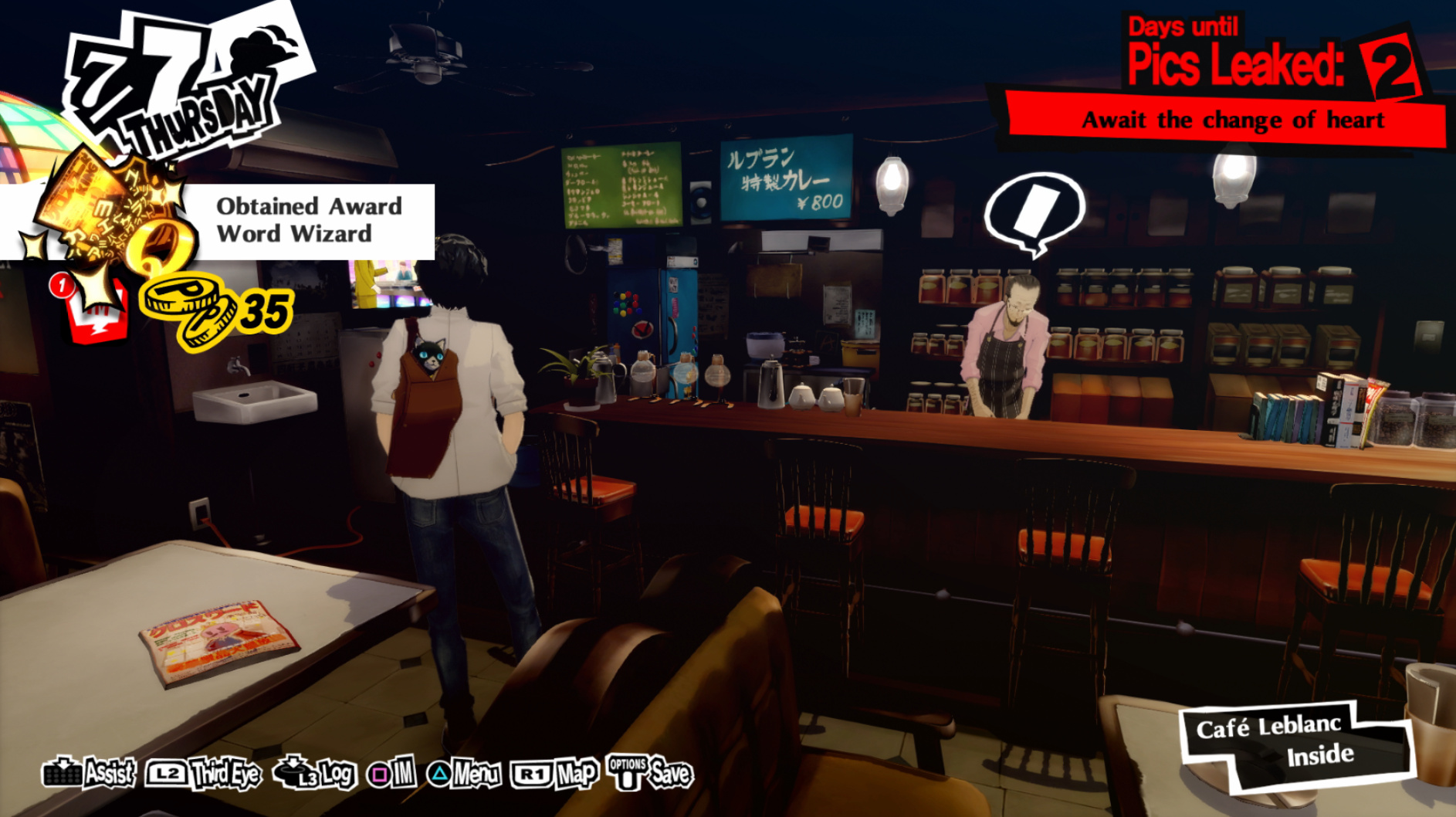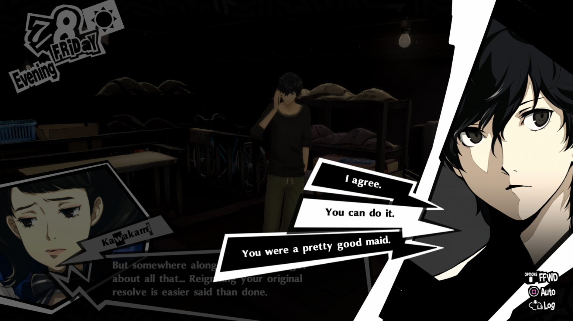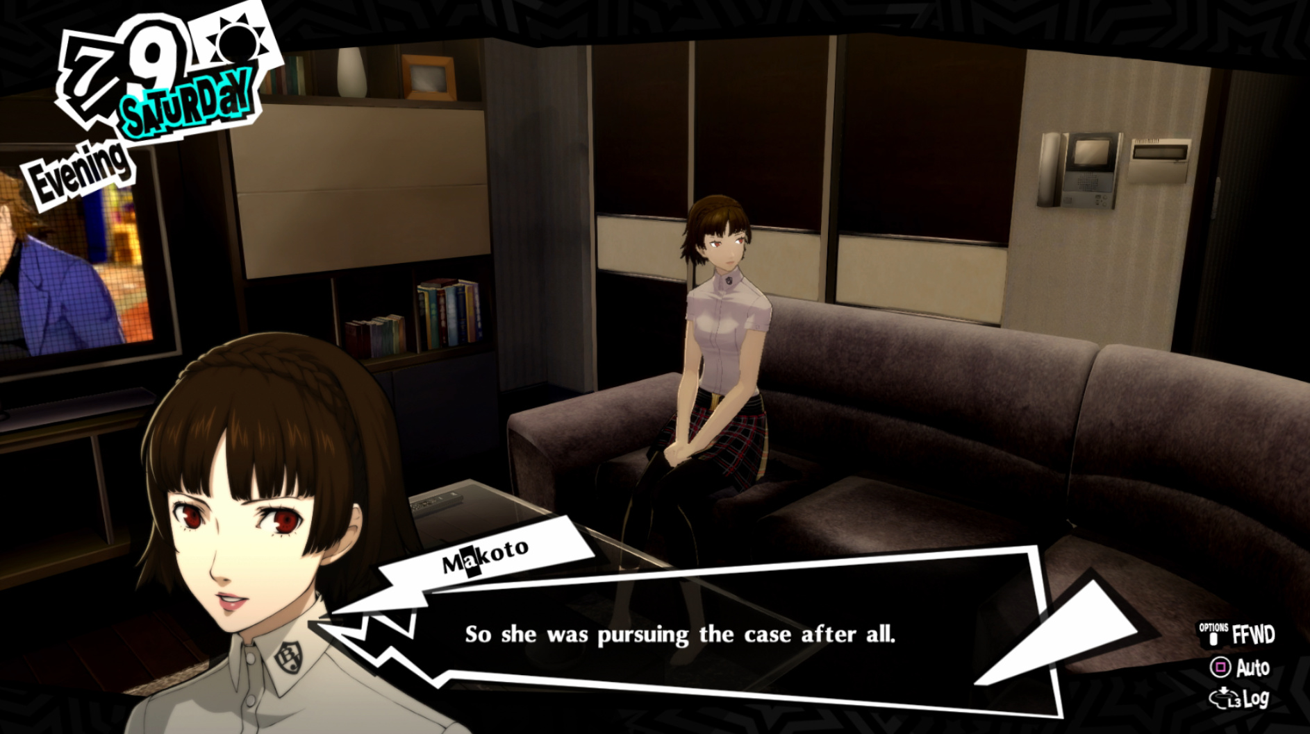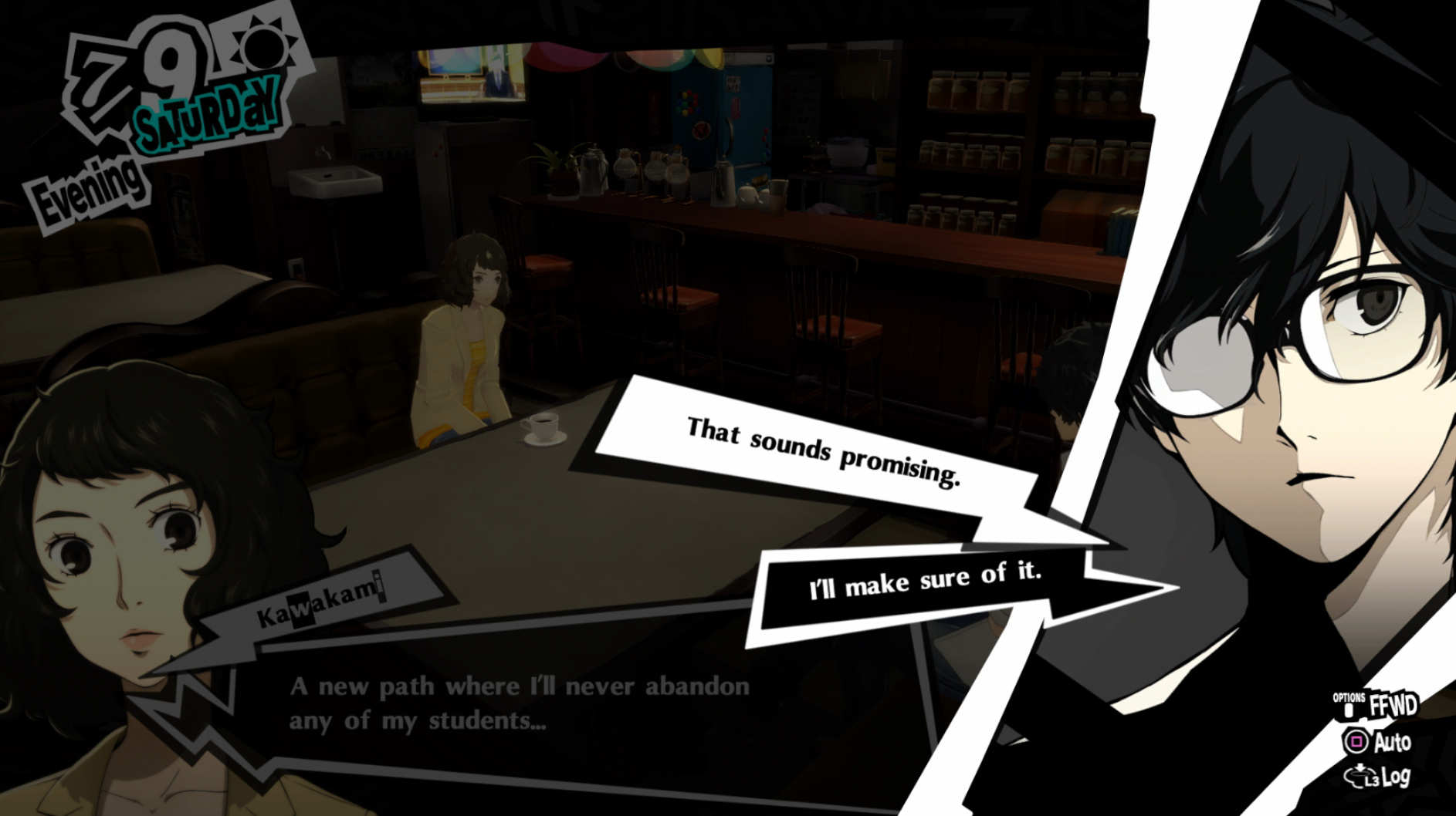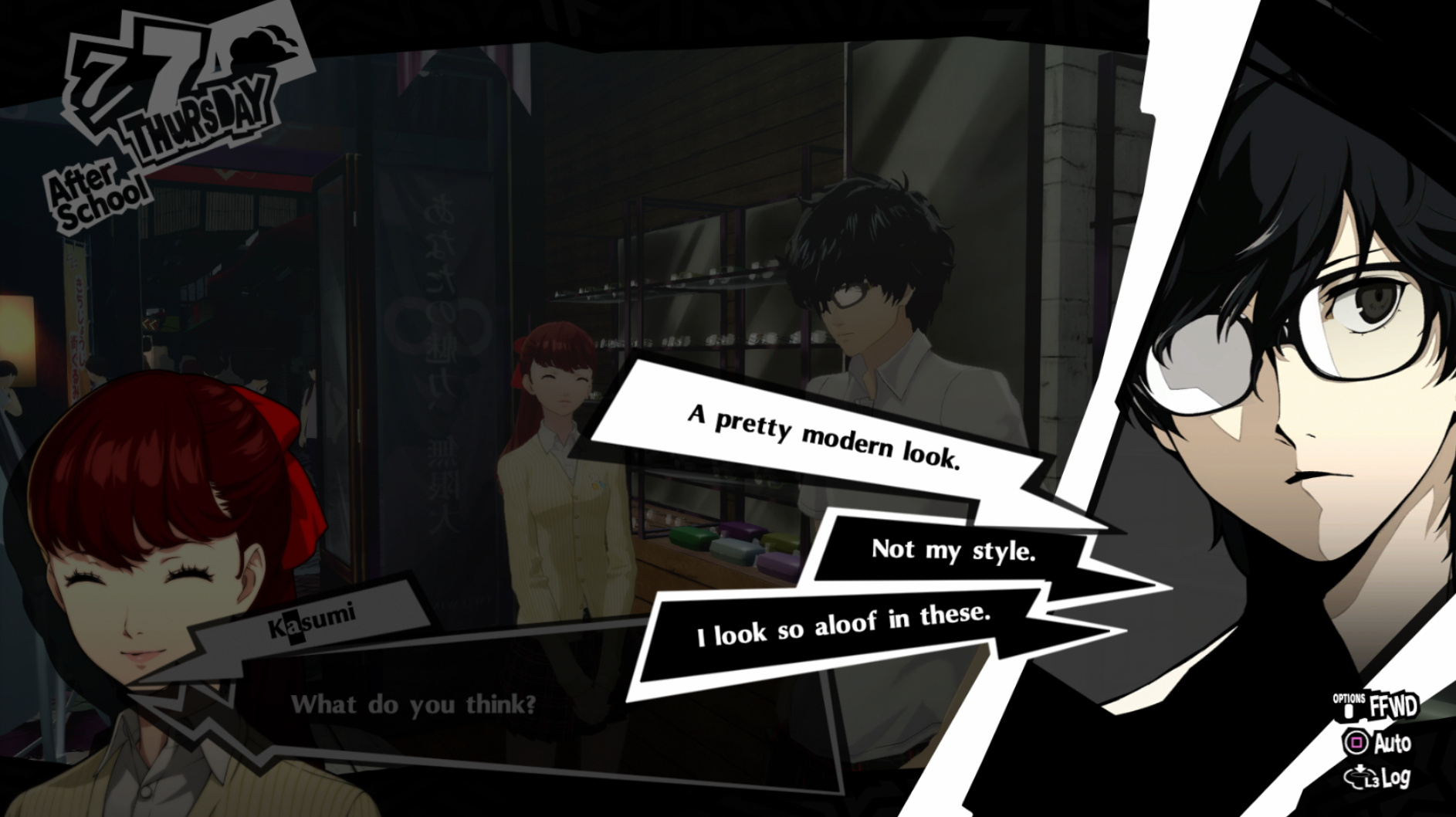 : I’m also reasonably certain that the green glasses on the rack behind Joker are Chie’s.