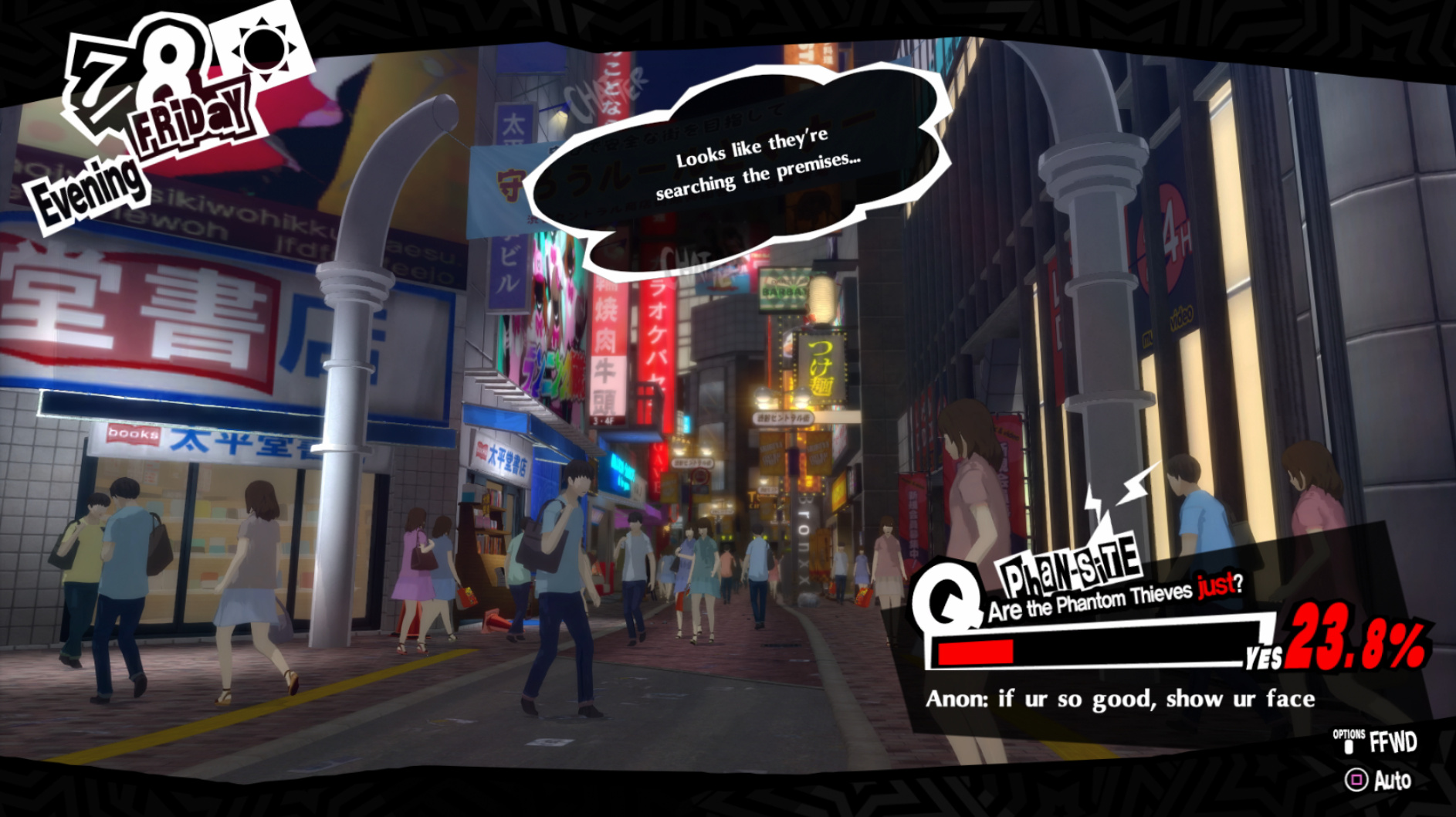 : “Makoto aside, you mentioned one other important detail. Did Kaneshiro really say there was someone using the Metaverse besides the Phantom Thieves?”
