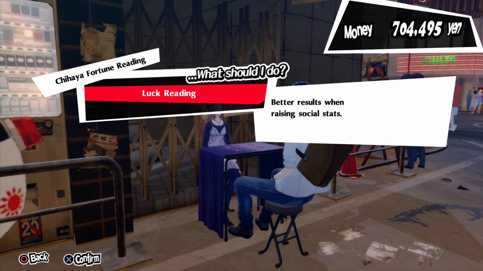 : I think I said earlier that Luck Reading doubles stat gains. That’s actually incorrect - it gives you a 50% bonus. A luck reading costs 5000 yen and lasts a single day.