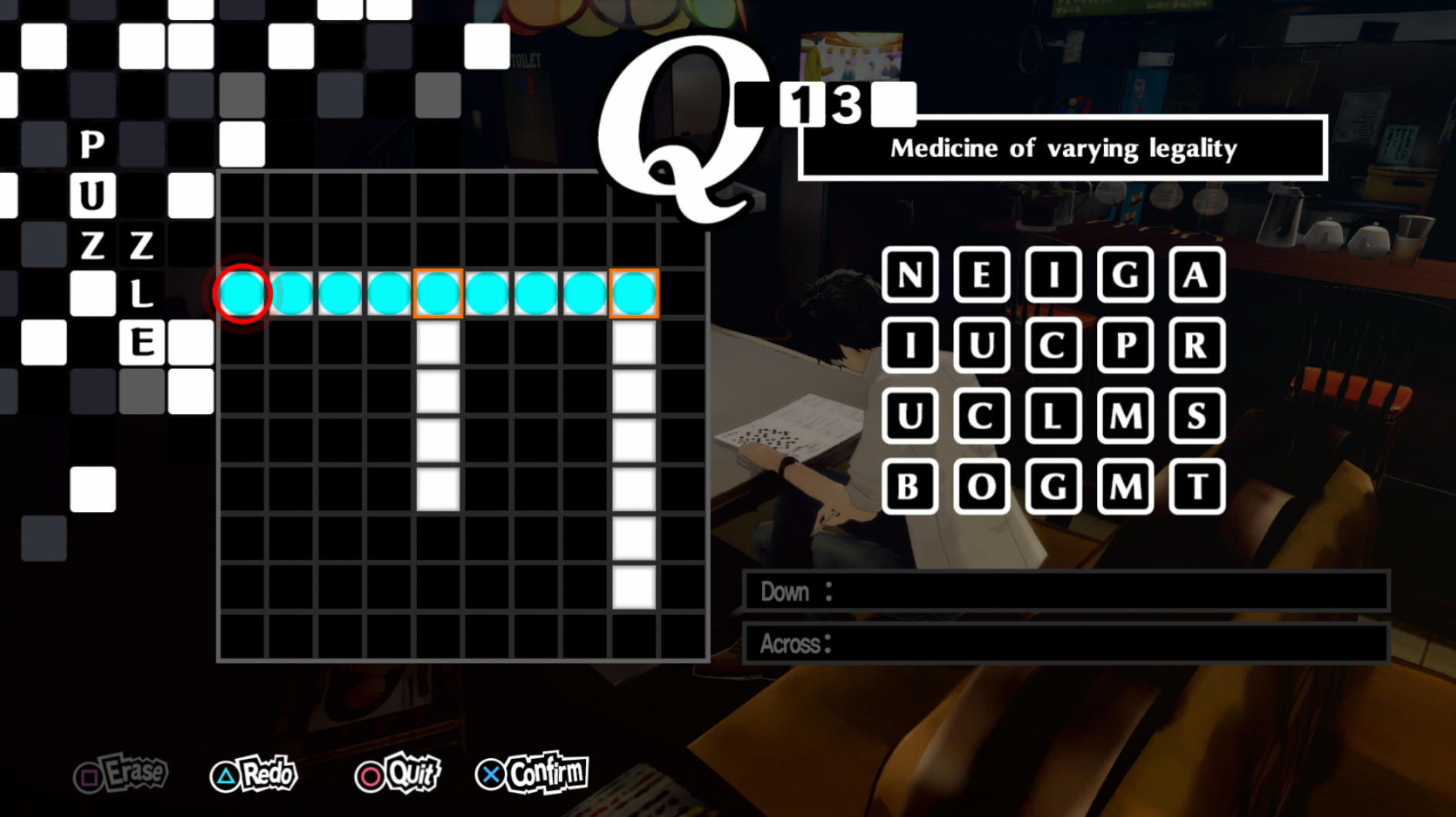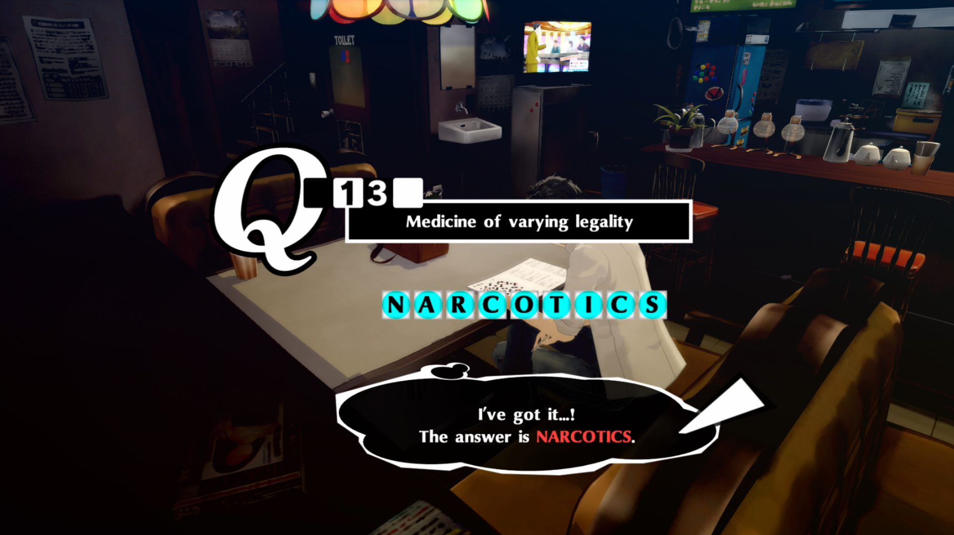 : We have a crossword puzzle tonight, and the answer should absolutely be “marijuana” but Atlus are cowards.