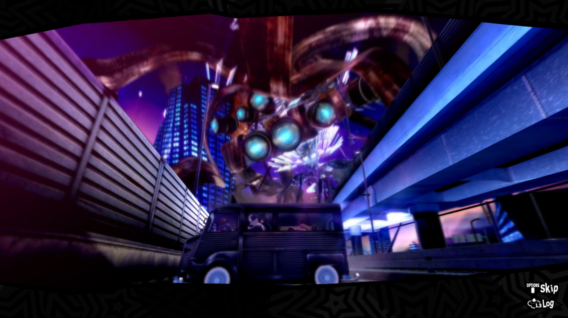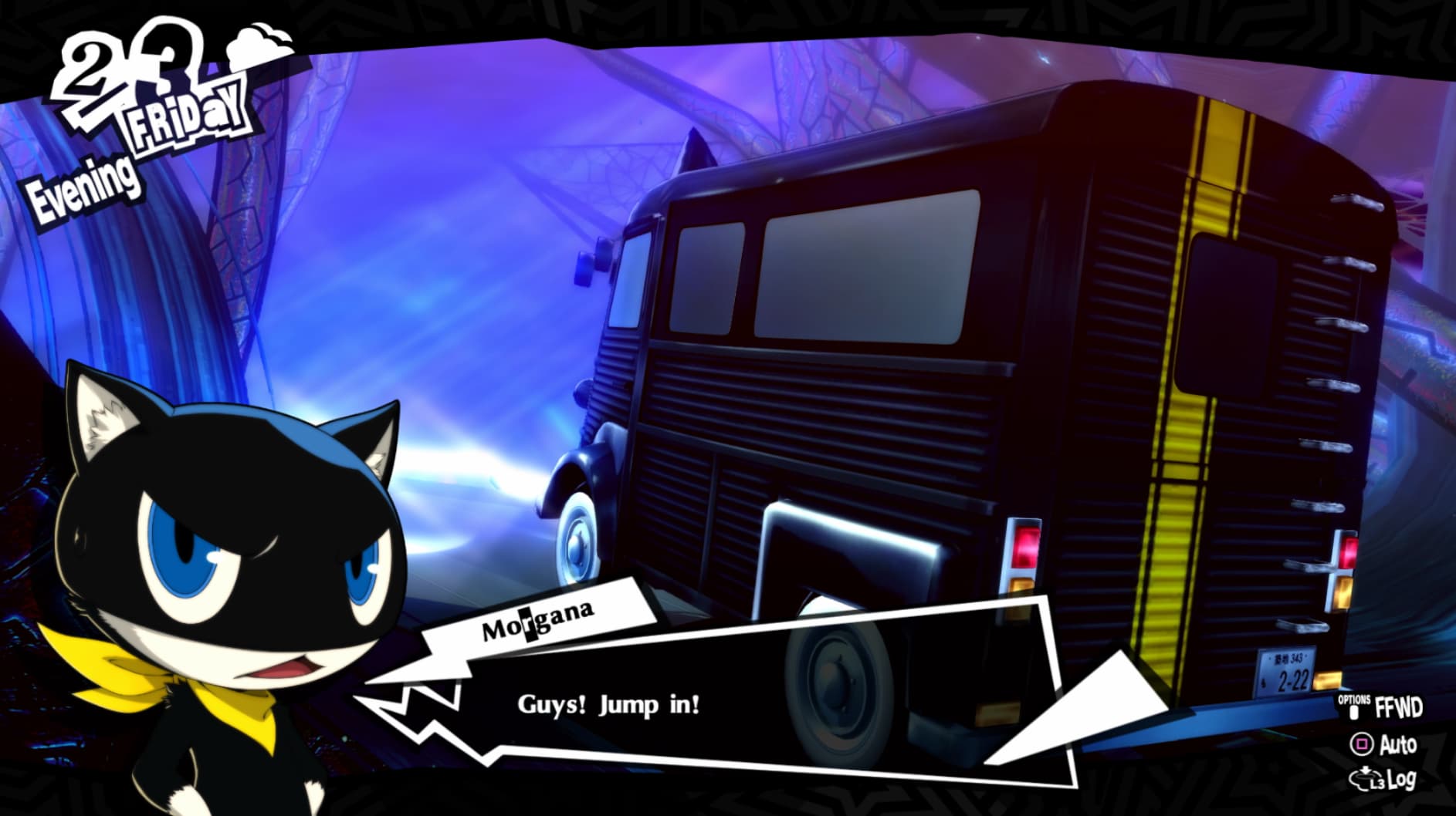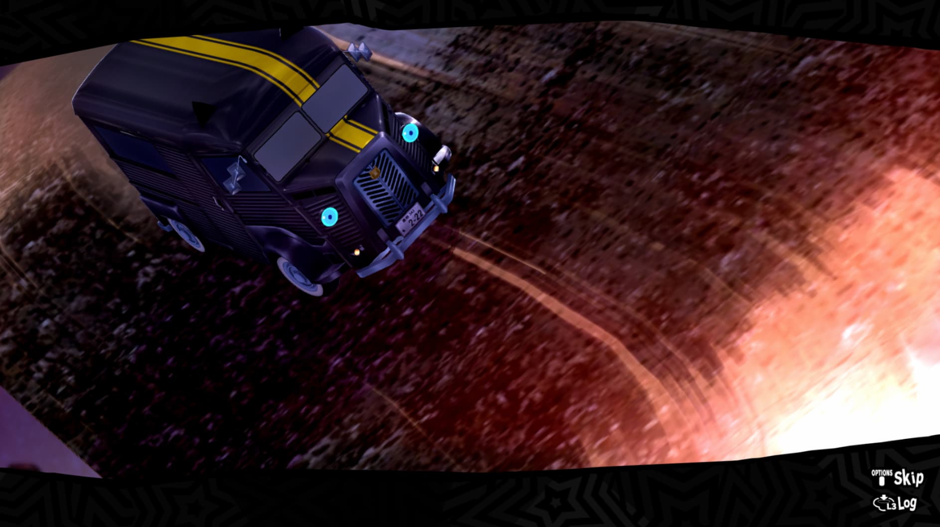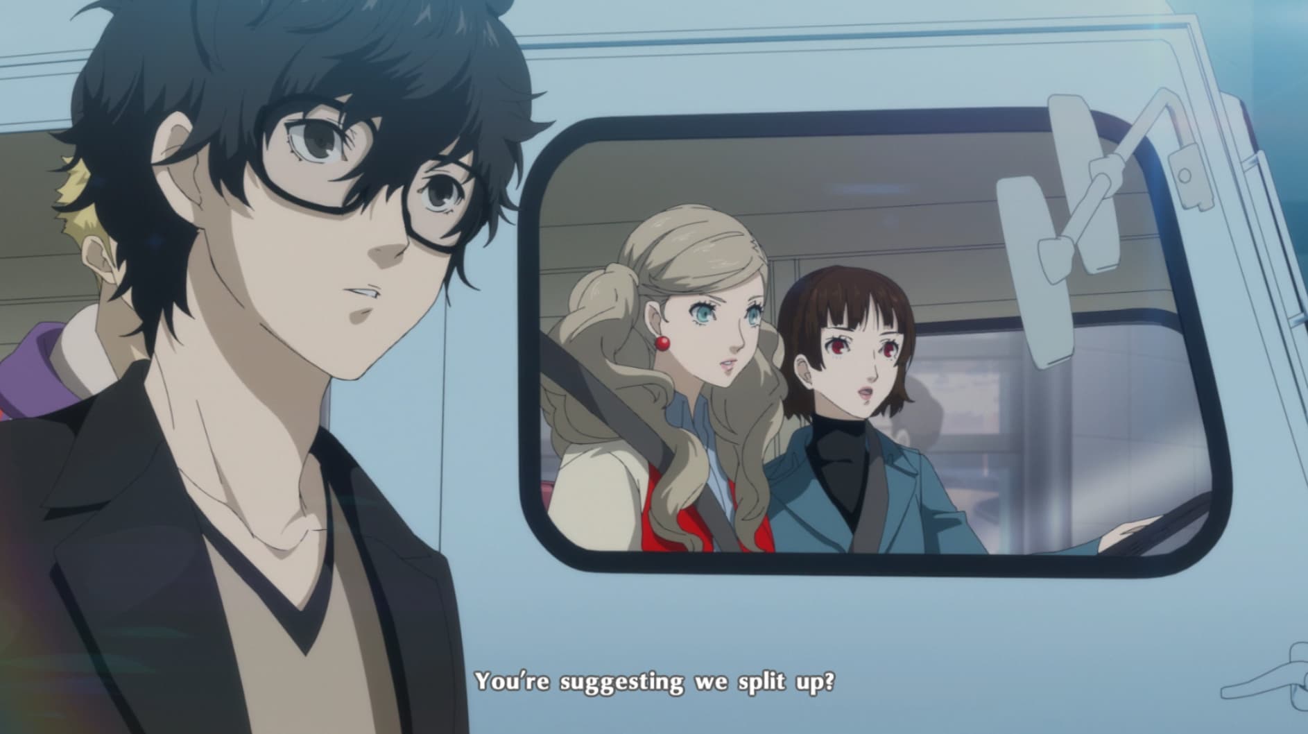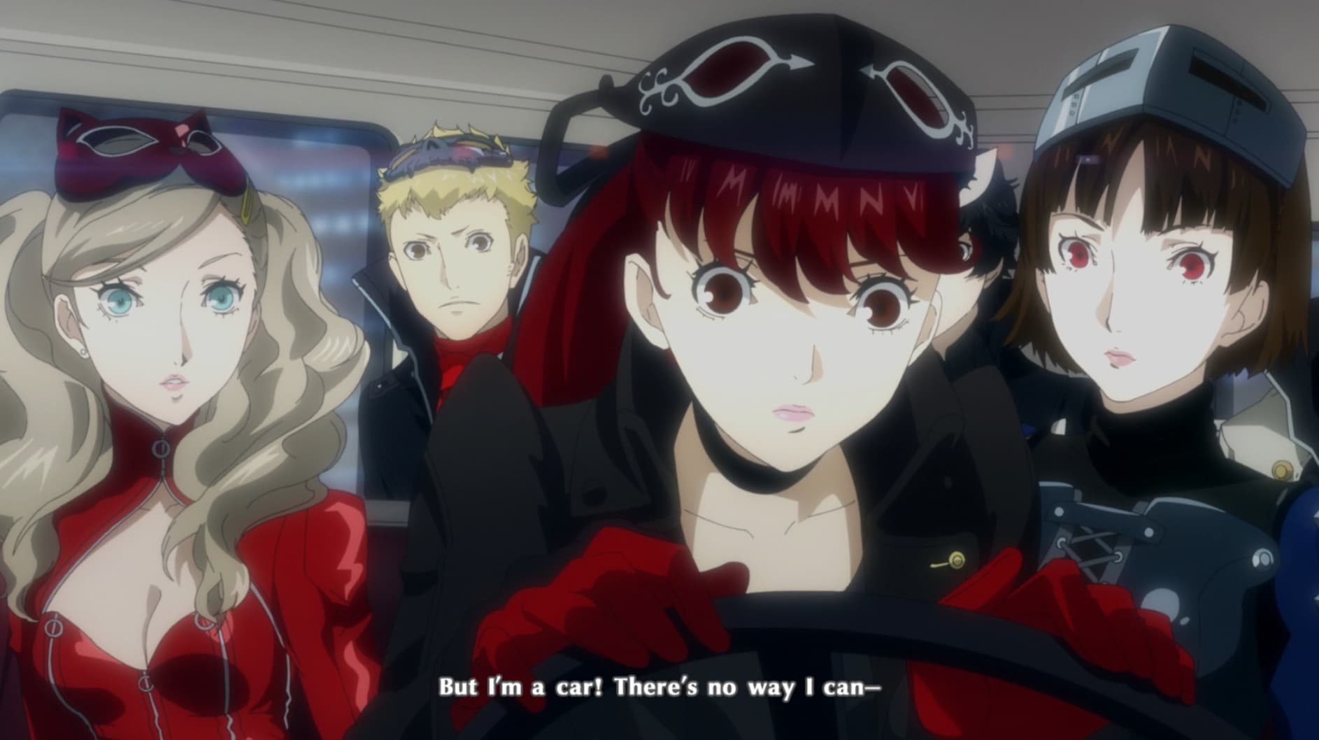: You can see the black suits chasing the van, when they could pretty clearly see Joker get in the taxi. This entire ending is about as coherent as Futaba’s post-Casino bit in the base game.