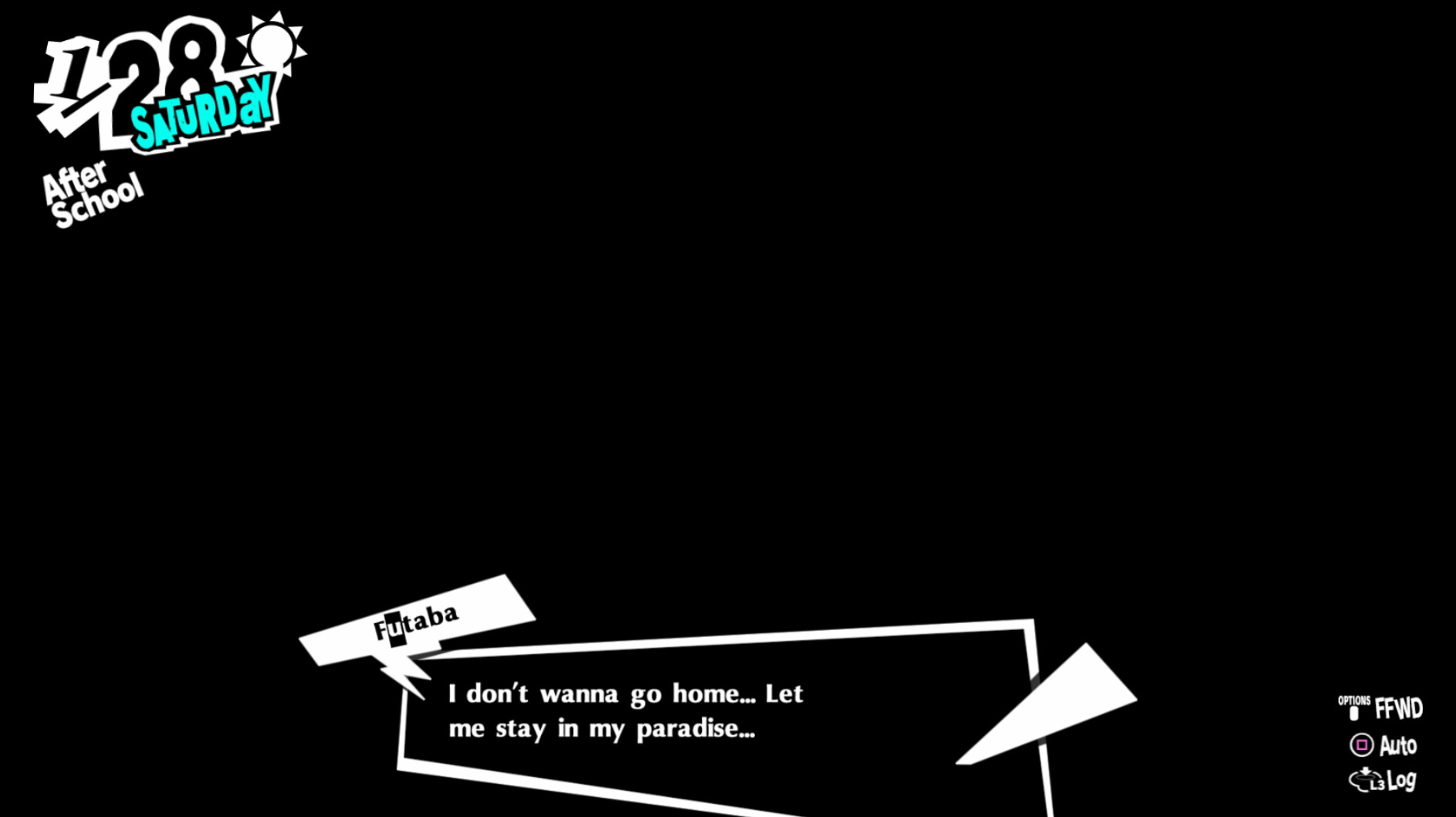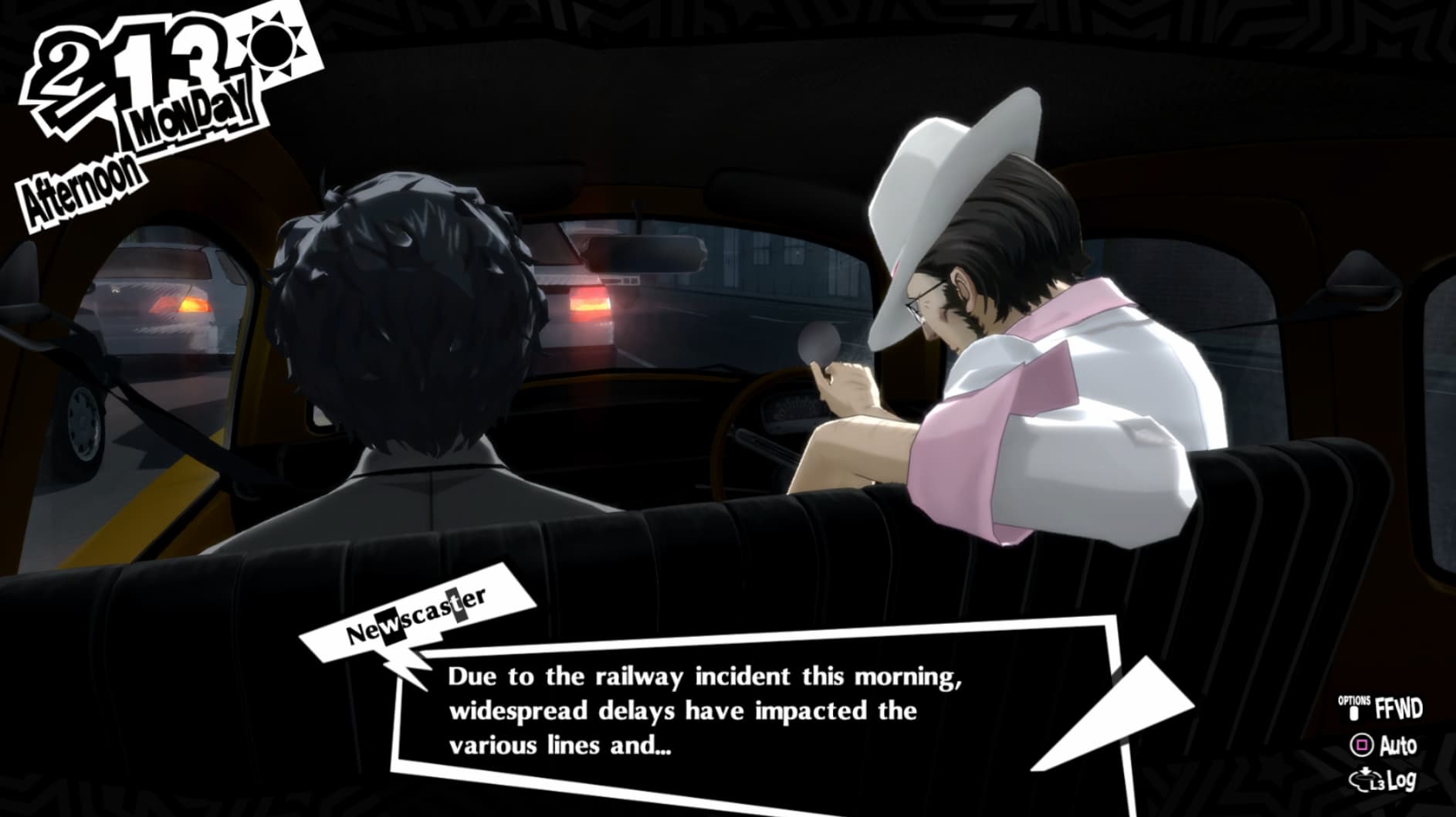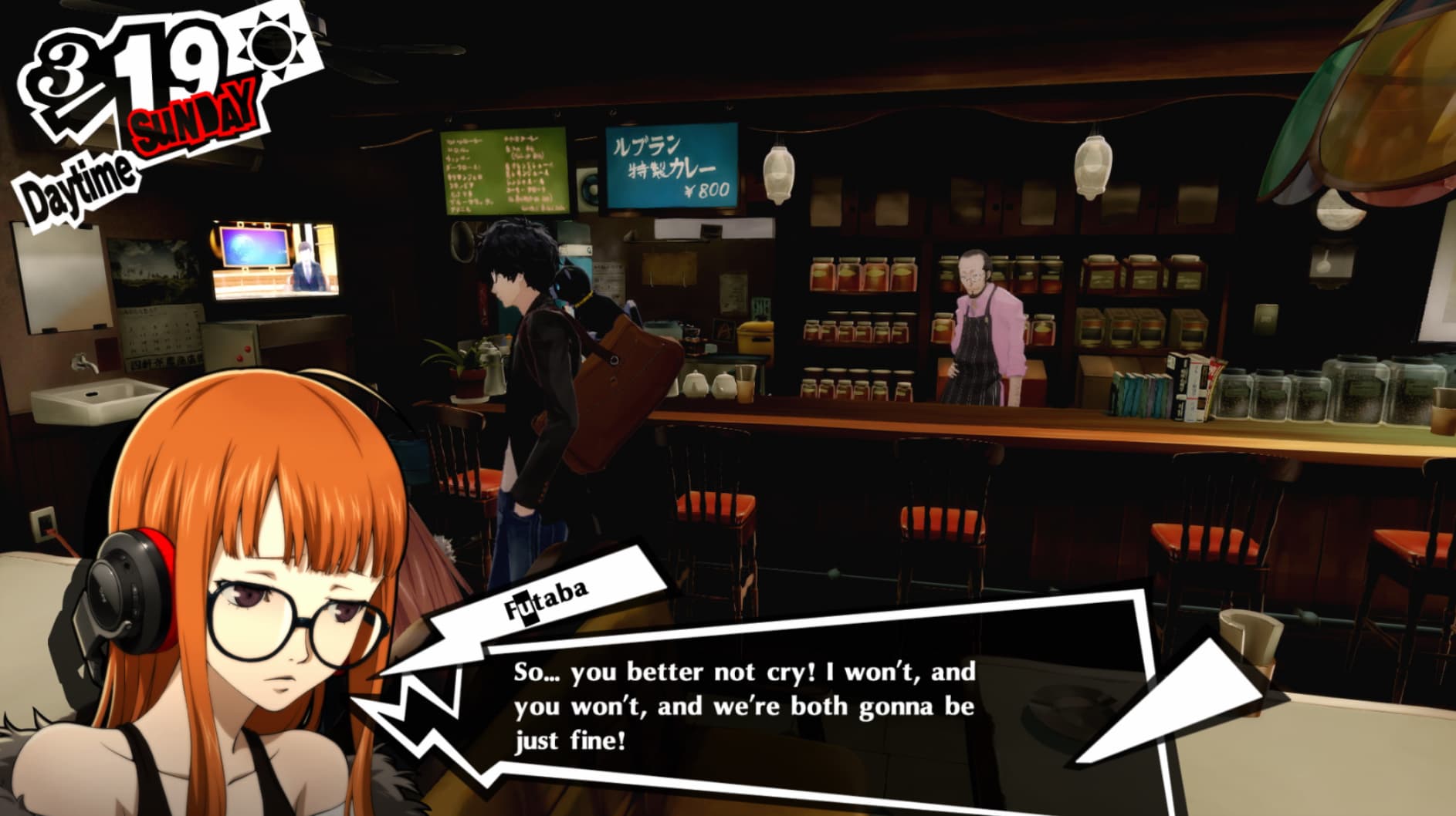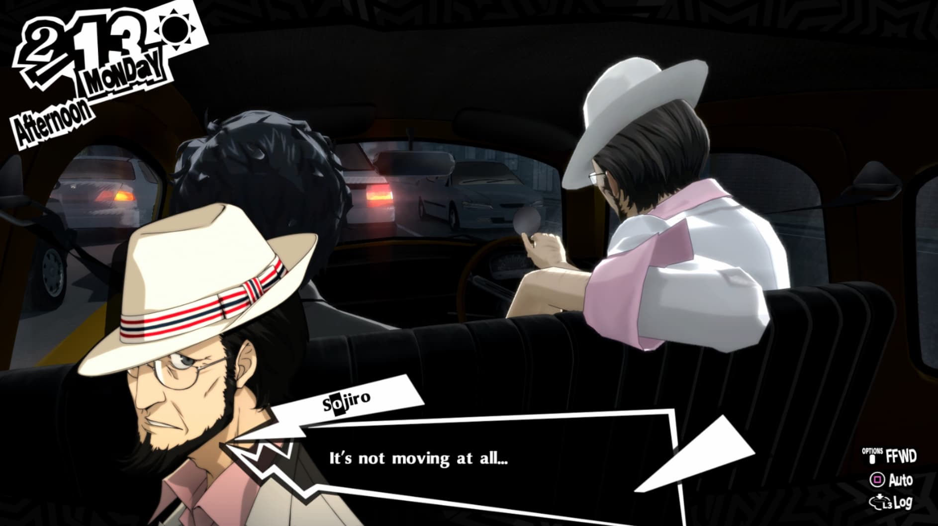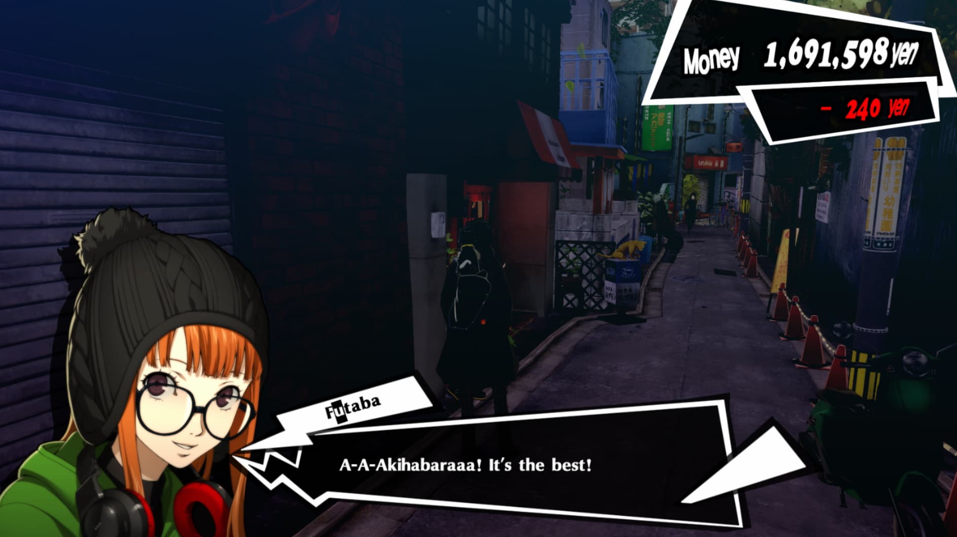 : You can see the black suits chasing the van, when they could pretty clearly see Joker get in the taxi. This entire ending is about as coherent as Futaba’s post-Casino bit in the base game.