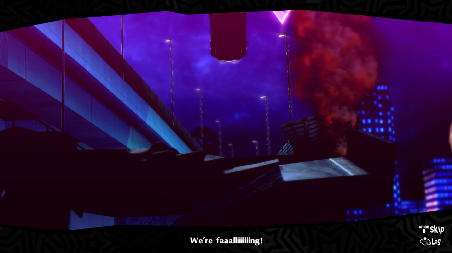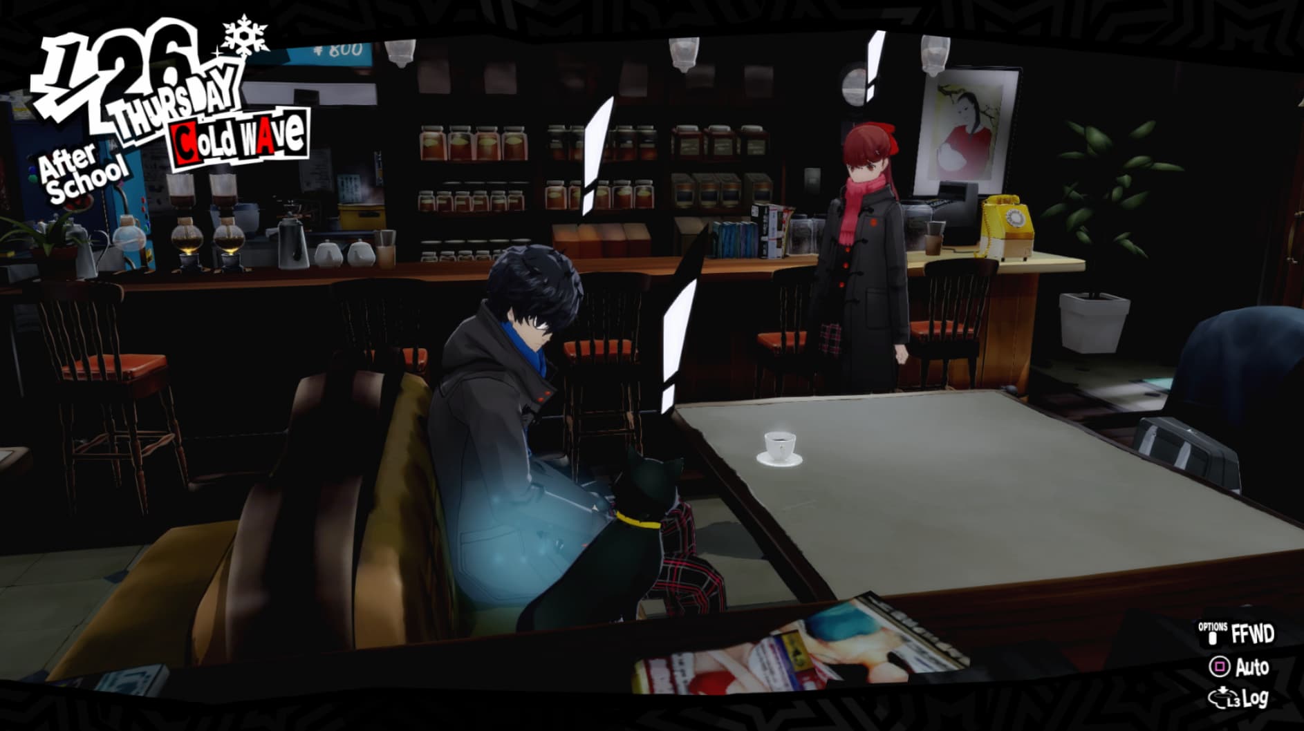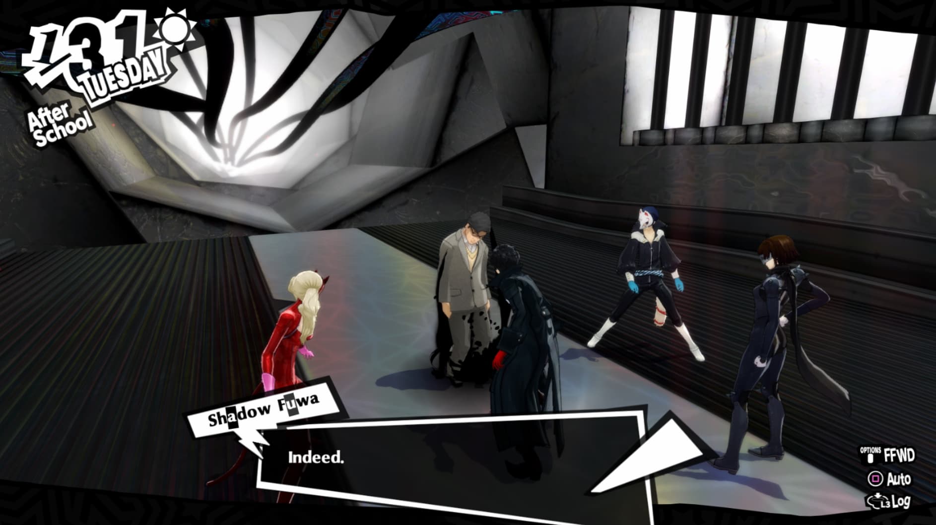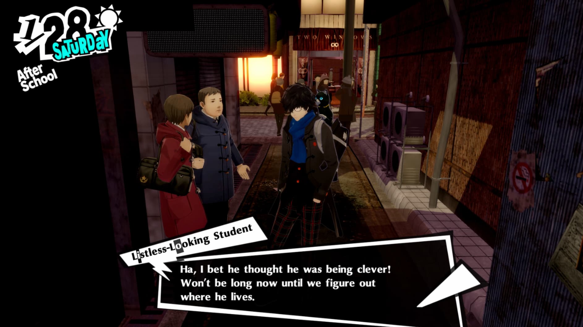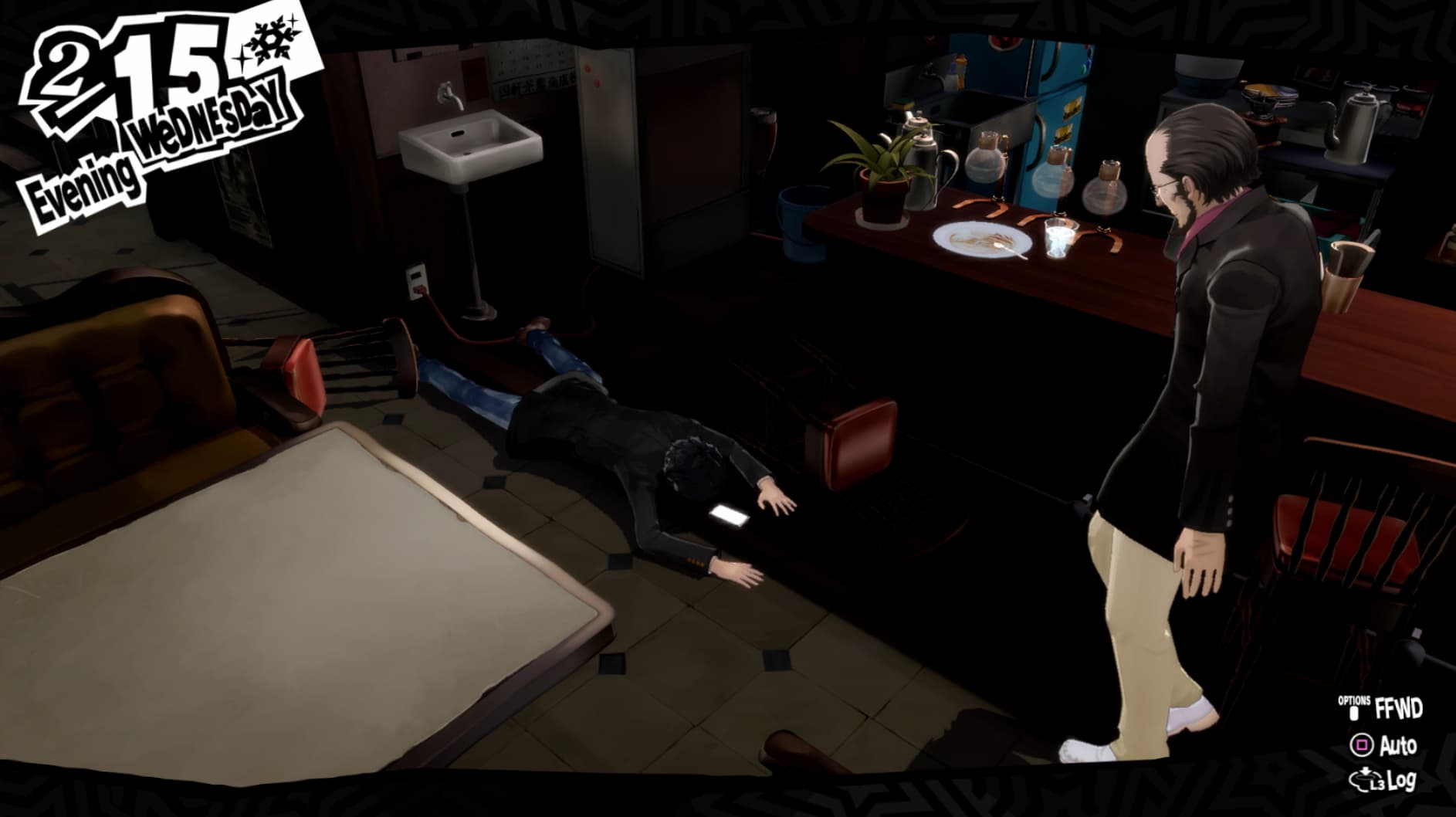 : You can see the black suits chasing the van, when they could pretty clearly see Joker get in the taxi. This entire ending is about as coherent as Futaba’s post-Casino bit in the base game.