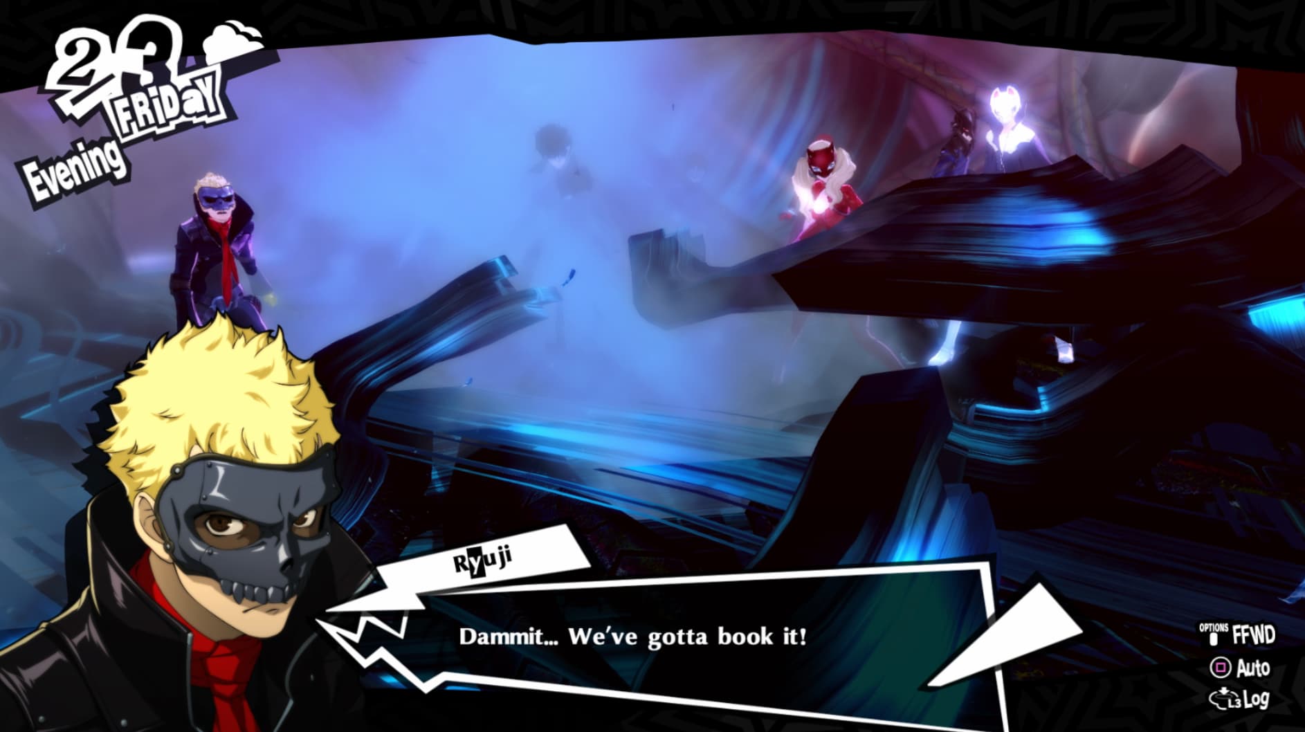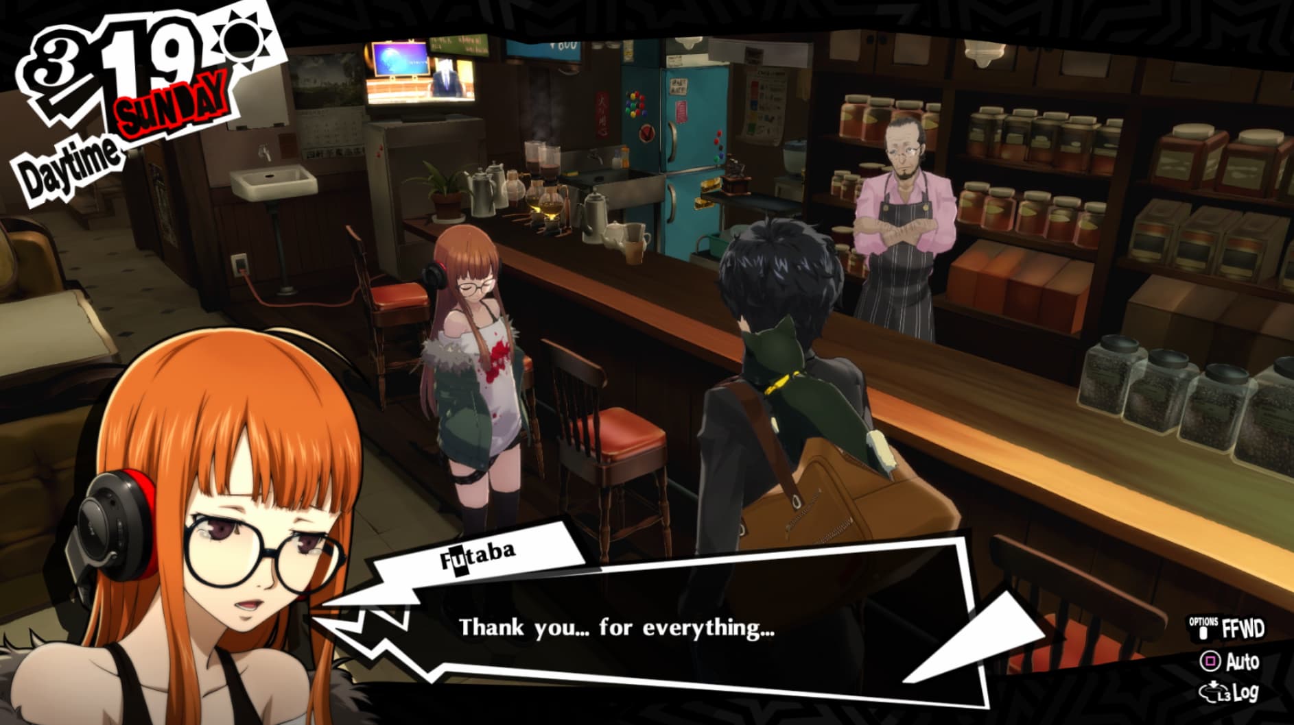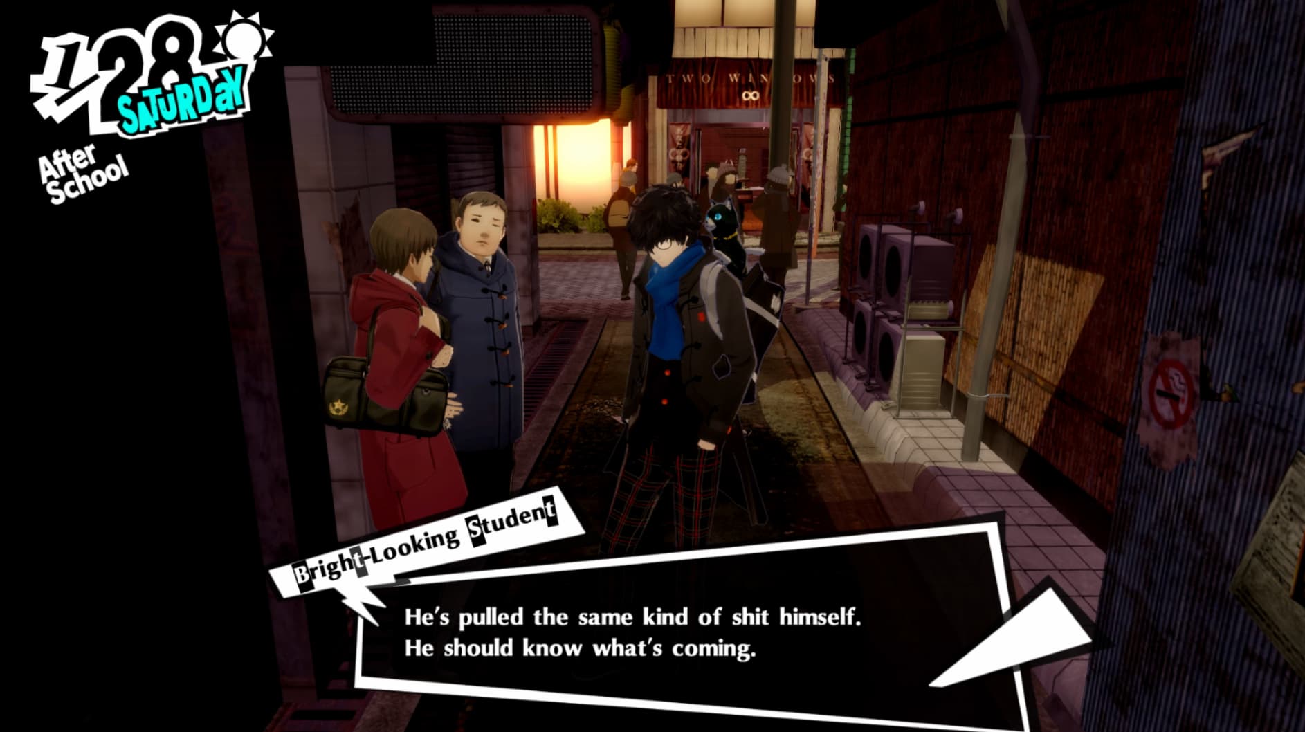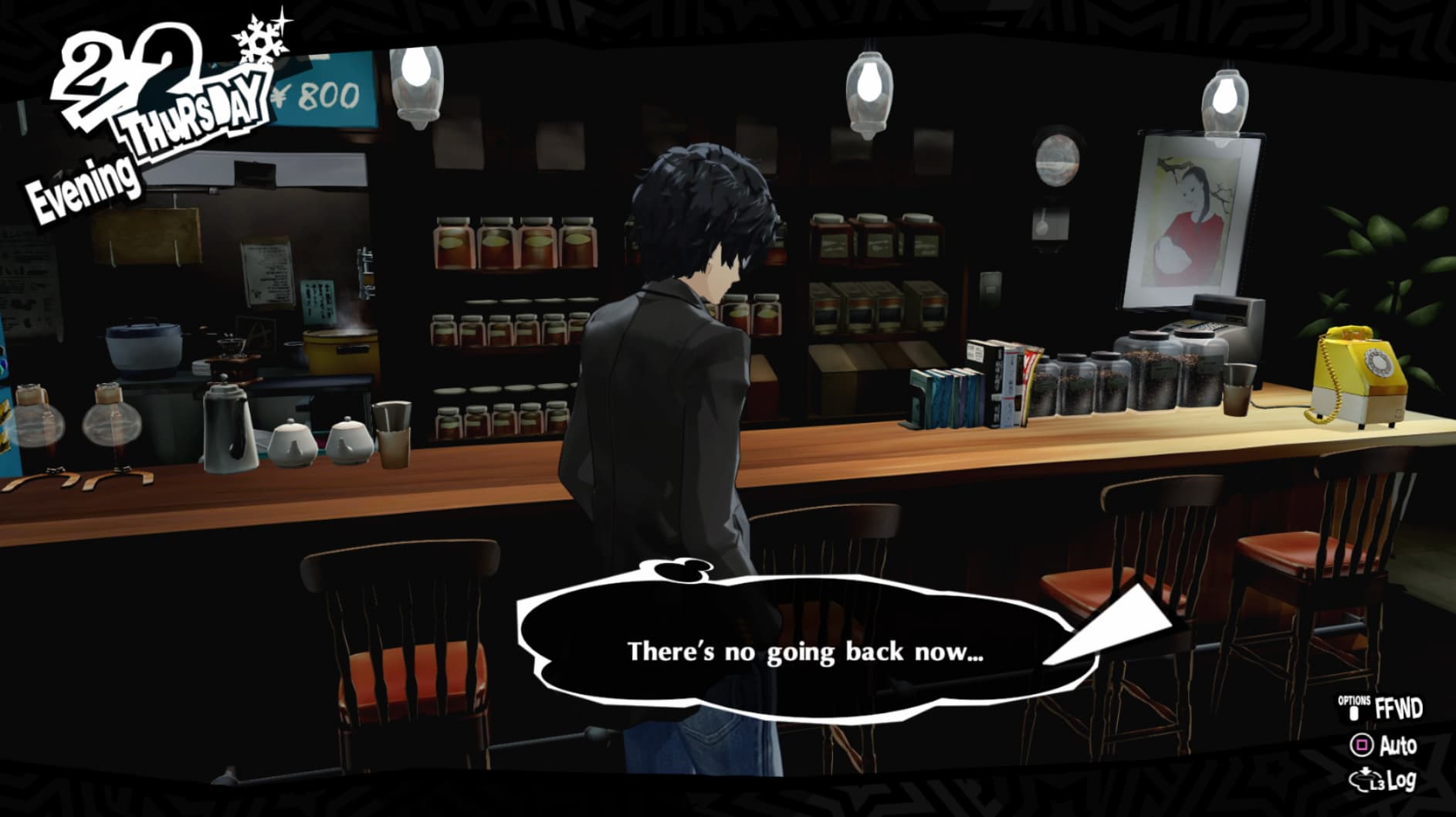 : You can see the black suits chasing the van, when they could pretty clearly see Joker get in the taxi. This entire ending is about as coherent as Futaba’s post-Casino bit in the base game.