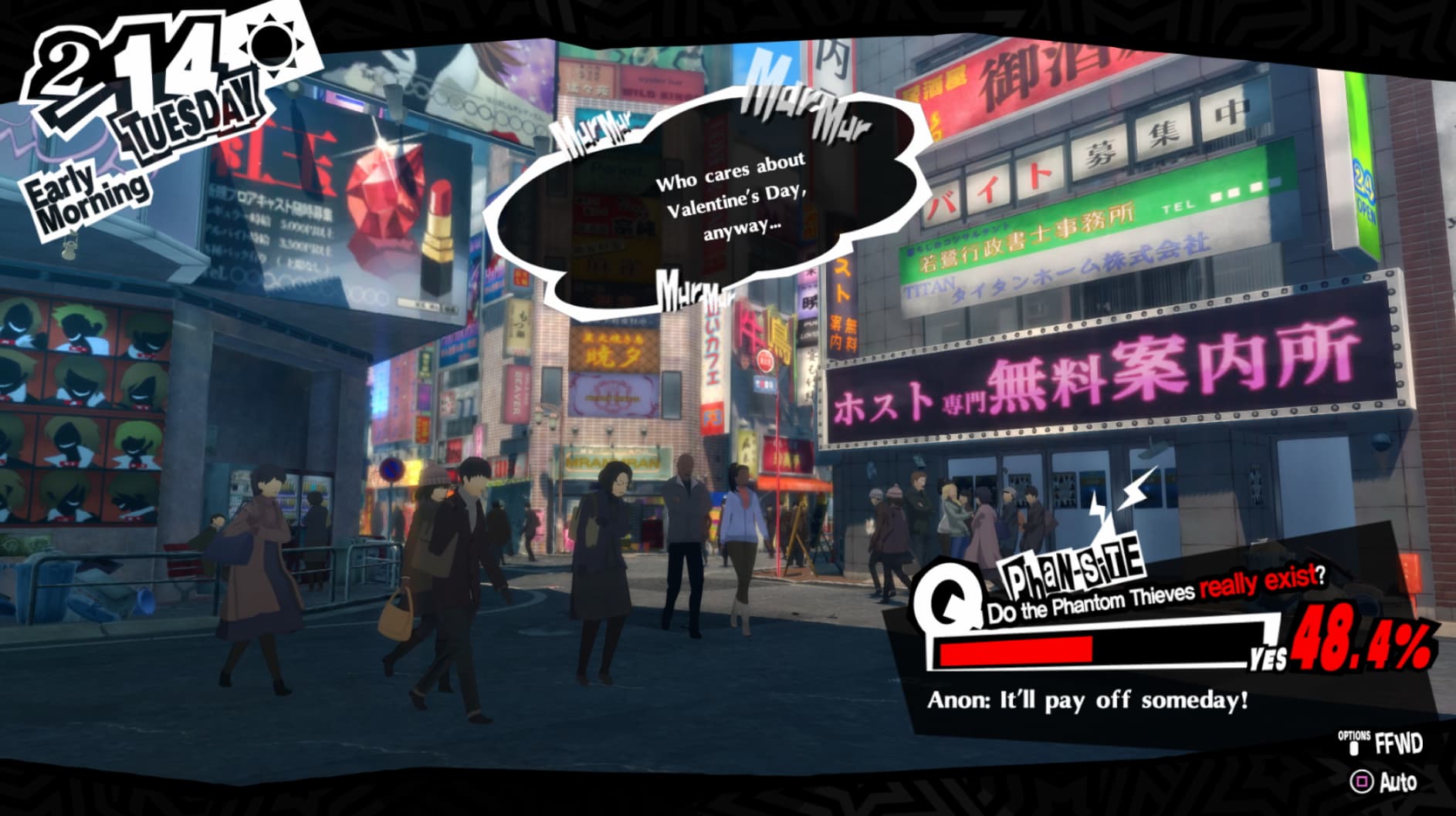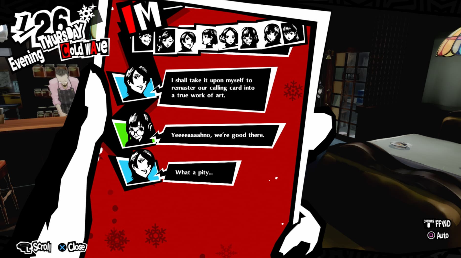 : I have no idea who the fuck Daiki Ito is. The wiki doesn’t mention him as having worked on any other games - just P5 Royal. The other writer is Shinji Yamamoto, whose only other credit is SMT IV.