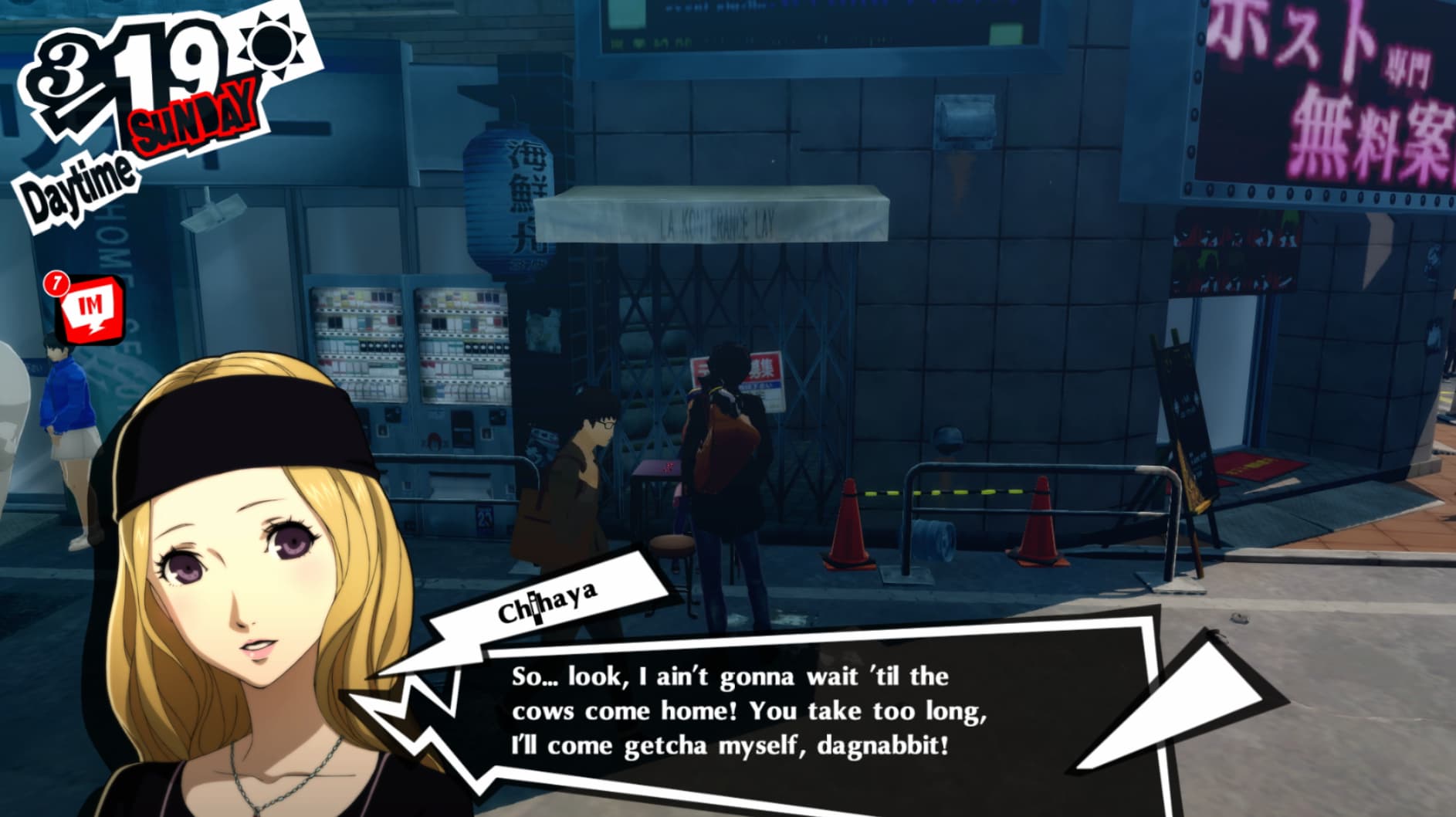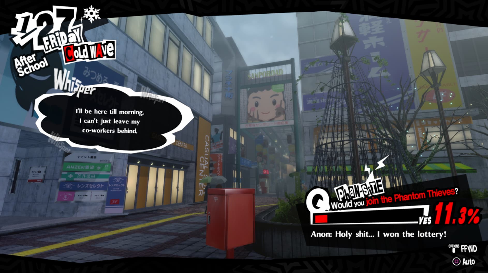 : This reminds me of Persona 4 a little and makes me remember how much better Persona 4 was. “Your friends are waiting for you, do you REALLY want to go back to Junes?”
