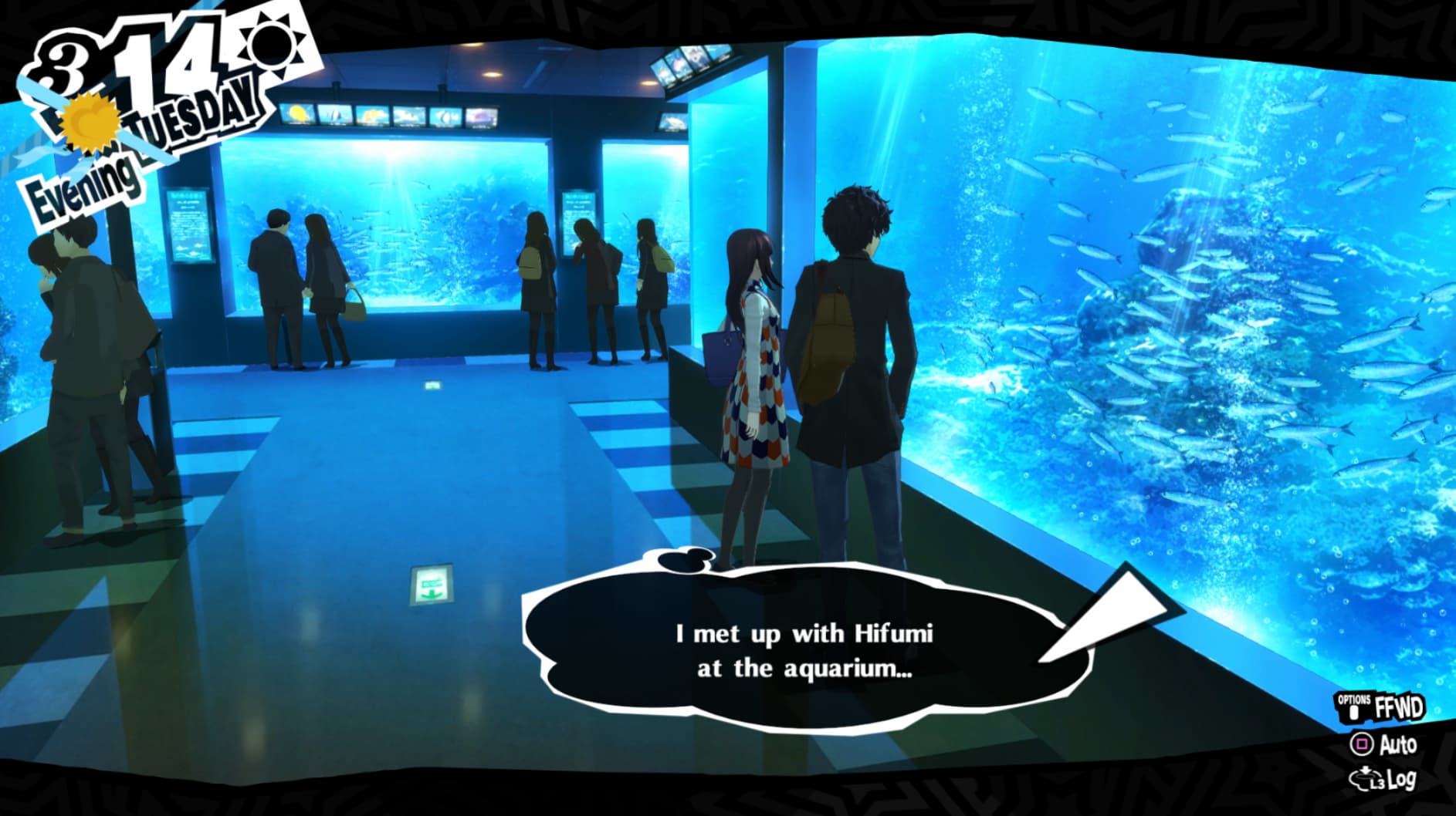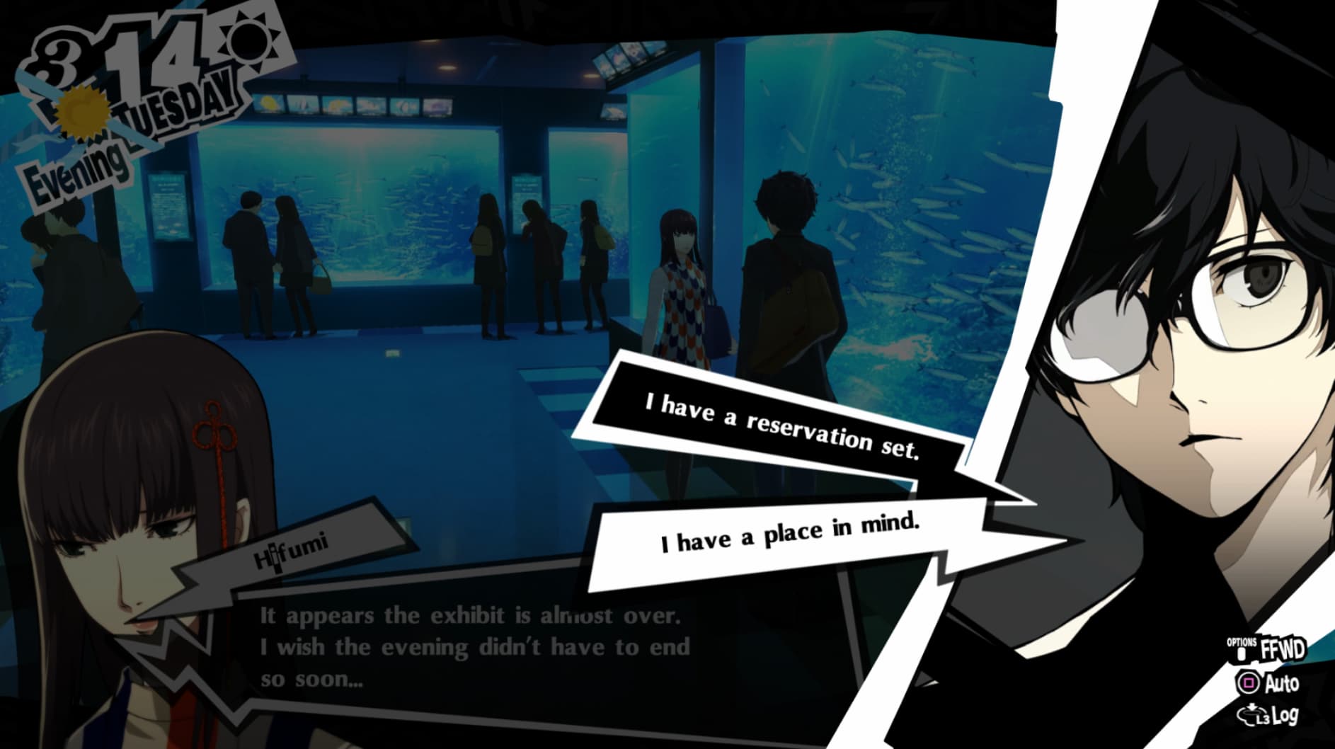 : “Next, think about where you’re taking her. You’re gonna want somewhere with the right atmosphere, but it’s gotta be peaceful… oh, how about that new aquarium exhibit in Shinagawa? Just saw a commercial for it. Might be a good spot, right?”
