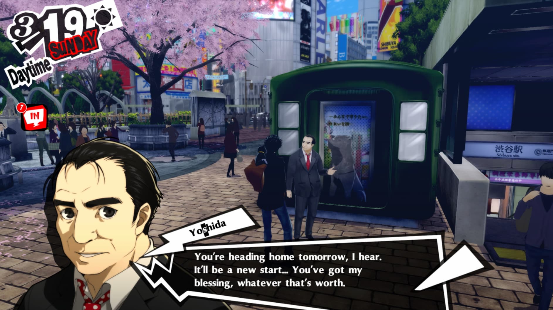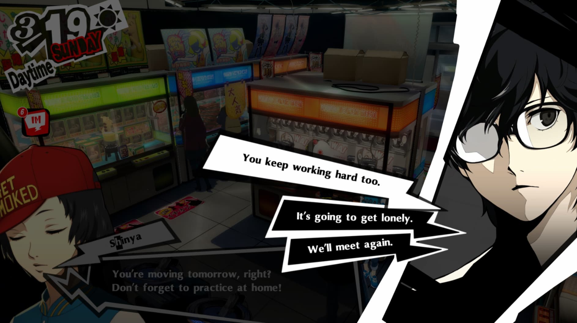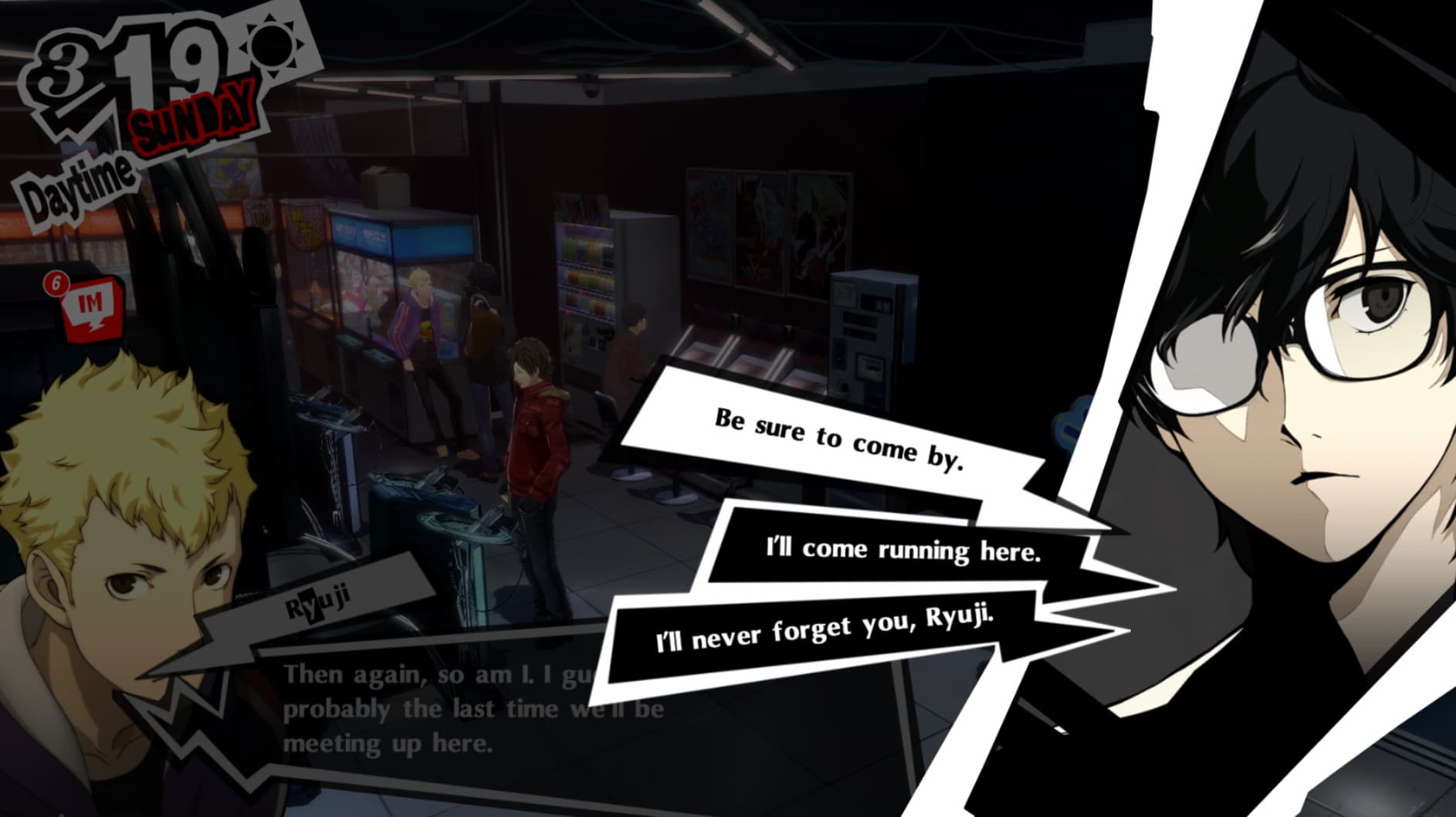 : This scene wasn’t in the base game, and most likely isn’t canon because Ryuji is still in Tokyo as of Persona 5 Strikers, which takes place in the summer of 2017.