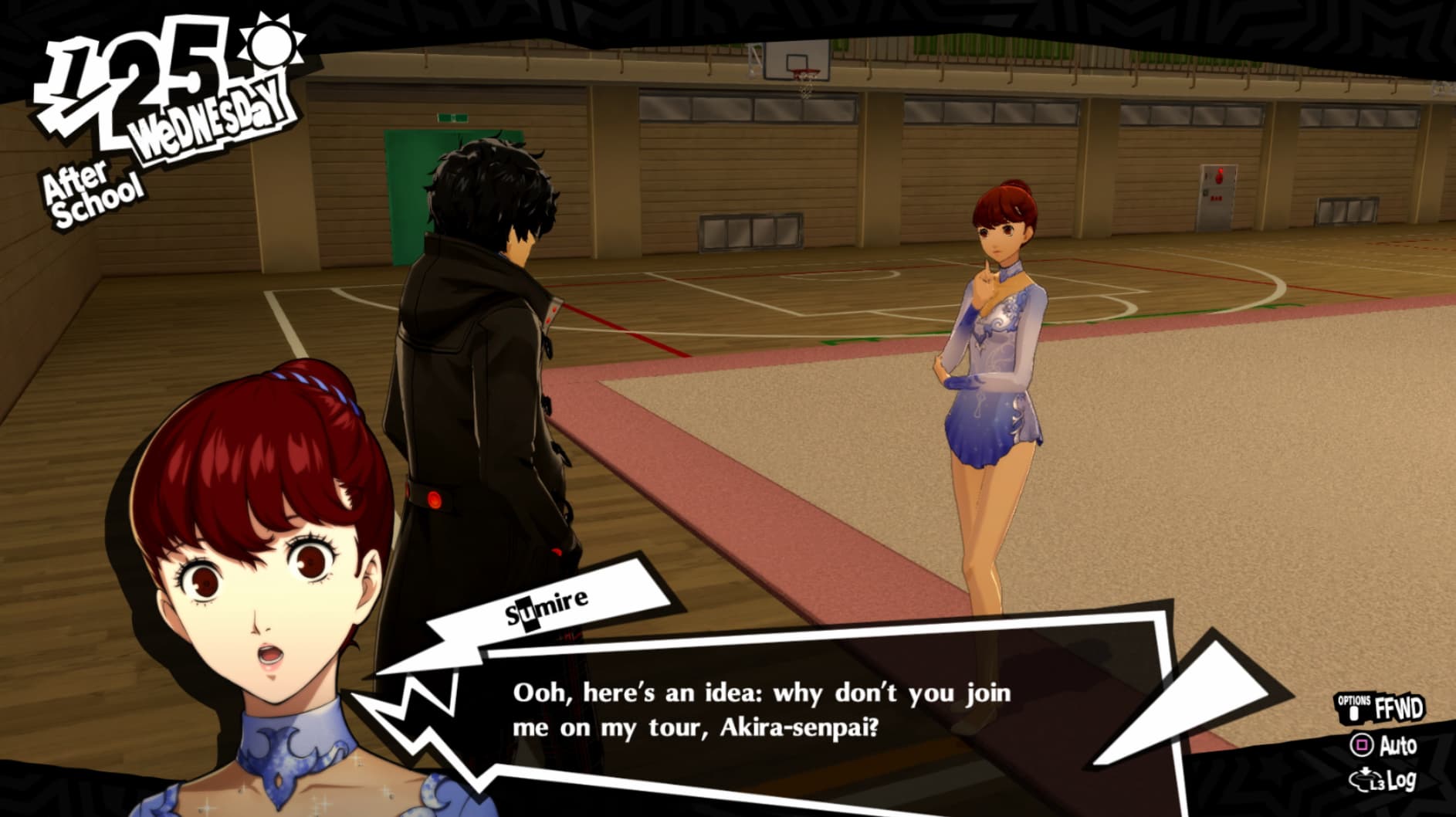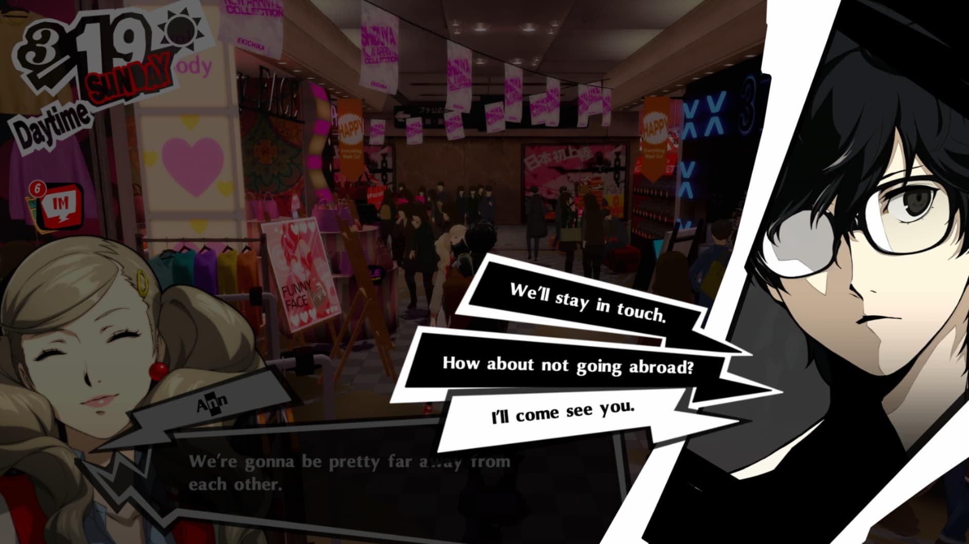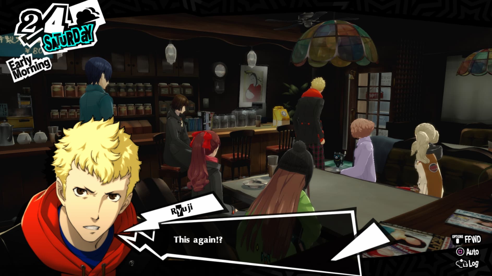 : This scene wasn’t in the base game, and most likely isn’t canon because Ryuji is still in Tokyo as of Persona 5 Strikers, which takes place in the summer of 2017.