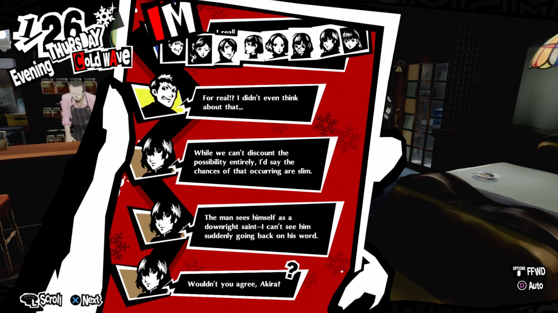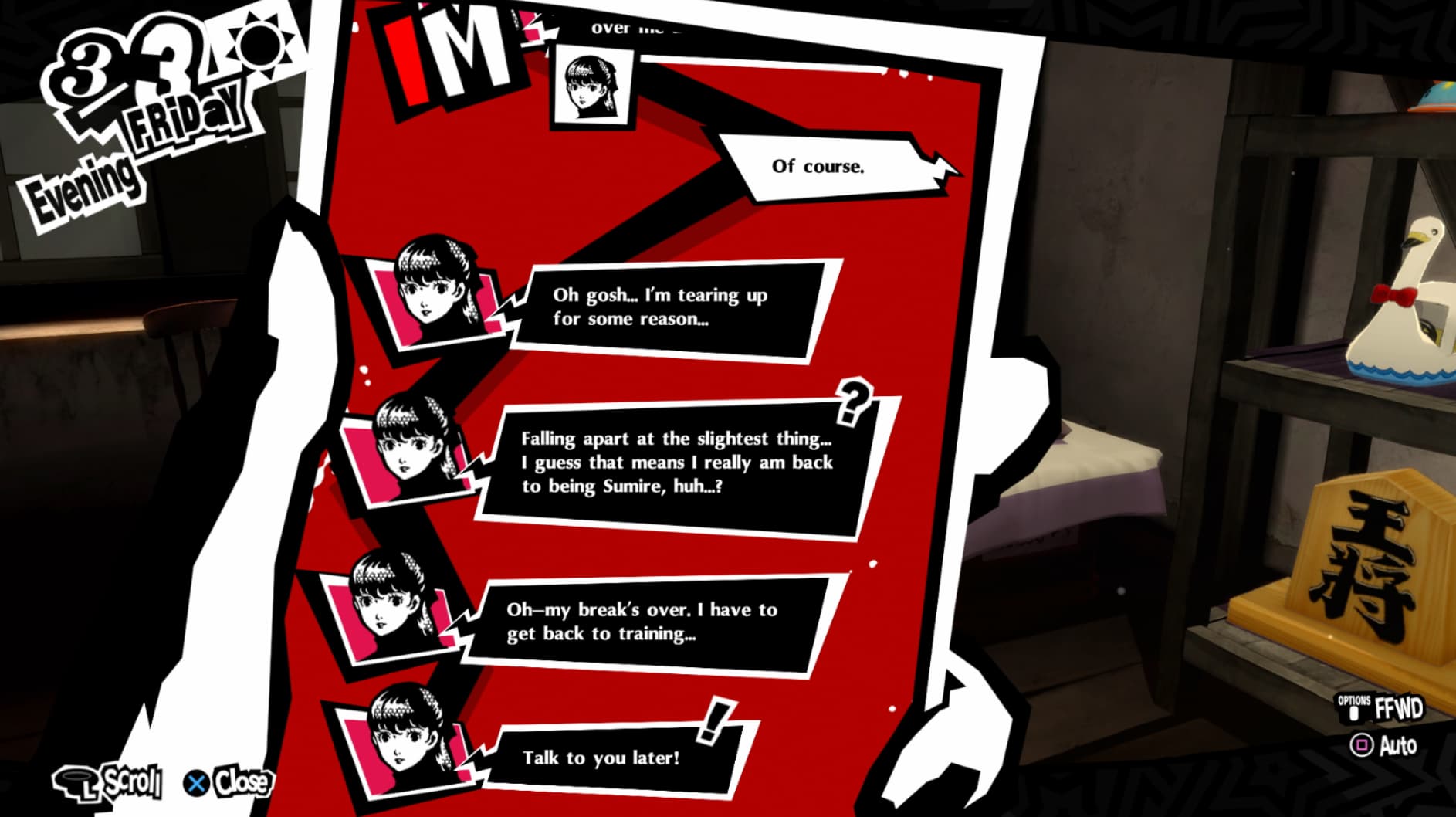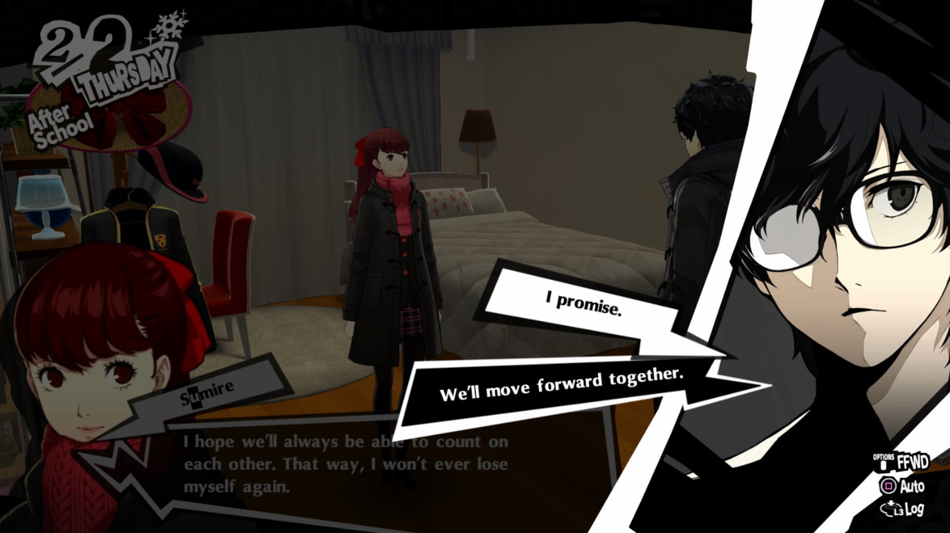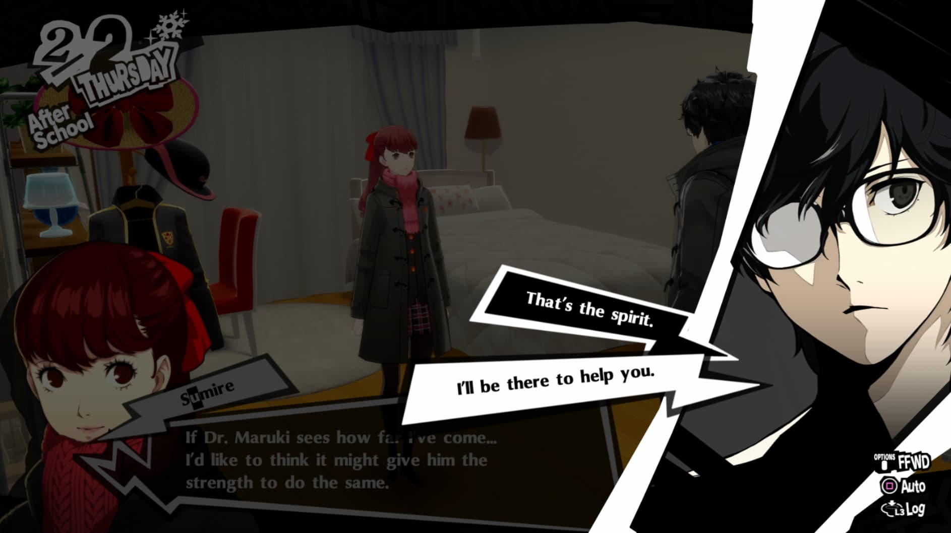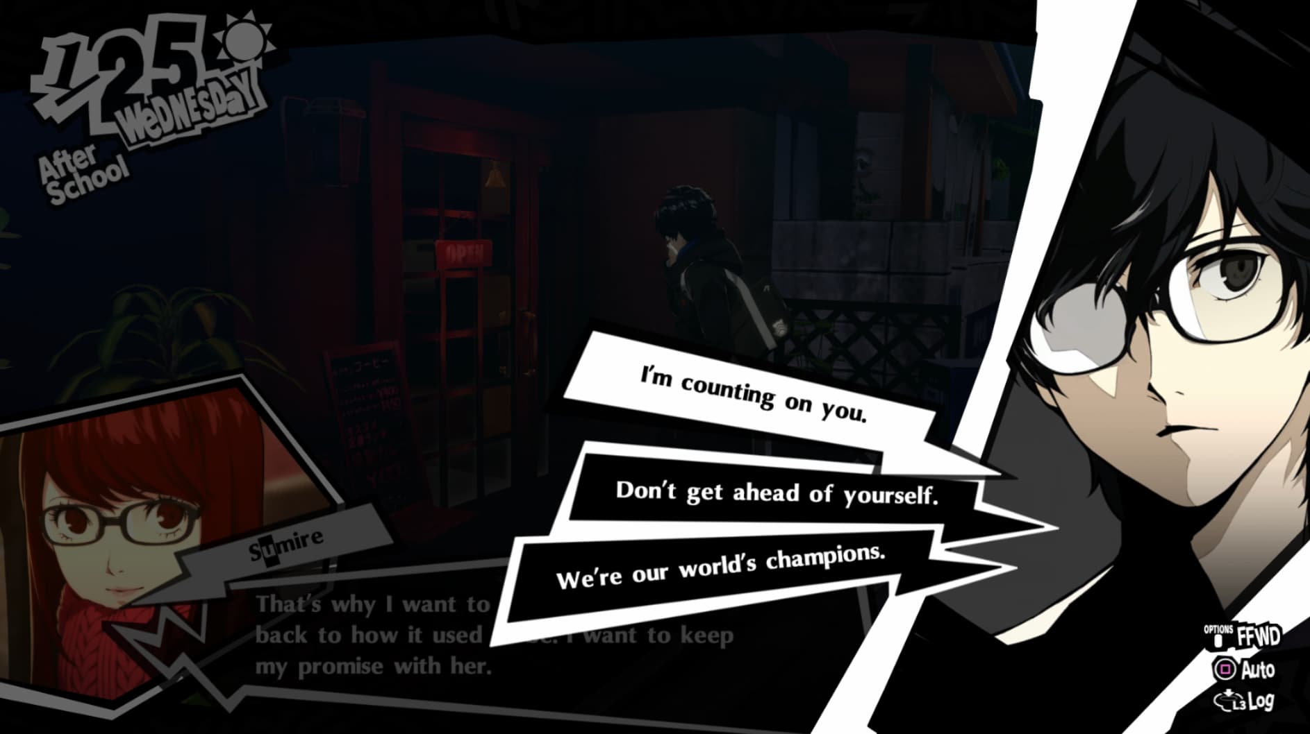 : “Indeed. While her viewpoint may differ from the Phantom Thieves’ beliefs, there’s still much we can learn from her.”