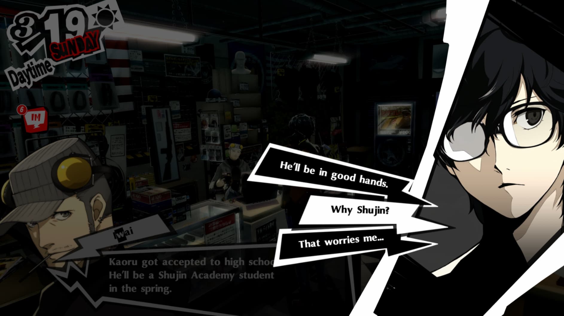 : “Kaoru got accepted to high school. He’ll be a Shujin Academy student in the spring.”