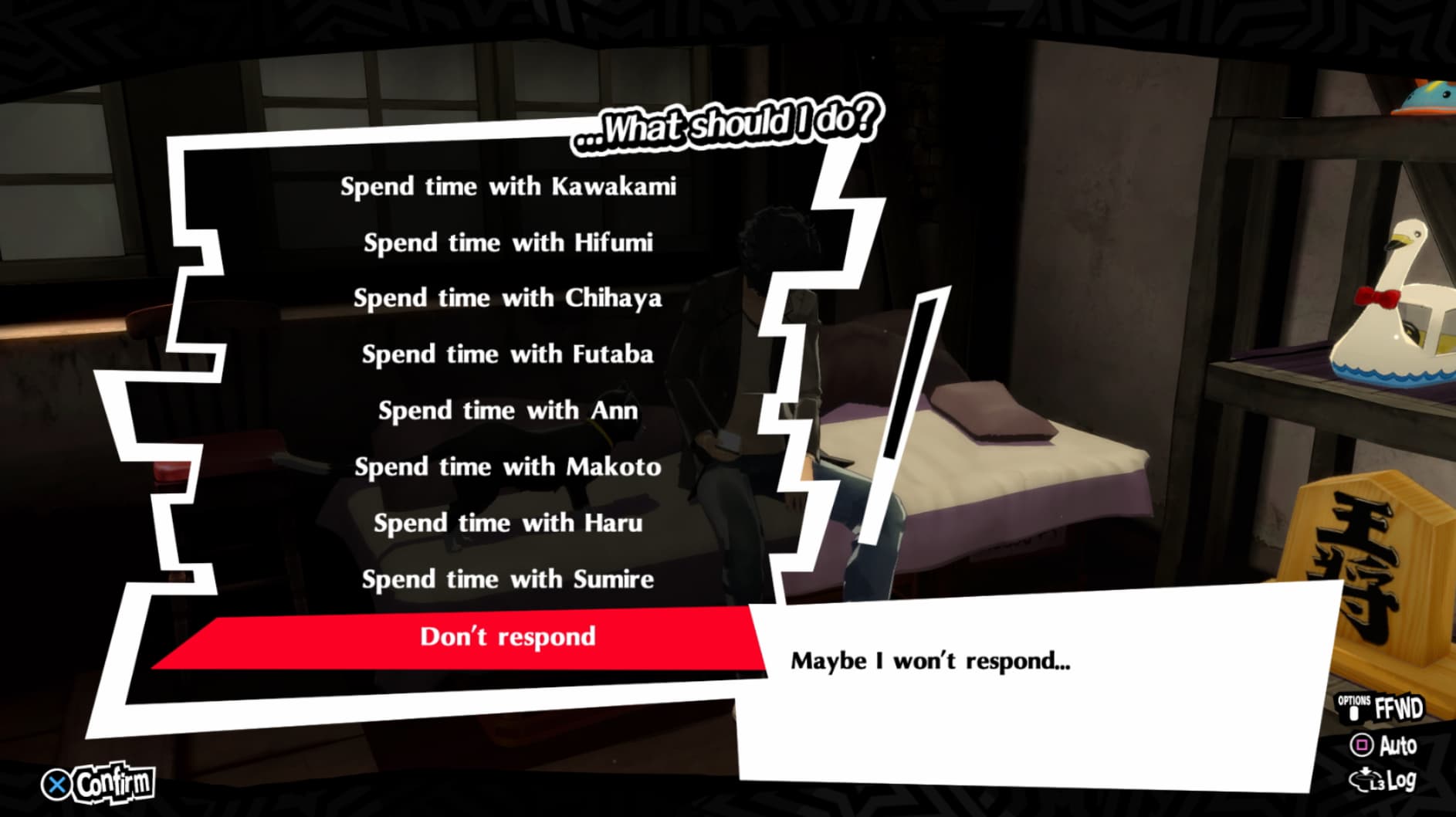 : I didn’t notice this when I recorded, but Kaoru is standing right behind Joker, which makes this entire conversation SUPER awkward.