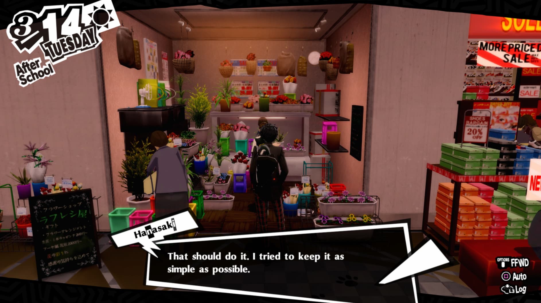 : I accidentally missed a line from the flower shop owner, but you can see it in the background so it’s not a huge deal.