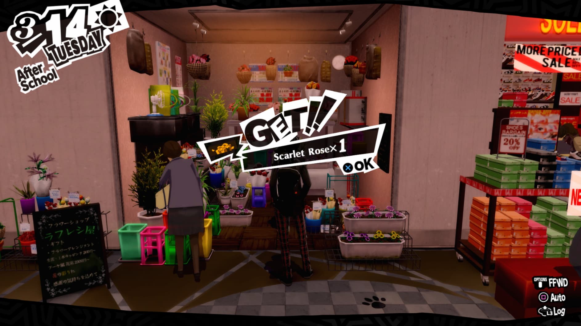 : If this was the next game I’m considering LPing, Sojiro would go on to say that the flowers have a 0.01% drop rate from a specific enemy in a dungeon you have to pay to enter.