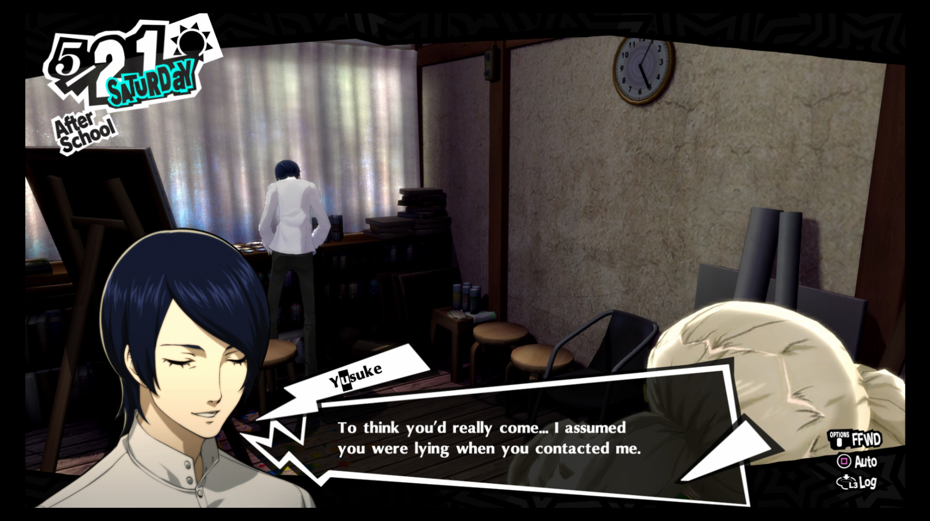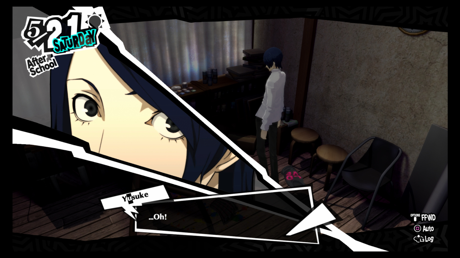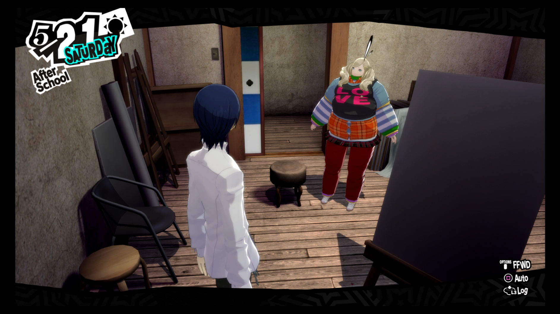 There’s something implicitly gross about forcing the girl who has had to deal with sexual abuse to pose nude. Something about it just feels inherently kinda gross. If I had to rewrite it and keep this arbitrary time limit, I’d have it be Joker who is the nude subject (because it’ll set up for some nice drama in their Support and also help with the implying of our artist friend being gay).
