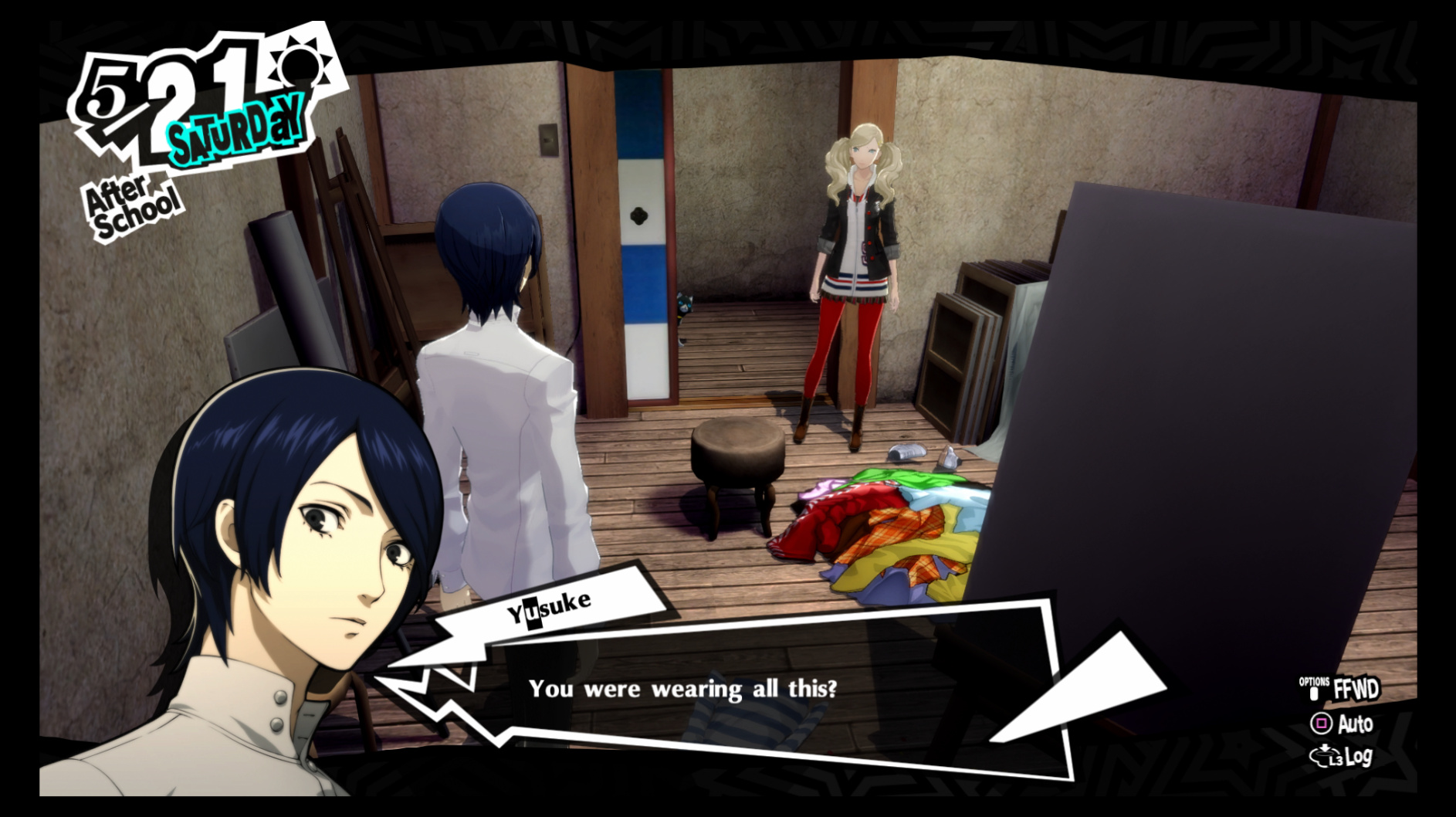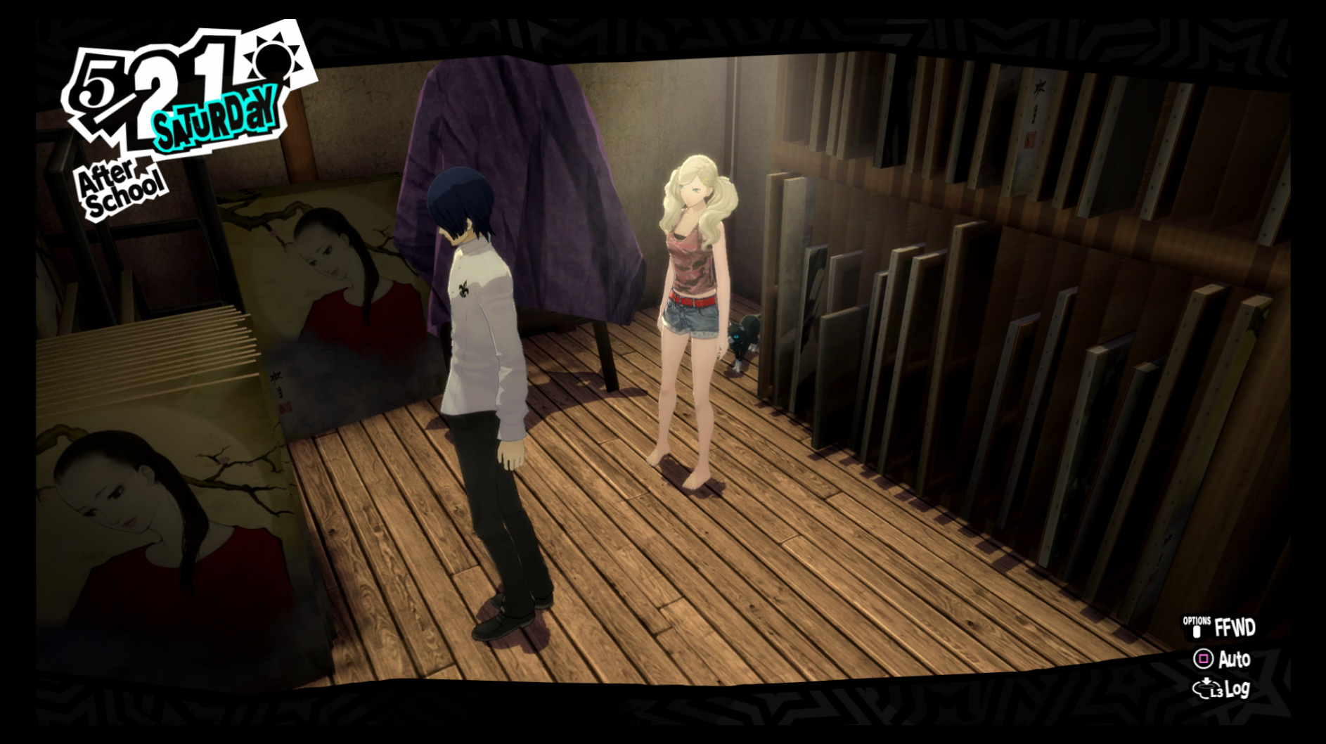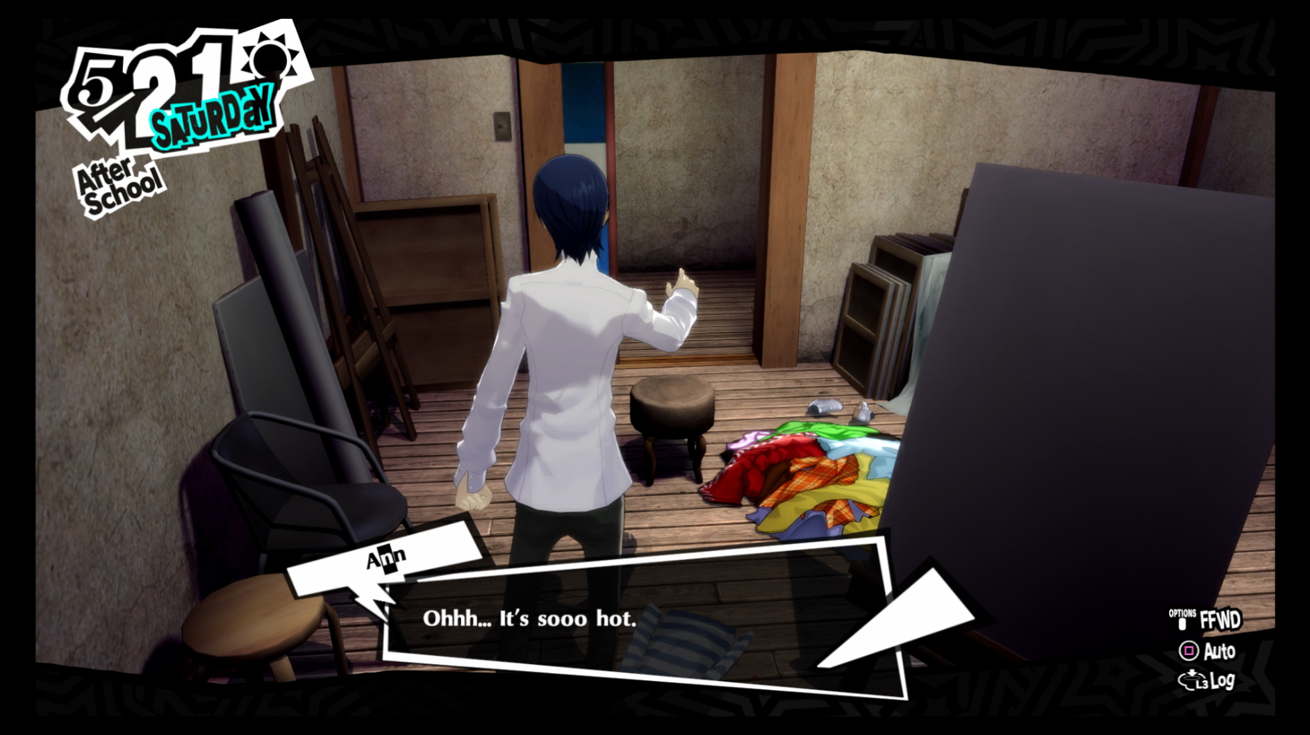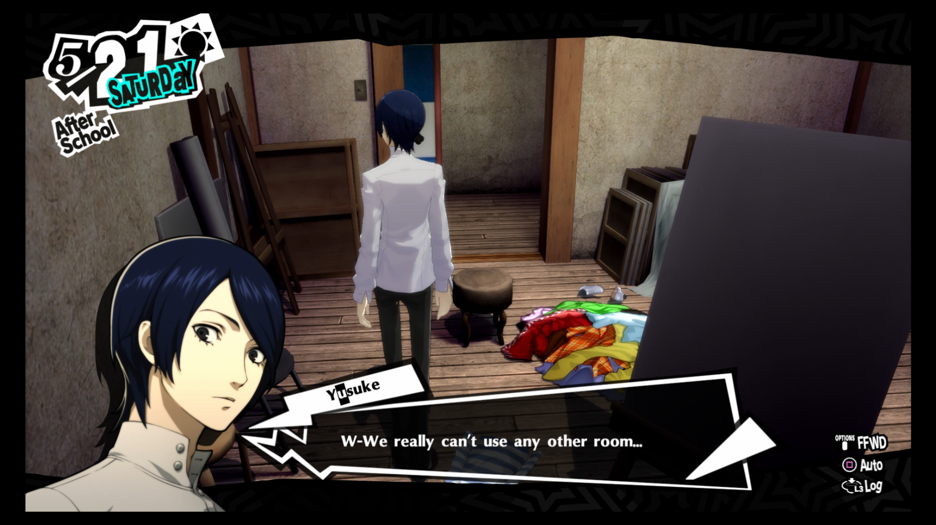 There’s something implicitly gross about forcing the girl who has had to deal with sexual abuse to pose nude. Something about it just feels inherently kinda gross. If I had to rewrite it and keep this arbitrary time limit, I’d have it be Joker who is the nude subject (because it’ll set up for some nice drama in their Support and also help with the implying of our artist friend being gay).