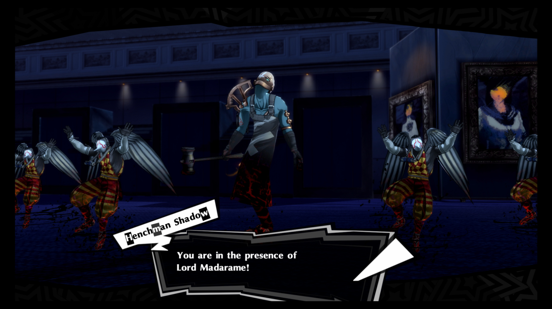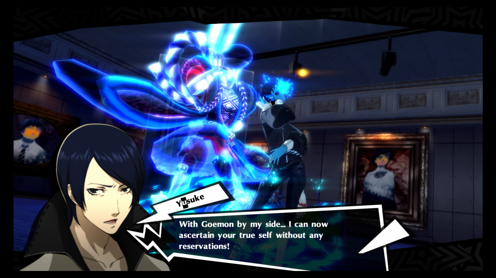 : This meant I had to buy back Angel and one other Persona (I forget which) and it was a pain in the ass all around for a completely useless Persona. : So yeah, that’s what the electric chair looks like. : I also found out while grinding that Yusuke apparently has unique lines of dialog for some of the portraits in the portrait gallery, if you bring him back that far. : After copious amounts of grind, I get everyone to level 21 (Yusuke to 18) and grind out a total of around 450,000 yen (after selling the vendor trash, which I do in the next update). This should be plenty for what we need. : We spend the night crafting. I was kind of worried that I’d have to buy more lockpick materials, but… yeah, we’ll have enough lockpicks to probably bring us past the next dungeon. : Next time, we’ll send the calling card and take on Madarame - without any time skip in between, because that’s how the routing is.Demon lord from the Ars Goetia, a fallen angel known as the Great Duke of Hades. Usually depicted as a knight riding a skeletal horse. Knows everything about warfare, but also love for some reason. This is technically not his first appearance in a Persona game - he was an enemy in Persona 1.