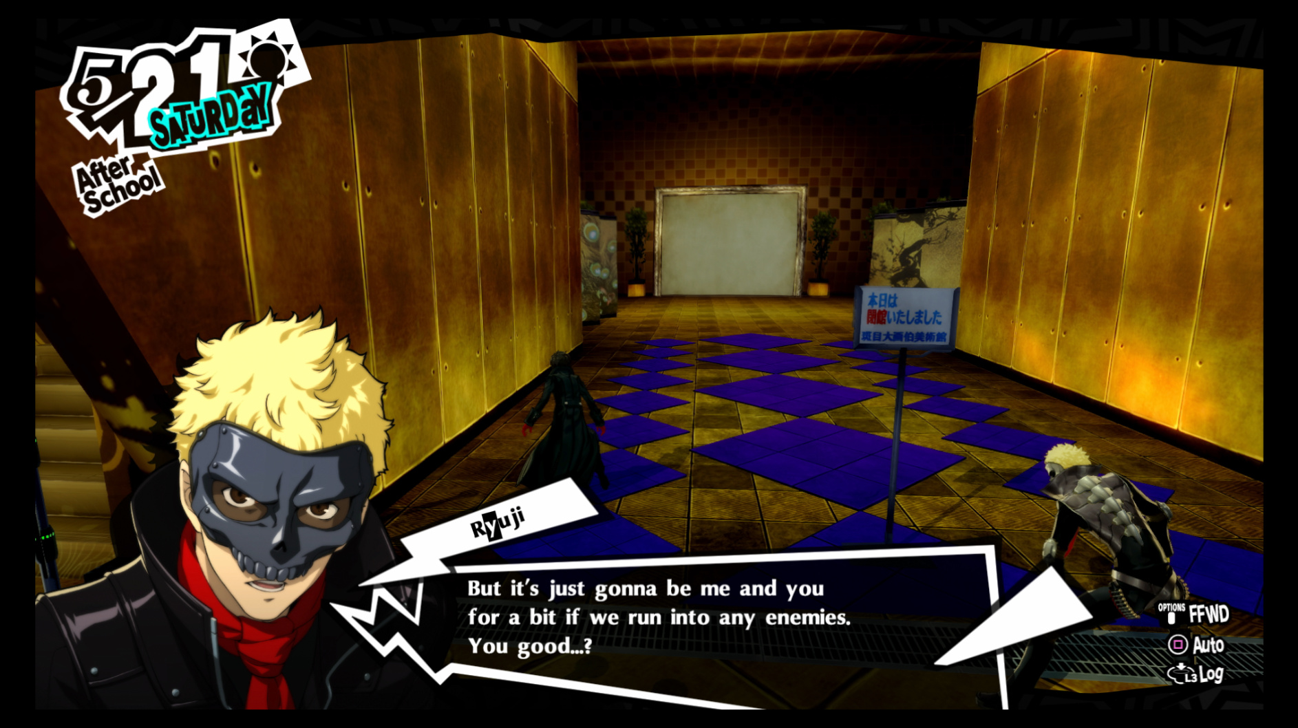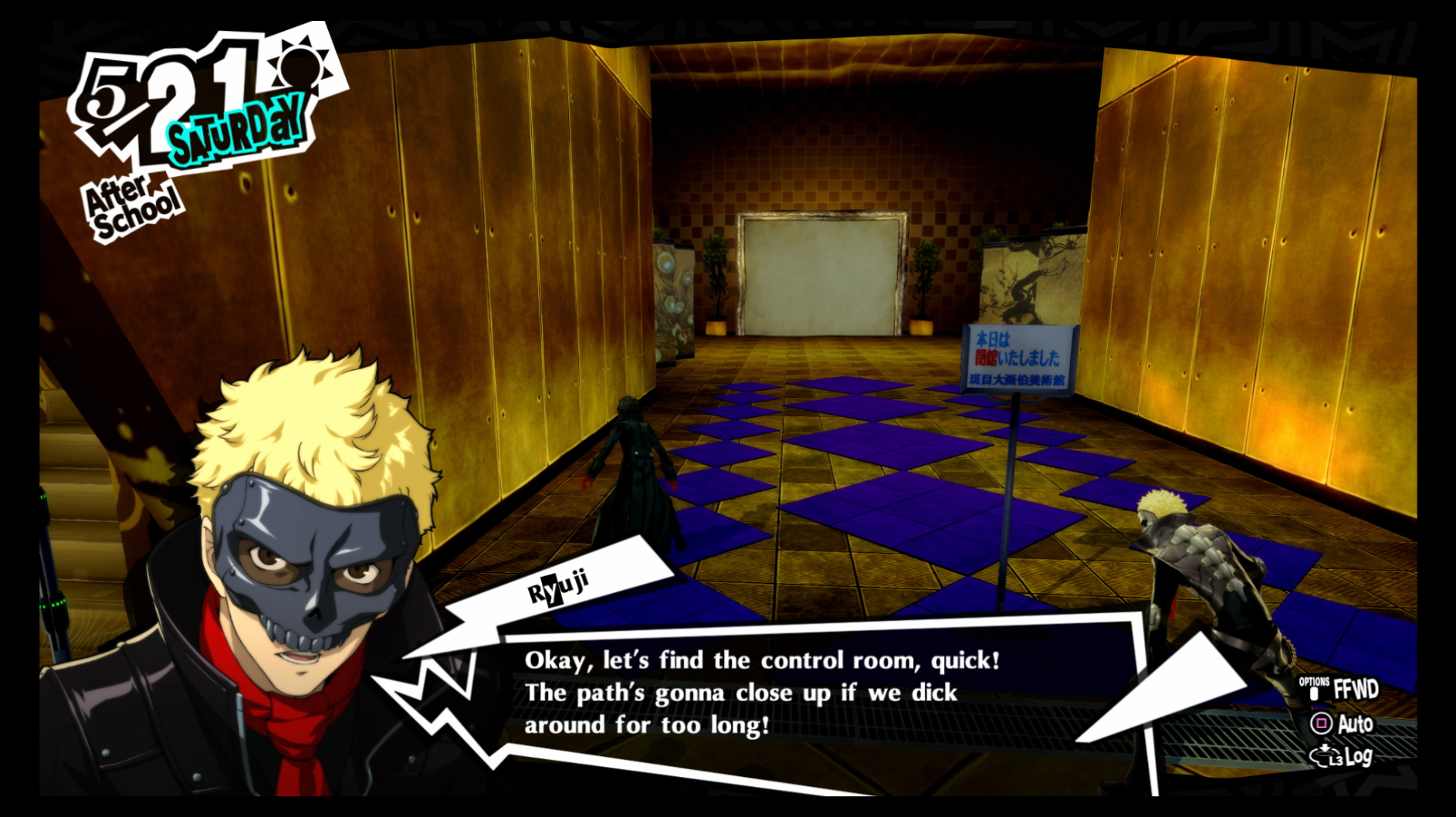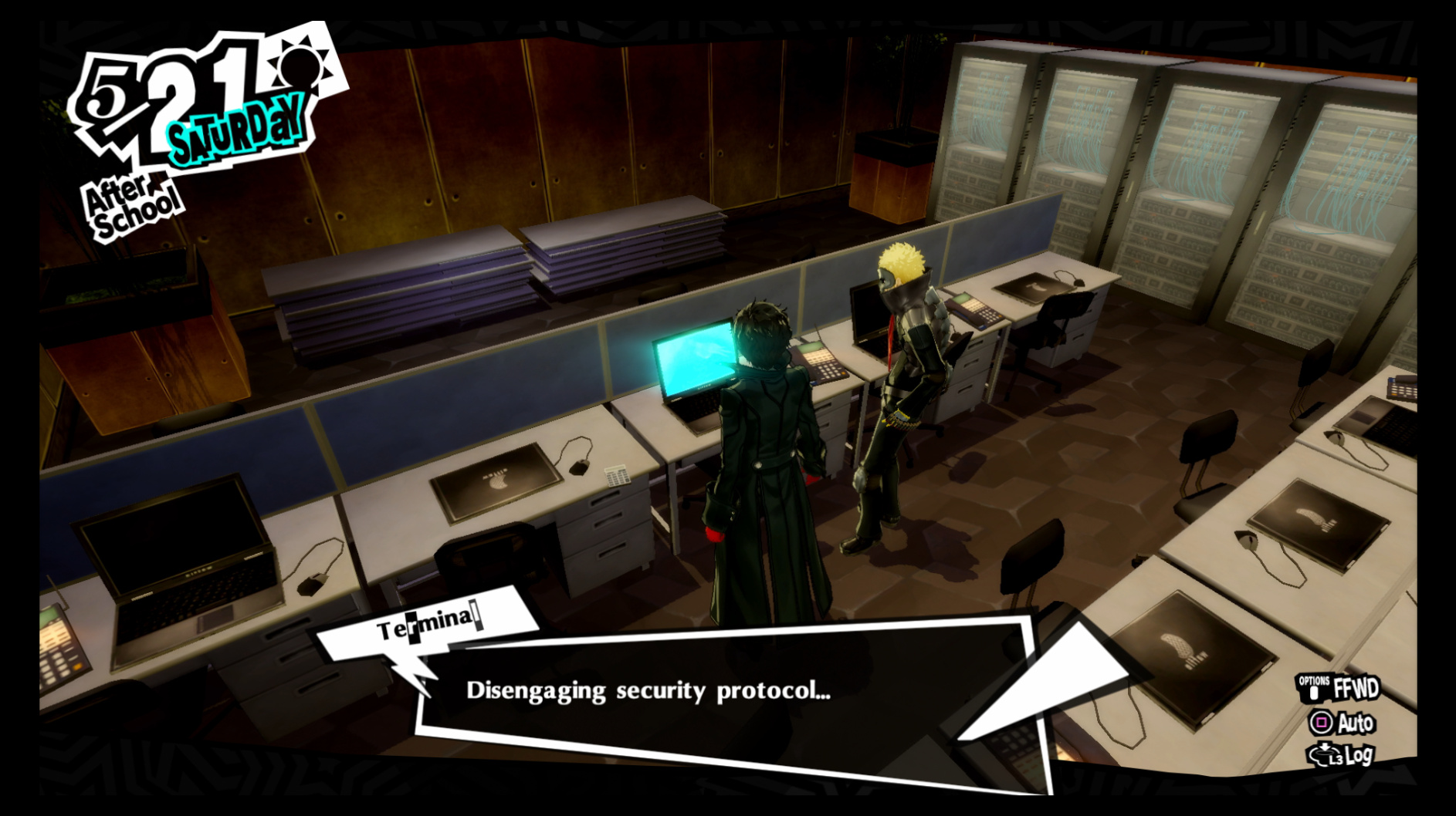 : It’s 5/20. Dungeon time. : I’ll just skip the rest of this. It’s the game hinting at you to do the beef bowl job to start Yoshida’s confidant, but we’re already well ahead of that. : This gets us all of 3 charm points, which is honestly kinda underwhelming. : This is just another tutorial. The Megami Tensei series wasn’t enough like Pokemon (despite the fact that Megaten came first) so they gave every Persona a passive ability. : And now we can actually start the dungeon. : Interestingly, most of the stealable items regenerate. There’s a few near the entrance that don’t, but most of them do. : Meet an annoyance - lasers. They don’t really do anything but make you press X to go through them.