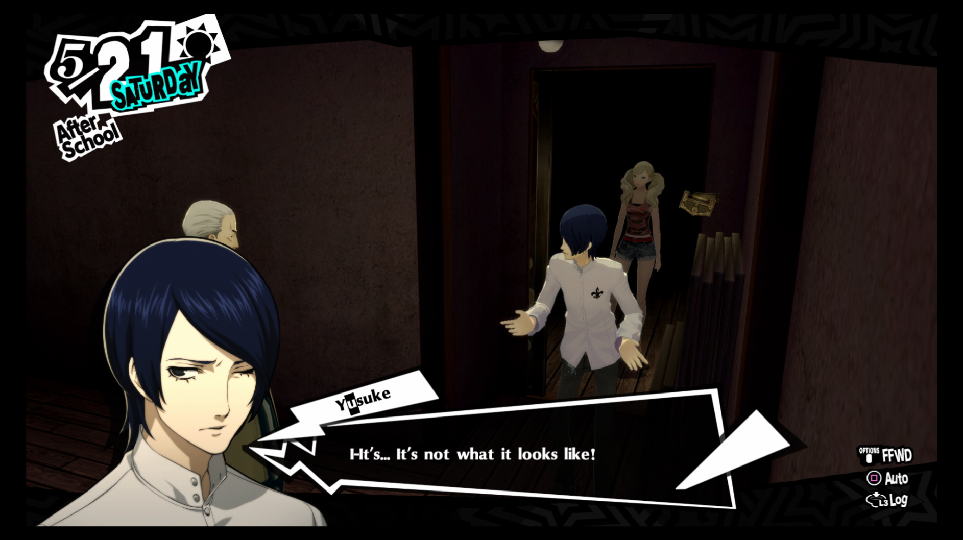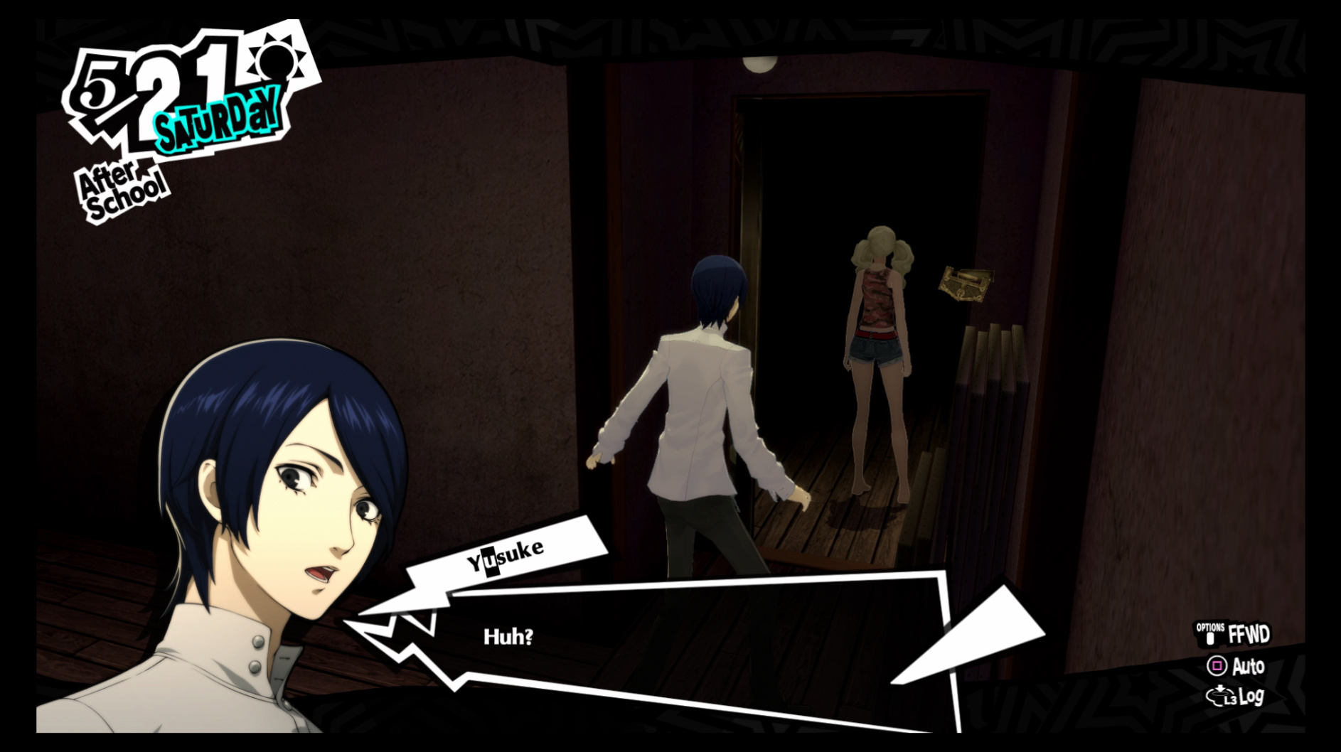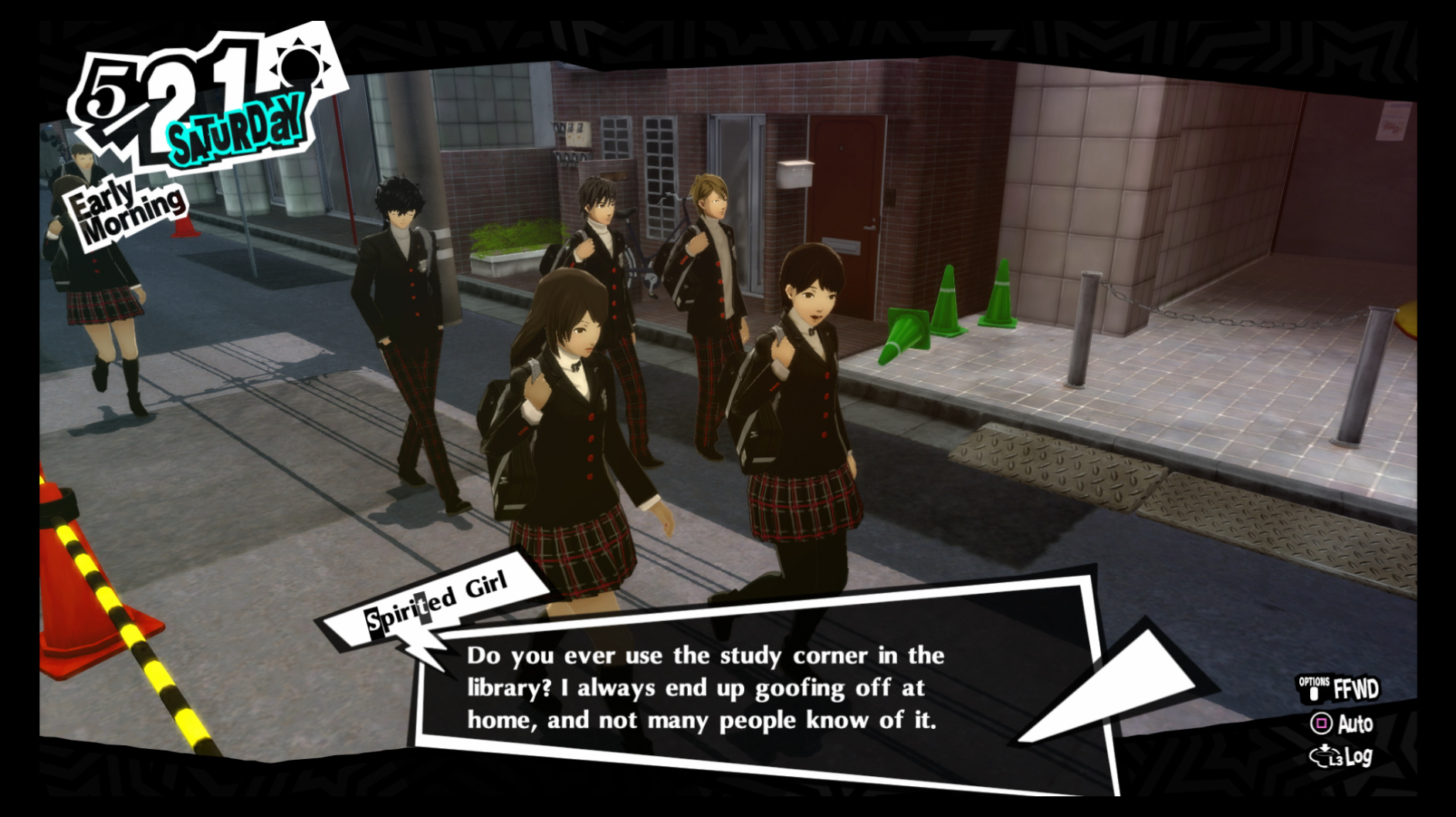 : It’s 5/20. Dungeon time. : I’ll just skip the rest of this. It’s the game hinting at you to do the beef bowl job to start Yoshida’s confidant, but we’re already well ahead of that. : This gets us all of 3 charm points, which is honestly kinda underwhelming. : This is just another tutorial. The Megami Tensei series wasn’t enough like Pokemon (despite the fact that Megaten came first) so they gave every Persona a passive ability. : And now we can actually start the dungeon. : Interestingly, most of the stealable items regenerate. There’s a few near the entrance that don’t, but most of them do. : Meet an annoyance - lasers. They don’t really do anything but make you press X to go through them.