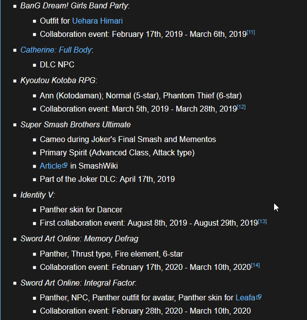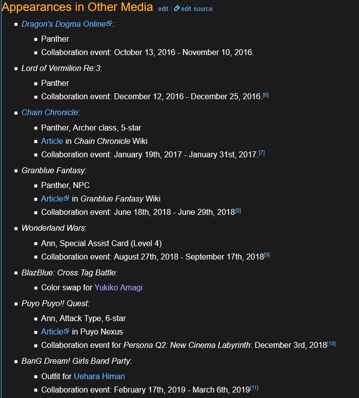 : That one’s just the ones Ann’s been in, but there’s a list about as big for pretty much all of the main party members. : Atlus and Sega have no doubt raked in loads of cash on this shit. : What gets me though is that I feel like each character was purposely designed and made as horny as possible to attract certain types of fans, rather than because they fit with the story. : Anyway, that’s my bit on why I don’t like any of the characters - because they feel like they were each made to sell as much merch as possible.
