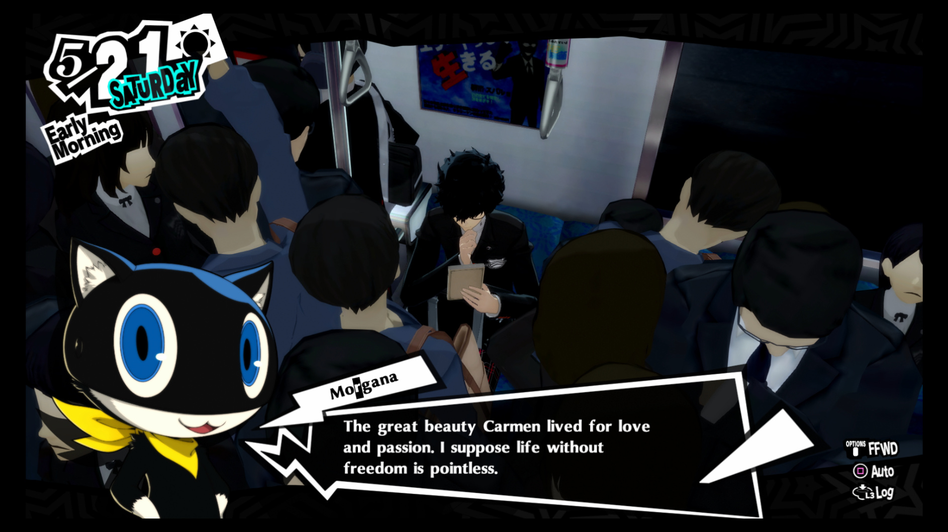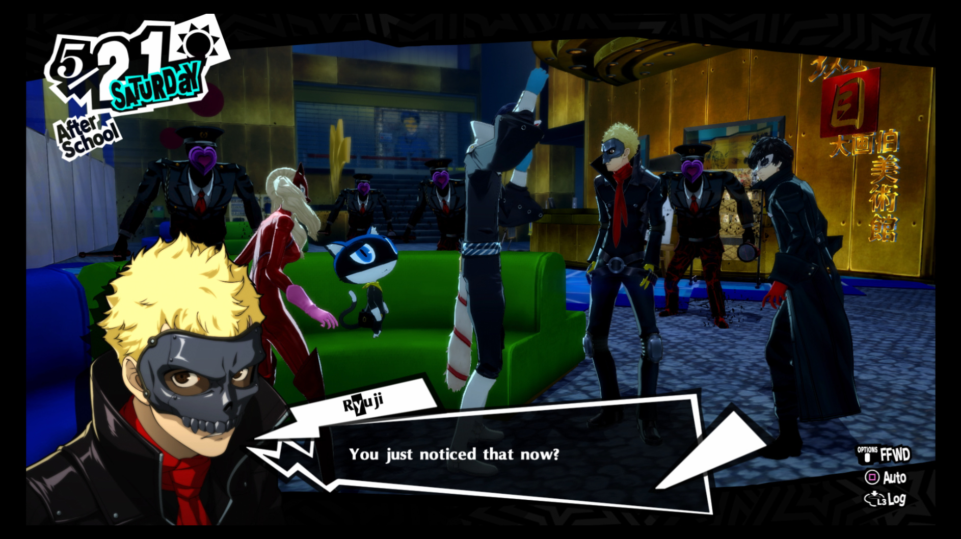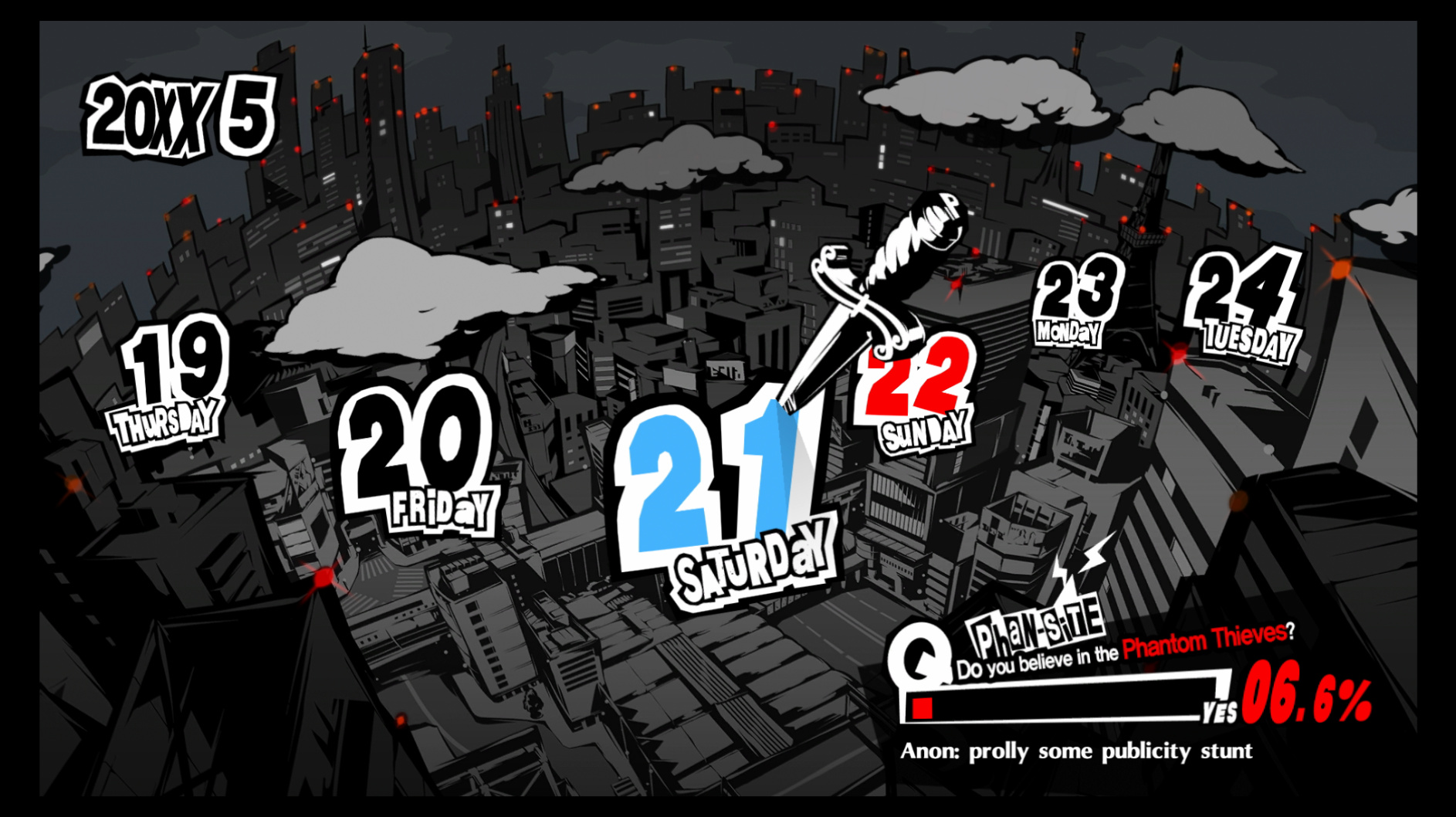 This is probably a minority opinion, but I’ve started to feel like maybe P5’s visuals are so incredibly, painfully COOL that having characters and a plot at all - not just a bad plot, but a large plot in general - are just kind of getting in the way.