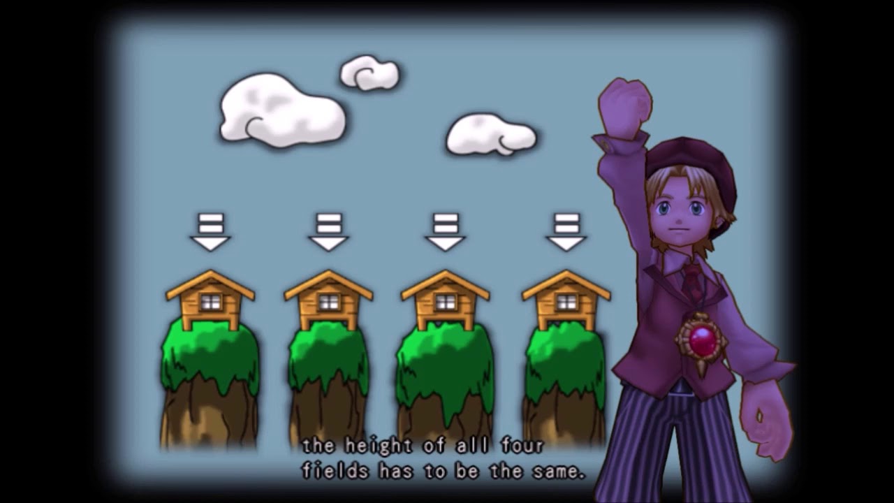 So, there are something like twelve Monster Badges (I think two of the slots are actually special badges that do something for all of the other transformations, but nobody cares), and each one corresponds to a different type of monster. It’s not always clear which type each monster is, but every non-boss monster is one type, and if you transform into a monster, no monsters of that type will attack you and you can talk to all monsters of that type. Other types of monsters will still attack you, though, and that’s where the problems start. While there are lots of monsters of each type, you only get to transform into one, and it’s usually the first one of that type that appears in the game. Remember those sewer rats and hand-walking ghost balloons? Remember how pitiful their stats are? Well, guess what monsters you can turn into! You’ll basically never actually fight anything using most of those forms, and if you want to level them up, you’ll do the trick of killing monsters and then transforming to collect the EXP. But you won’t do that either.
