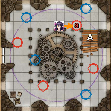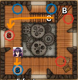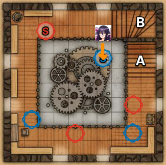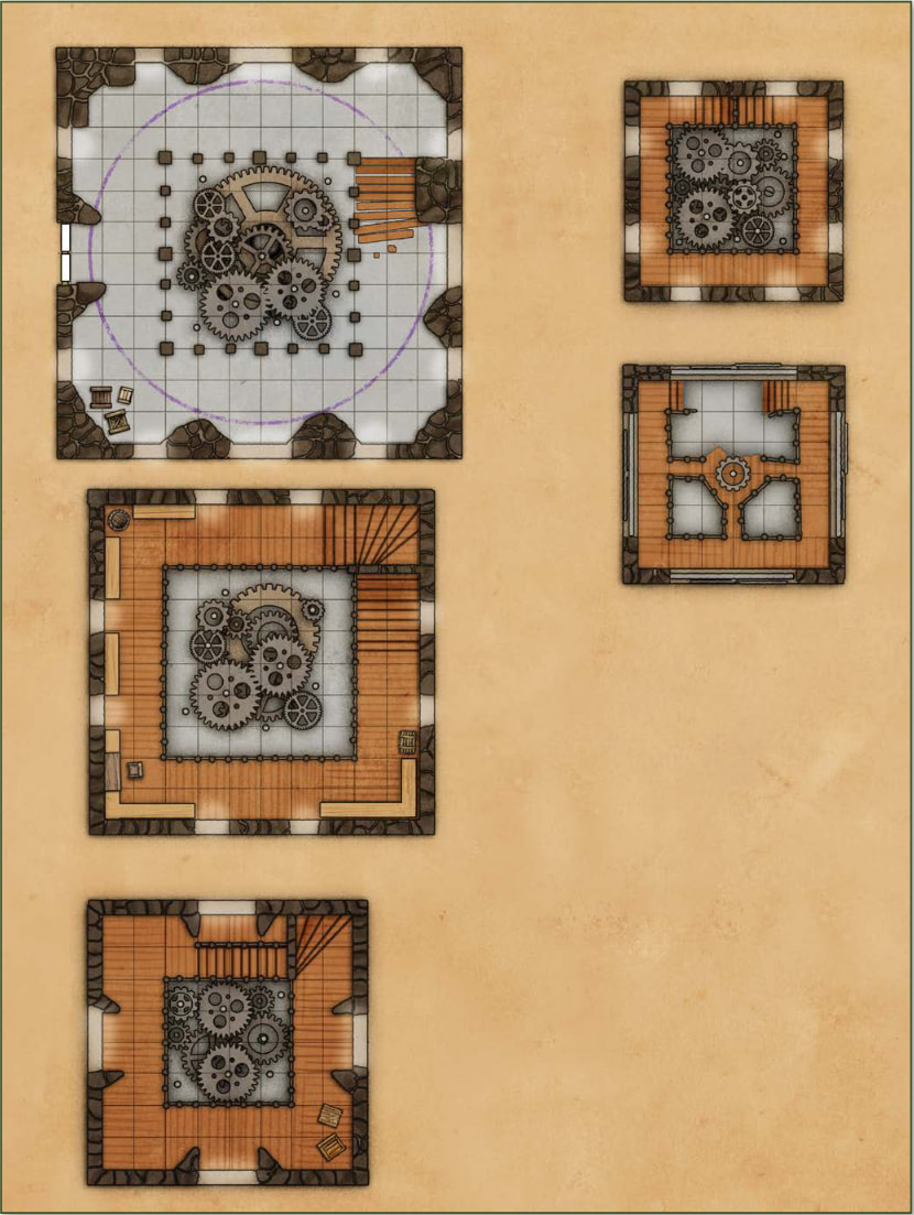 : I’ll also explain that if you end up on the gears (say, by taking the blue portal on the 2nd floor) you need to make a DC 18 acrobatics check or take 3d6 fall damage, plus another d6 per floor if you fall from anywhere higher than the 2nd floor.