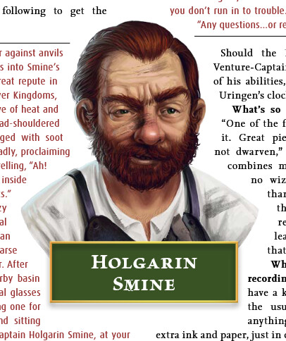 : Did he just offer us water from a barrel he’s been washing himself in? : That’s a power move. “Here, bitch, have this water I’ve been dunking my balls in.” I should kill him.The incessant beat of hammer against anvils and weaponry greets entrants into Smine’s Weaponworks, a smithy of great repute in the town of Tymon in the River Kingdoms, along with an oppressive wave of heat and the acrid smell of coal. A broad-shouldered dwarf, face and arms smudged with soot from the furnaces, smiles broadly, proclaiming in a voice harsh with years of yelling: “Ah! I was expecting you lot! Step inside my office. I have refreshments.”