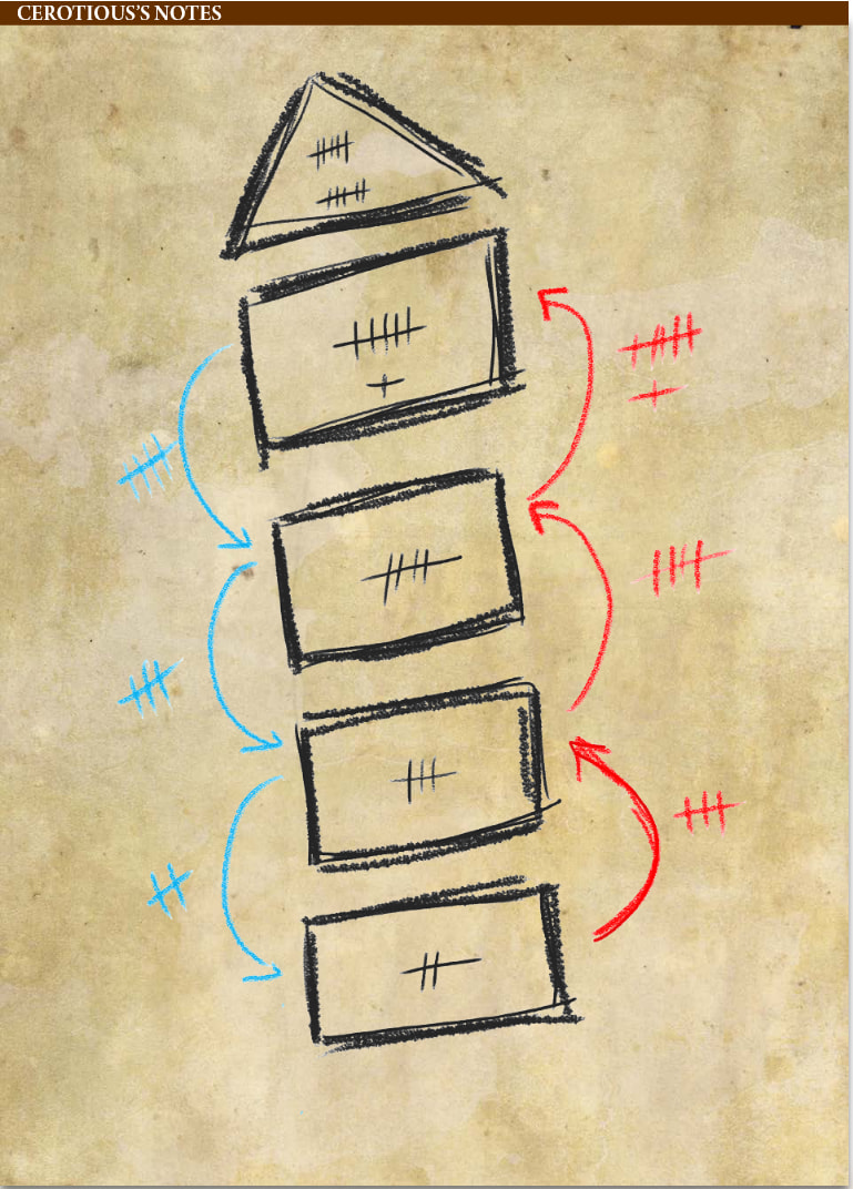 : The writer intended for the GM to use dice to explain this, which is why each floor has a dice symbol on it.