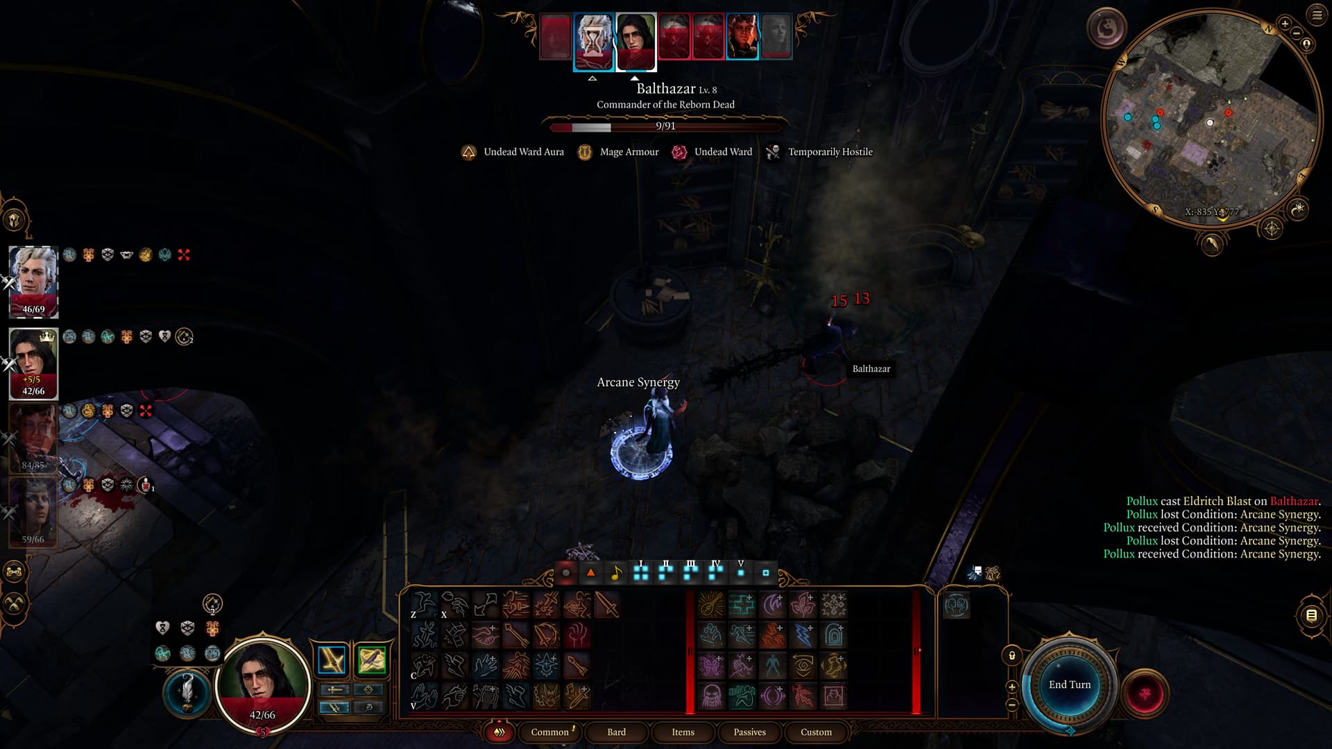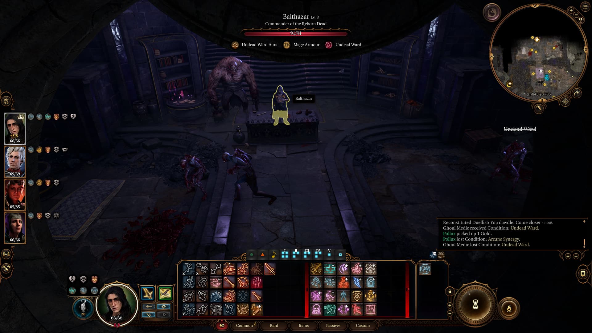 : This forces Balthazar, his three ghouls, and his flesh golem into the fight. At this point, shit gets a little glitchy.