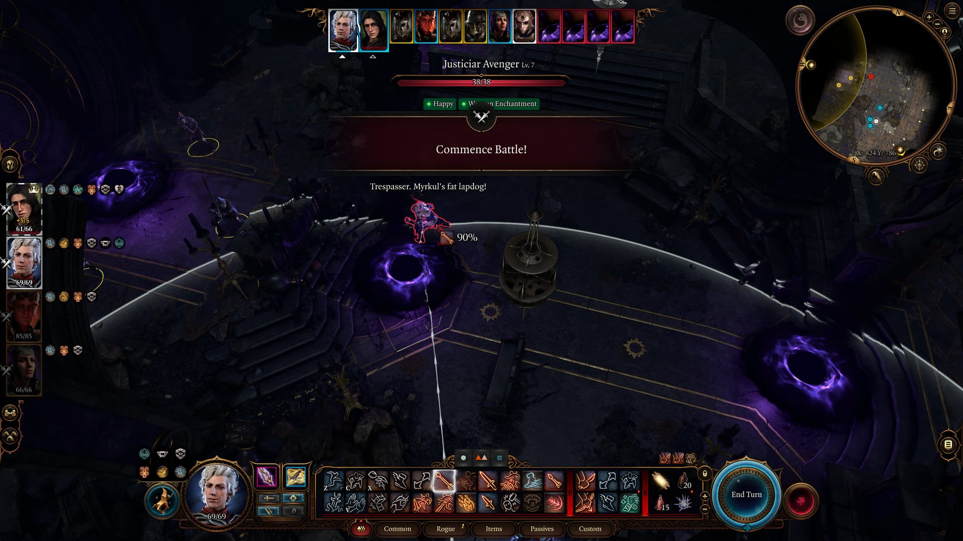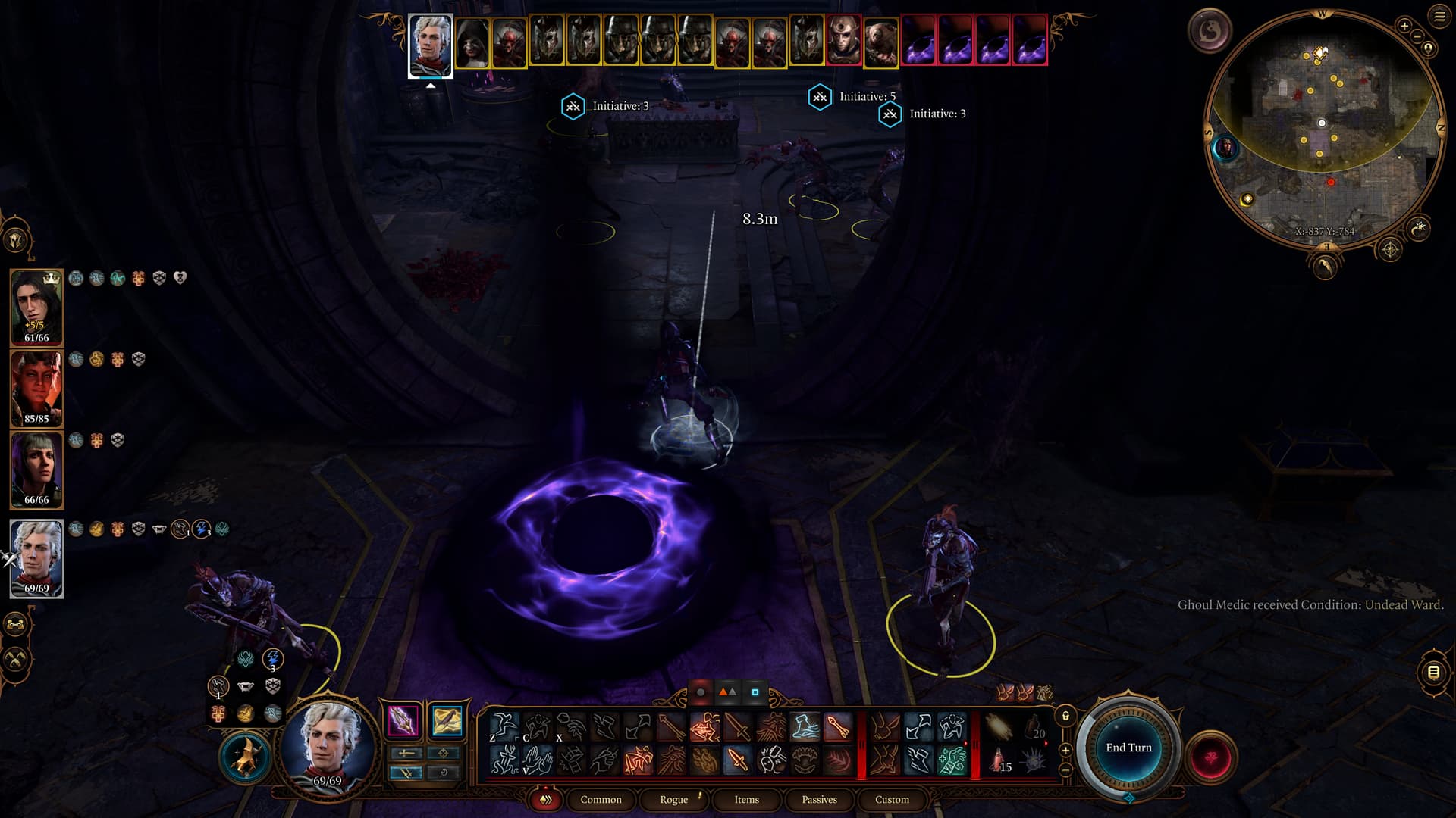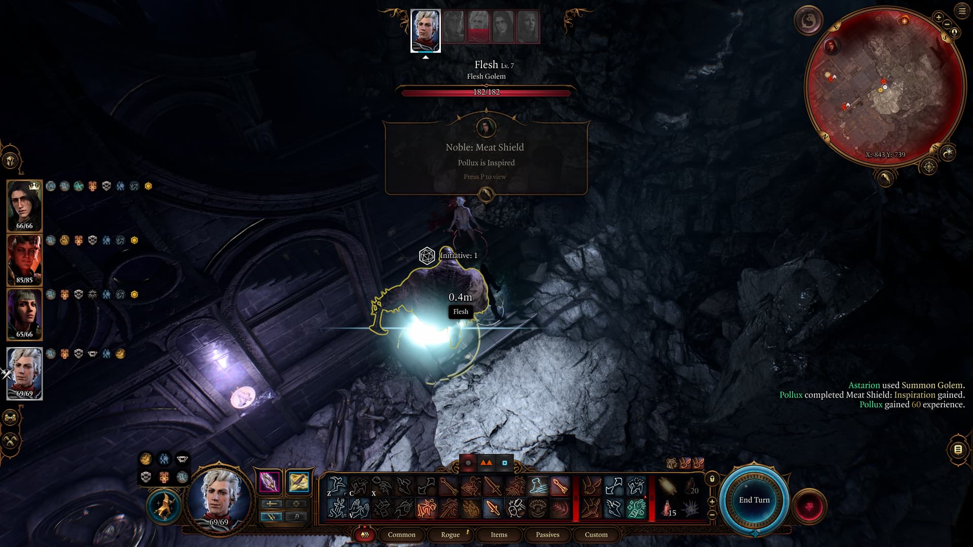 : This time, we have Astarion sneak up behind everyone, get into combat (which gives us a surprise round), and then have him drop the golem.