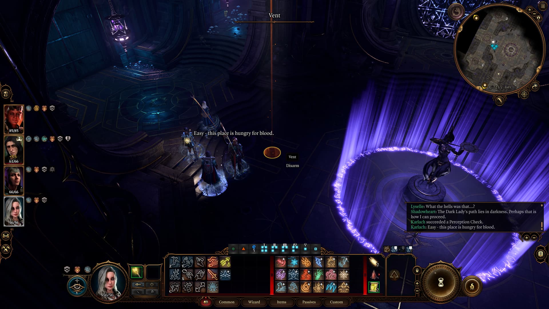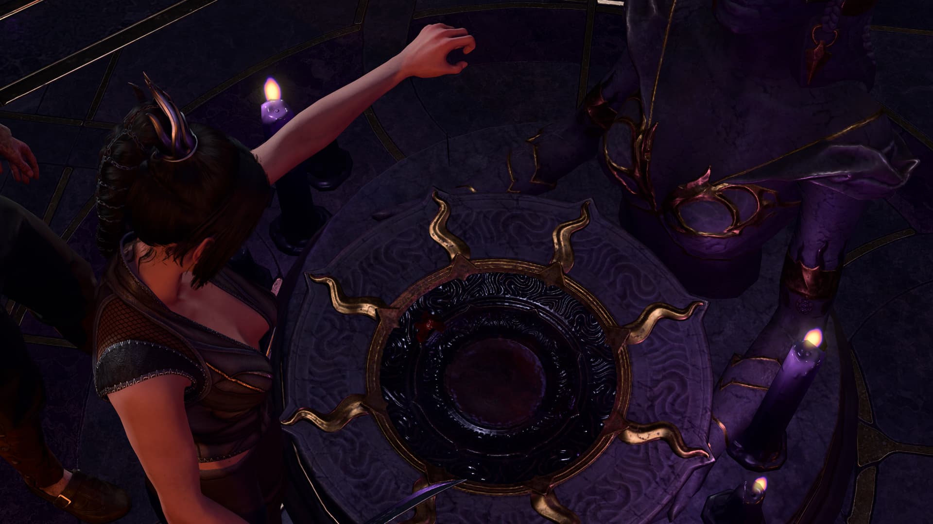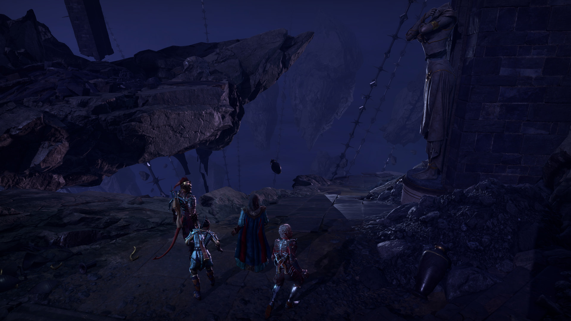 : We place one of the orbs here, and it activates an elevator. There is an unrelated scene where Shadowheart prays to Shar because she’s an edgelord.