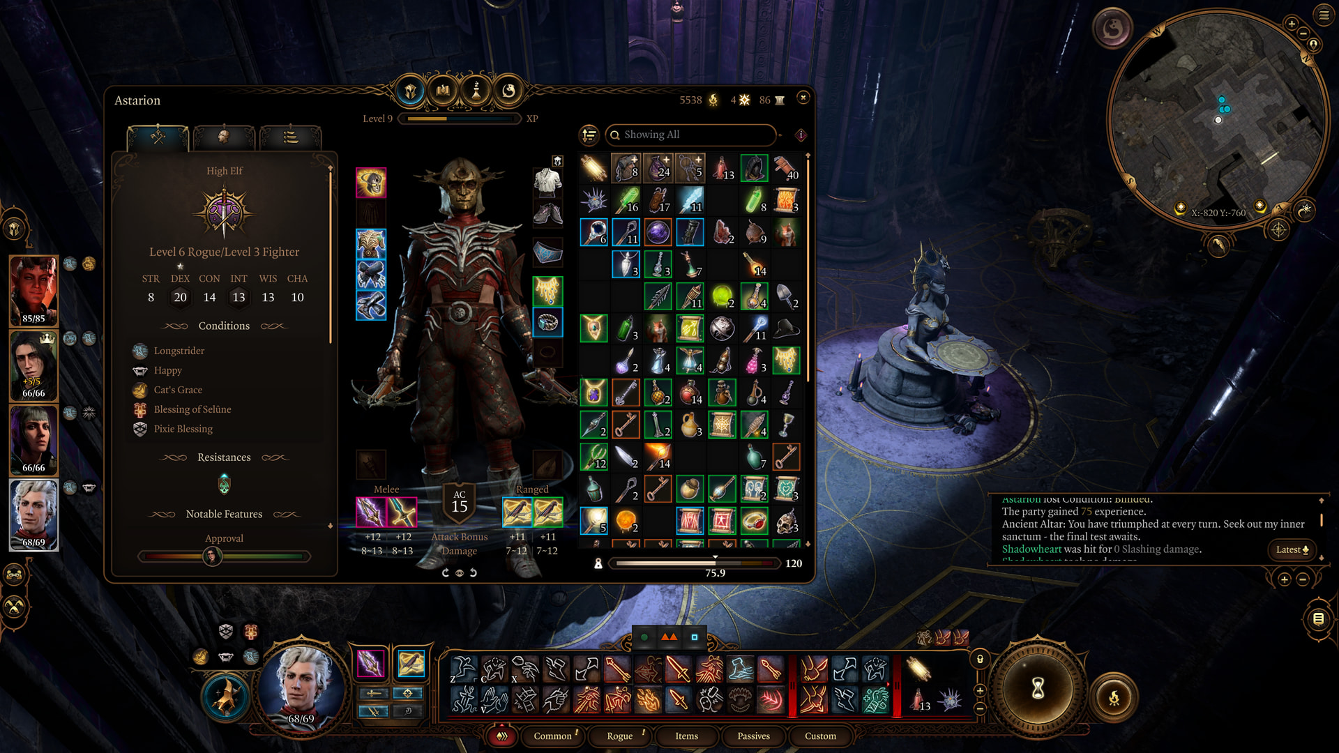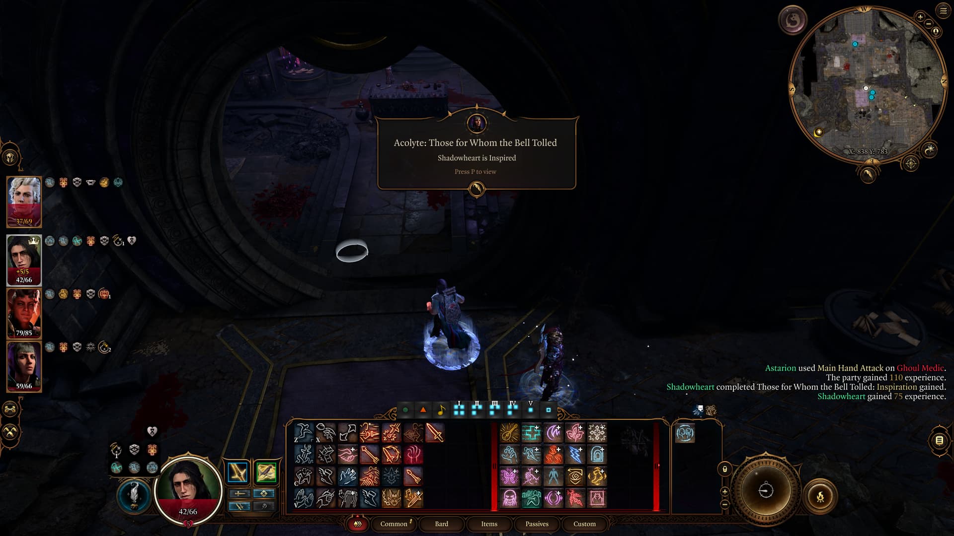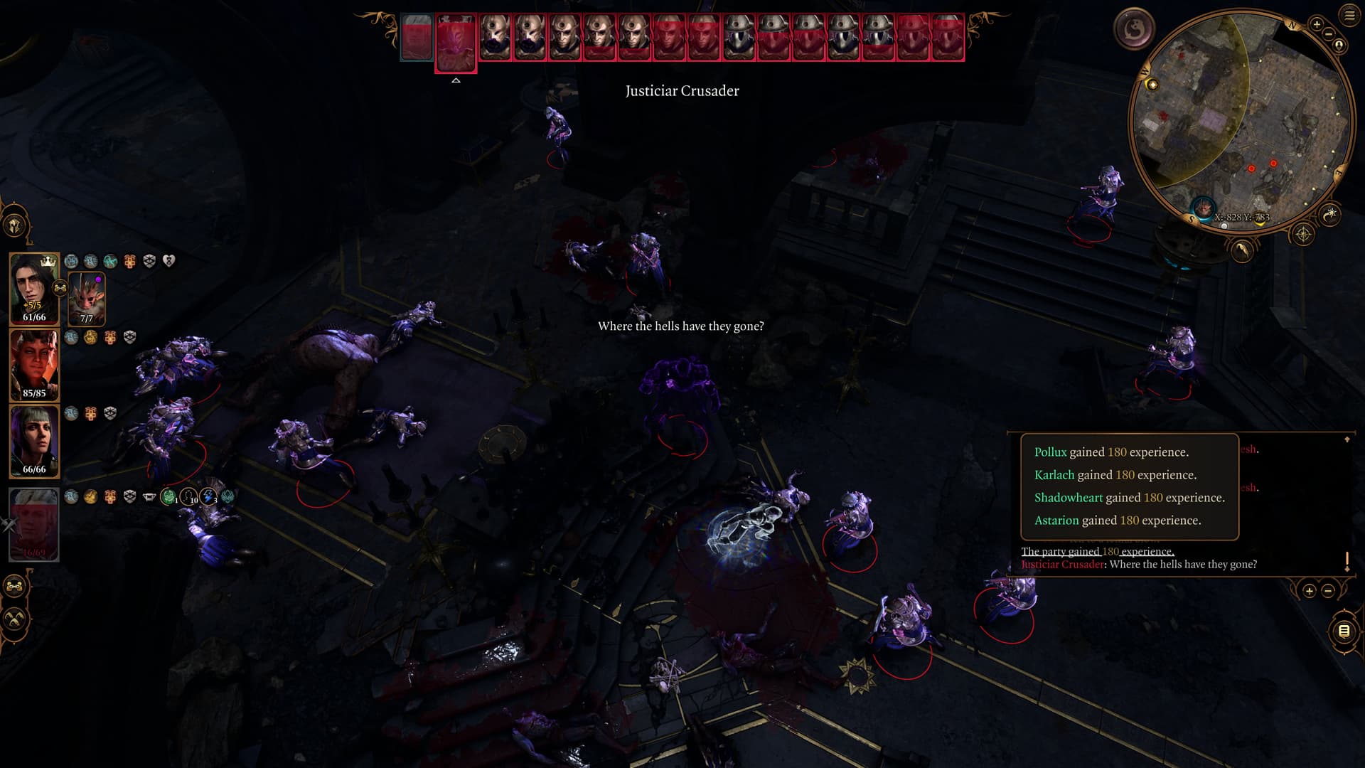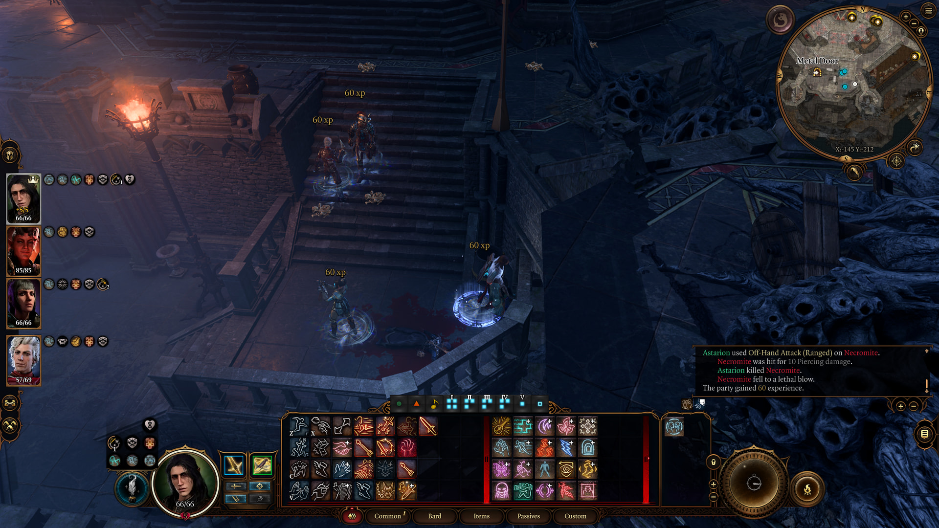 : Then near the end we can sneak Astarion away from combat before sniping Balthazar just before the ghosts get him. This gets us the full 350 experience from killing him.