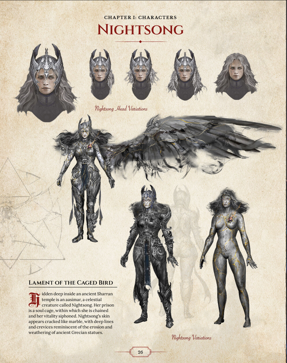 : “You, who have come to seek the praise of your wicked goddess. You, who have come to drive a dagger through my heart.”Nightsong: “I have felt you coming. The first in a century.”