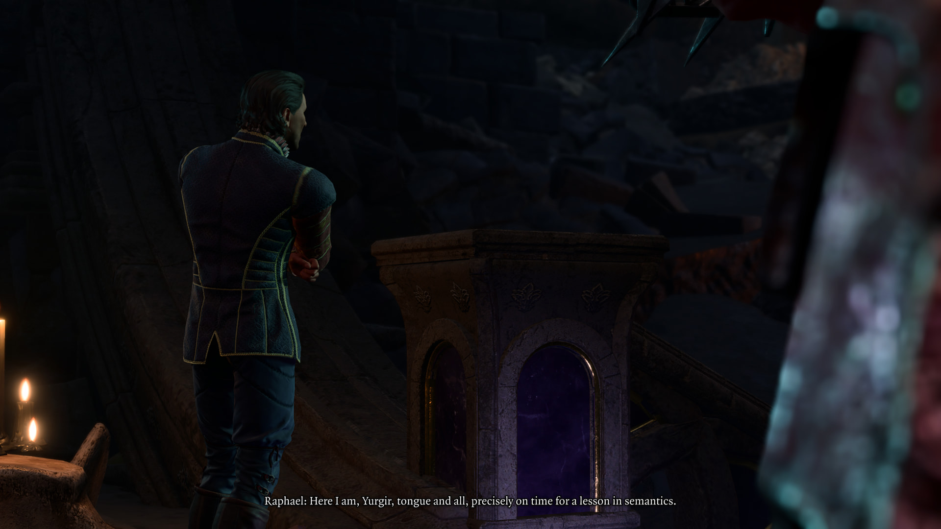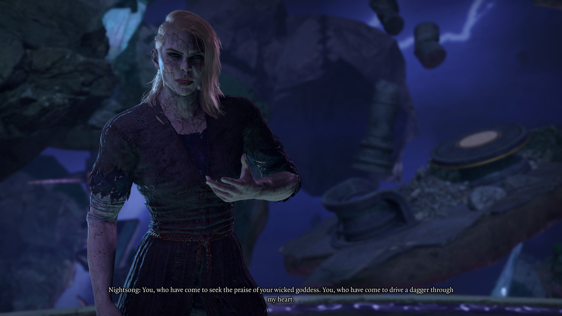 : There’s a dumb “walk and talk” segment that I’m going to skip because it’s entirely Shadowheart trying to hype up killing the Nightsong.