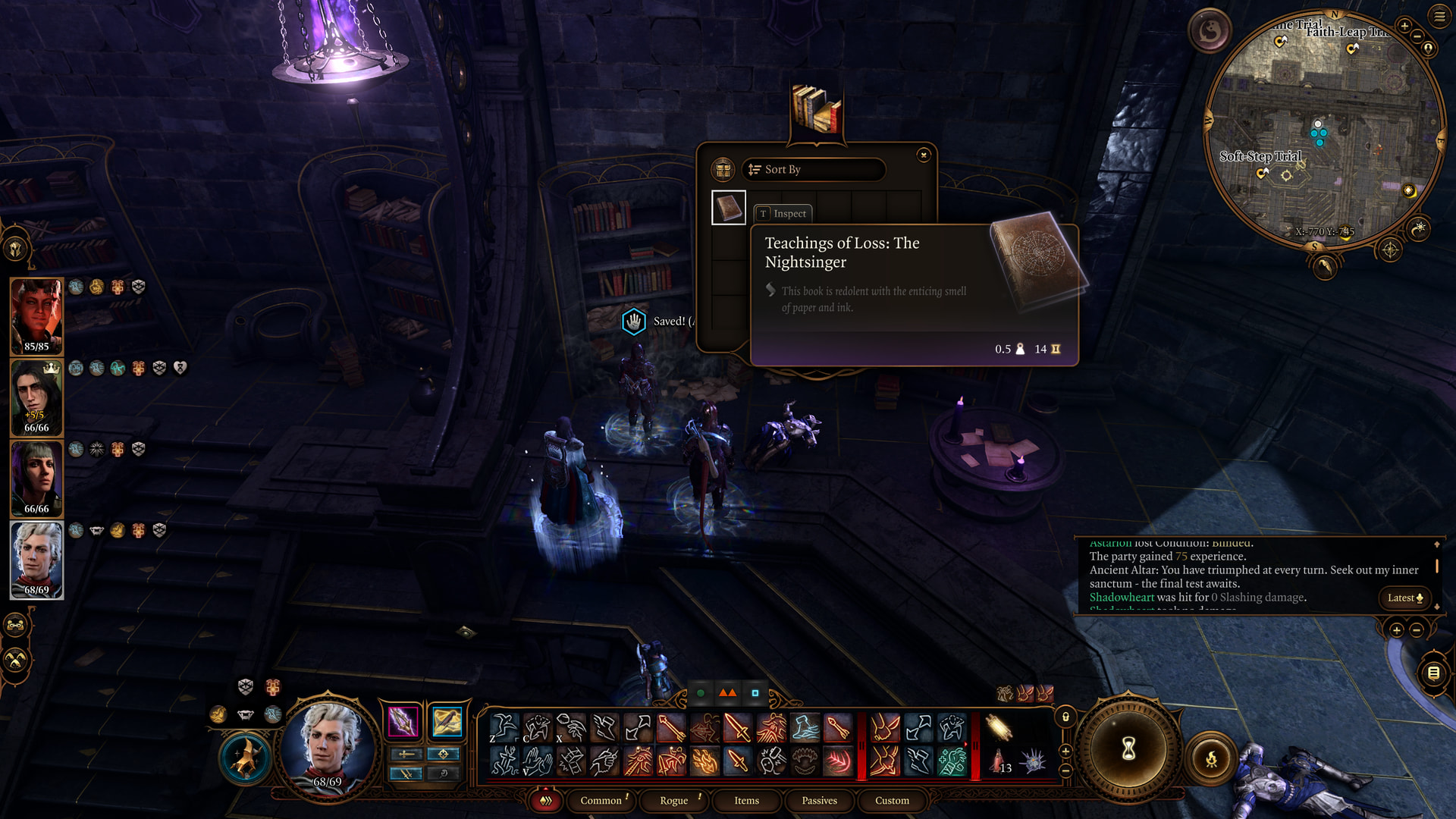 : Behind the rats is this altar. It’s kind of useless if you saved Isobel - it provides a one-time buff that halves necrotic damage taken in exchange for a DC 14 religion check.