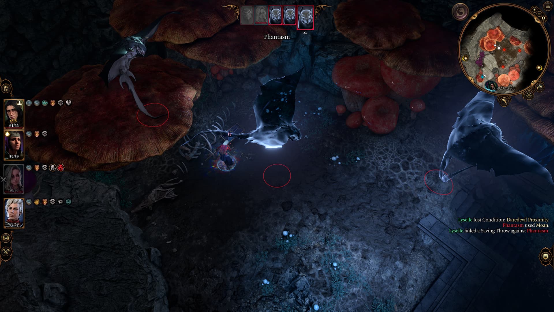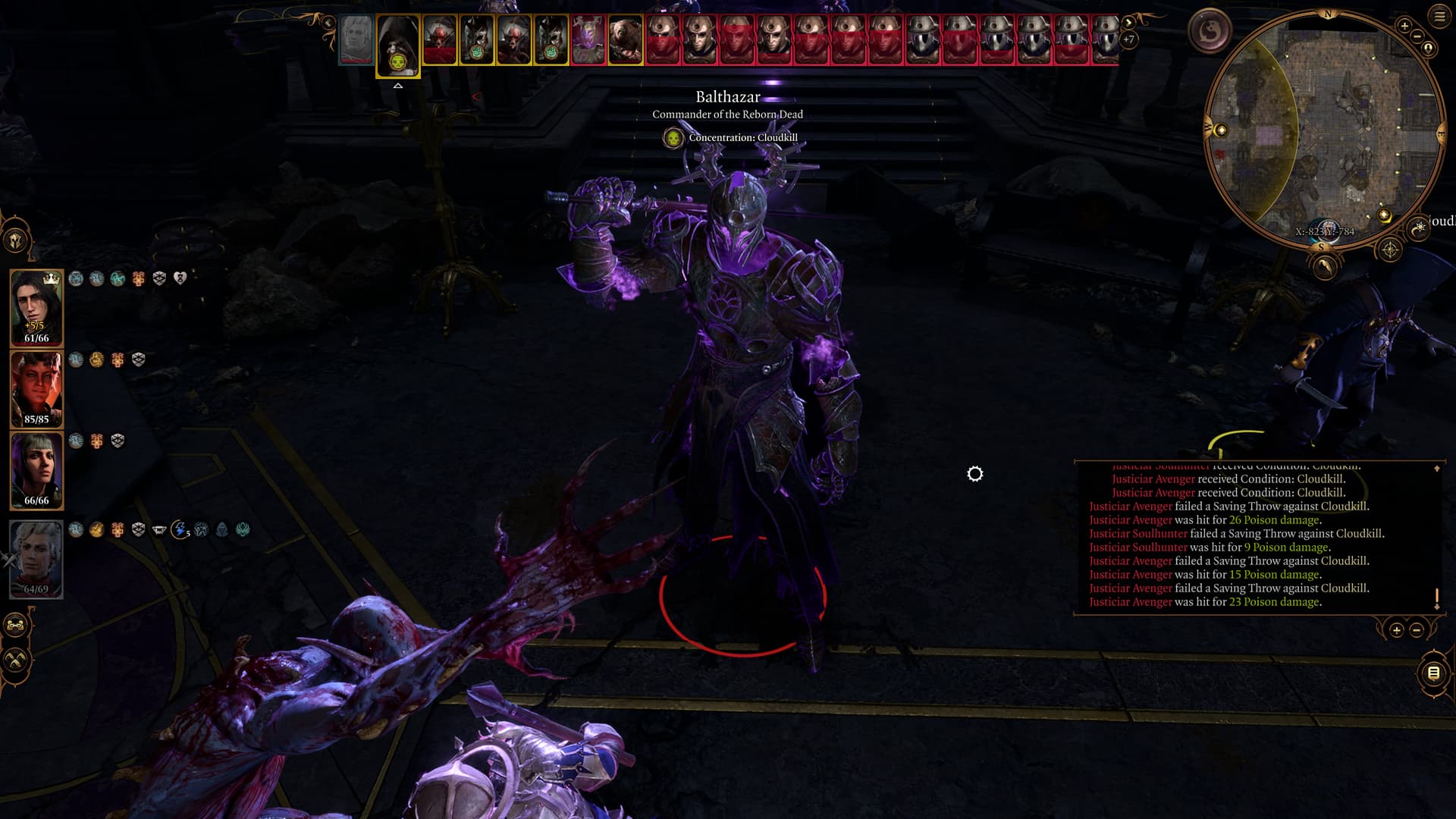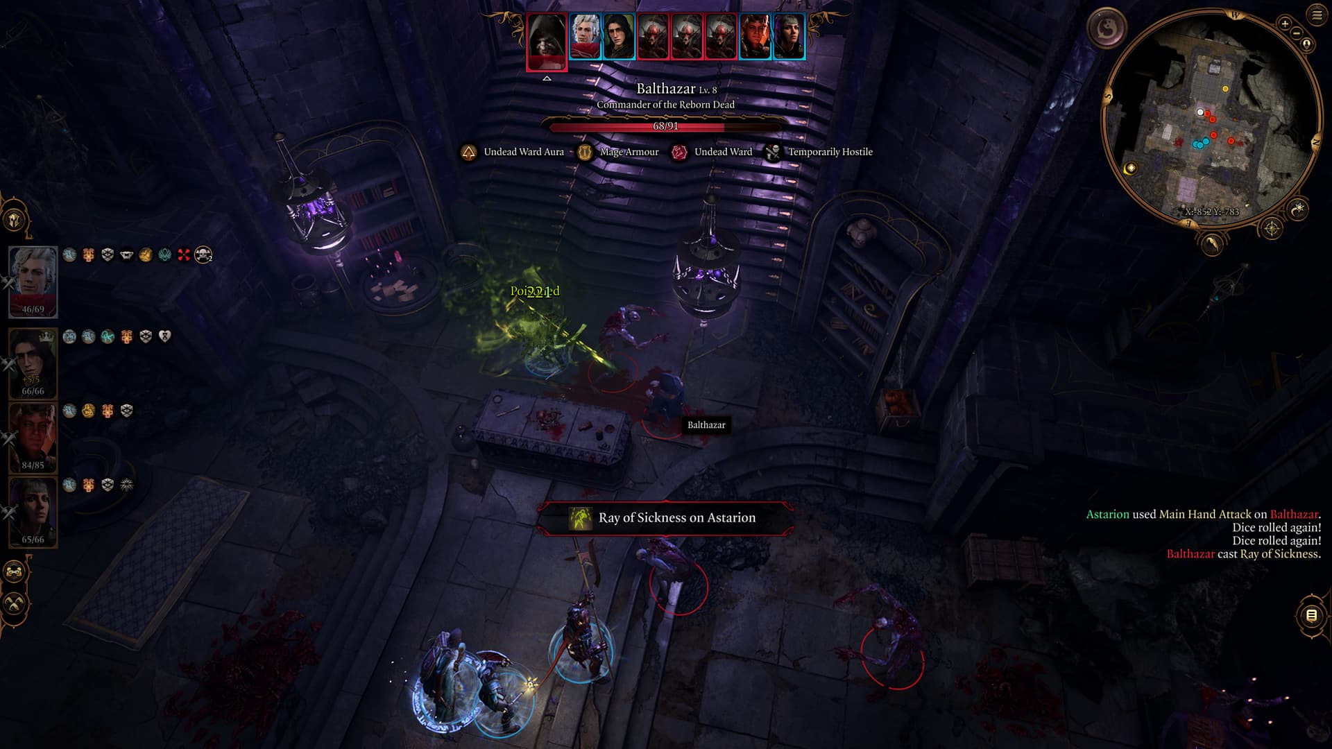 : Most of the time what happens is that the game counts you as being on Balthazar’s side unless you leave combat. Balthazar likes using Cloudkill, which is very effective on the ghosts.