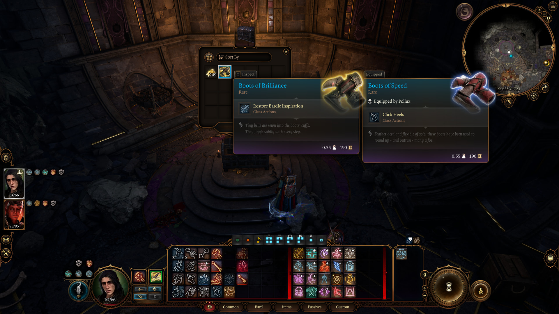 : There are some boots for Pollux here that let him restore a bardic inspiration charge, but are useless because he restores all his charges on a short rest.
