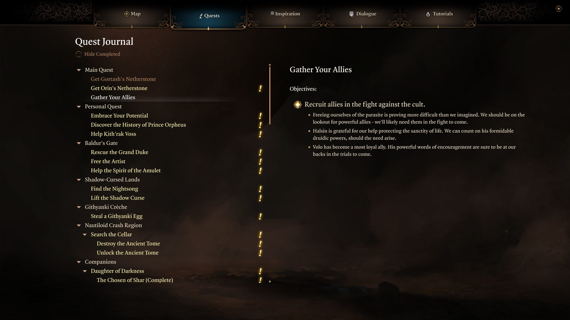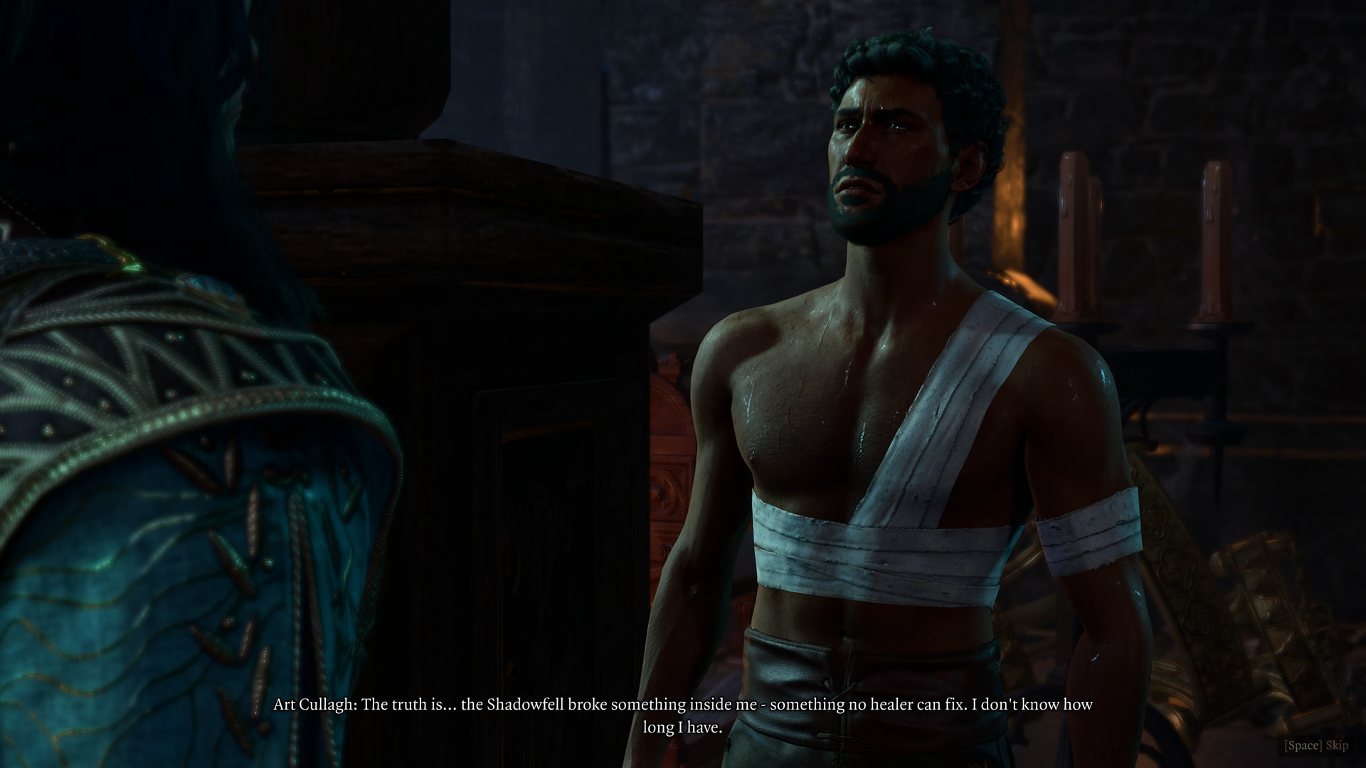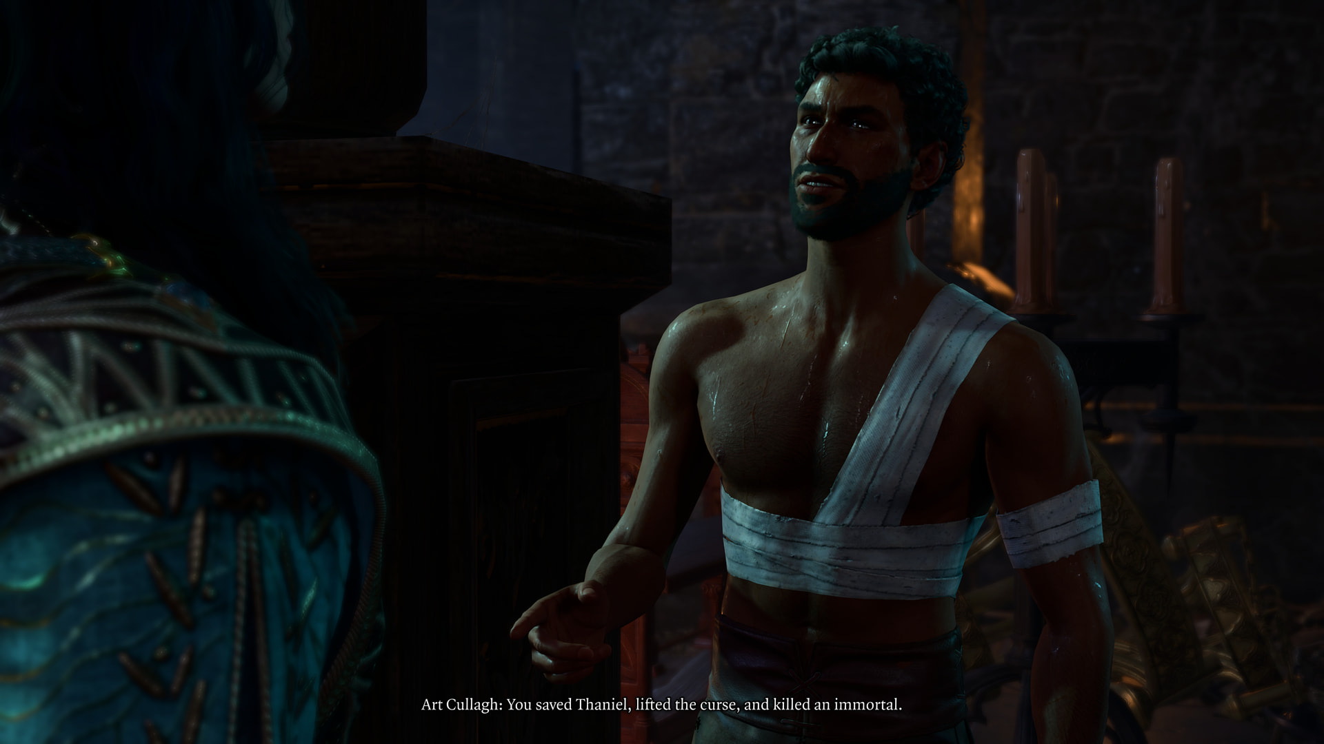 : “Halsin’s strength and loyalty will bolster you in times of need. But if we are to succeed, we will need others. Baldur’s Gate may not know it yet, but its fate is bound to ours.”