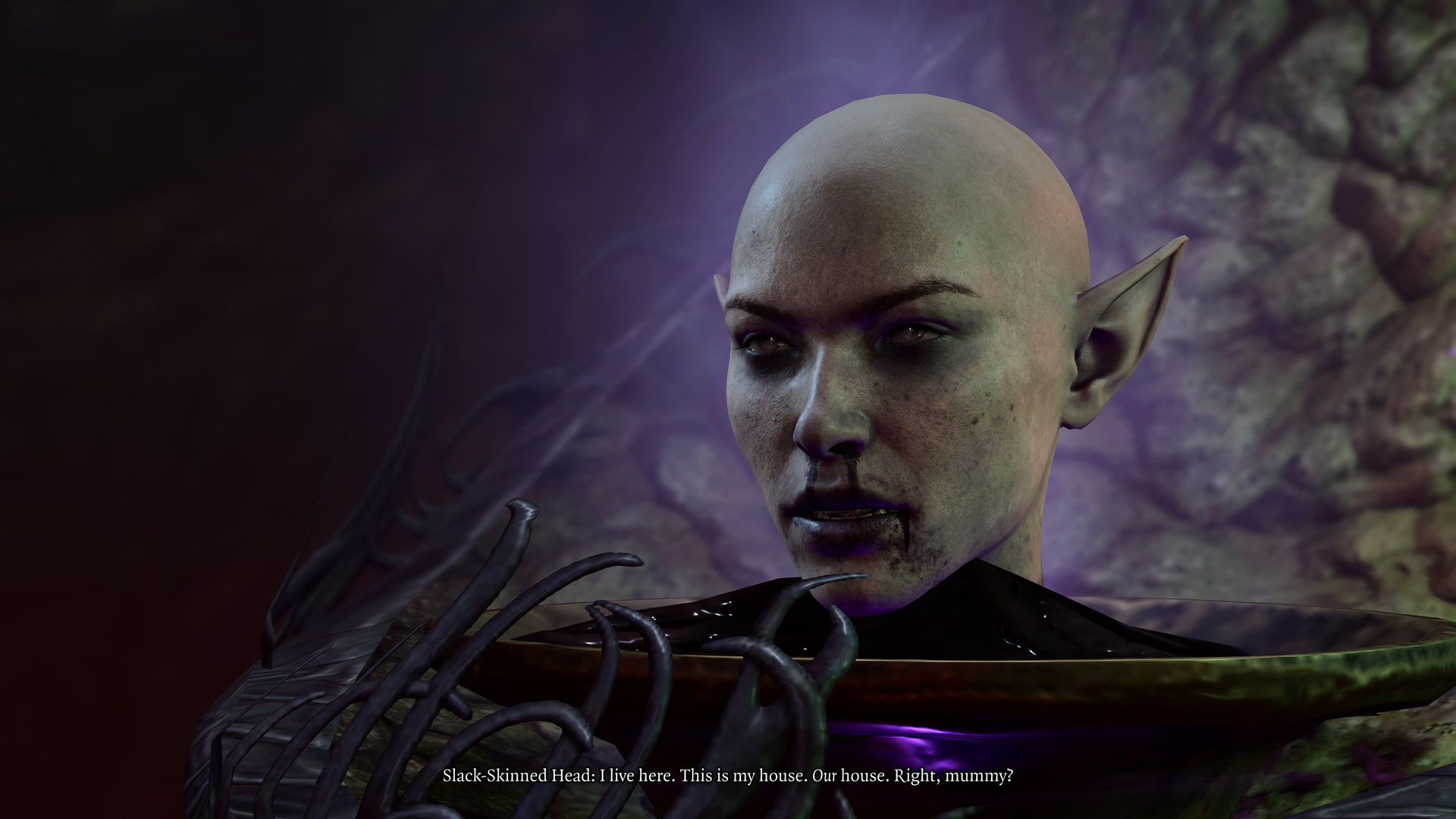 : Anyway, there’s a severed elf head here who..