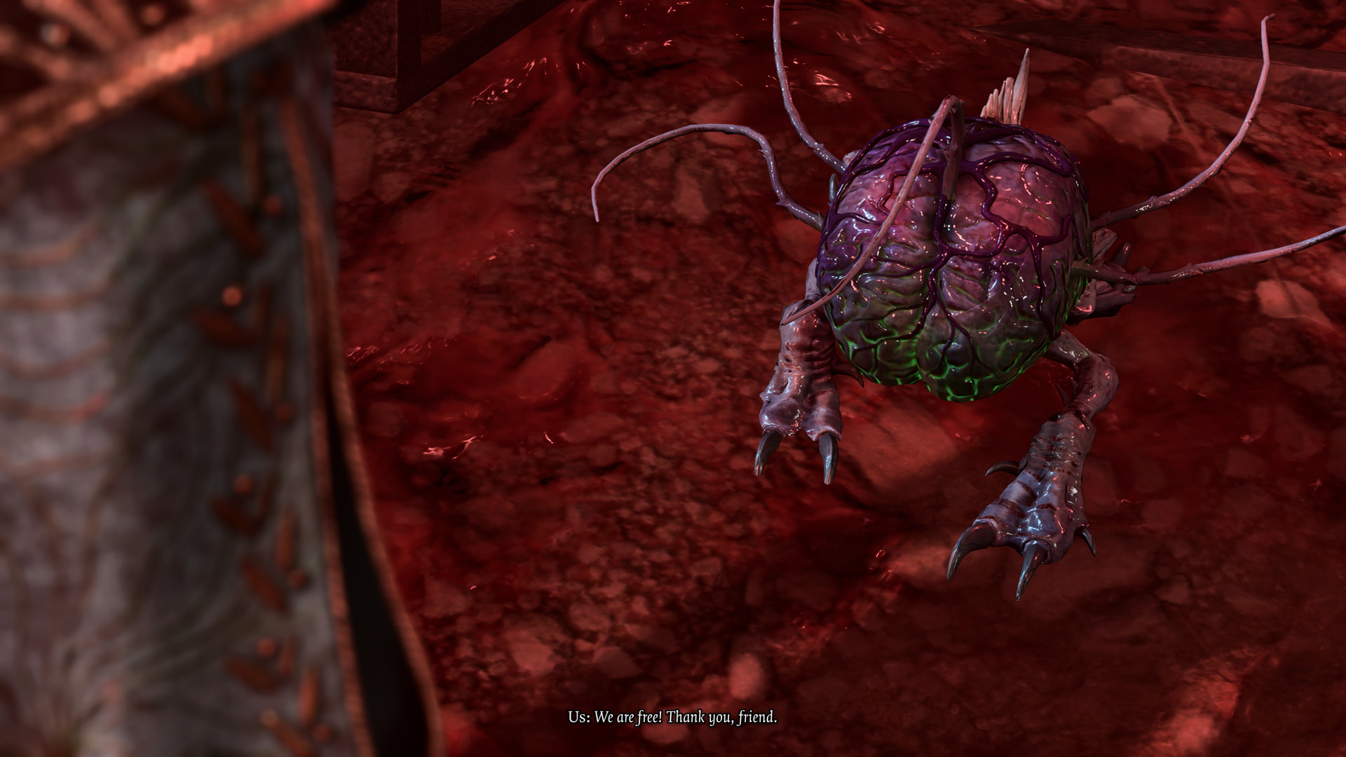 : The pods on the walls have both mind flayers and a couple of NPCs we’ve seen before in them - this is Gauntlet Yeva, who was in the burning inn back in Act 1.